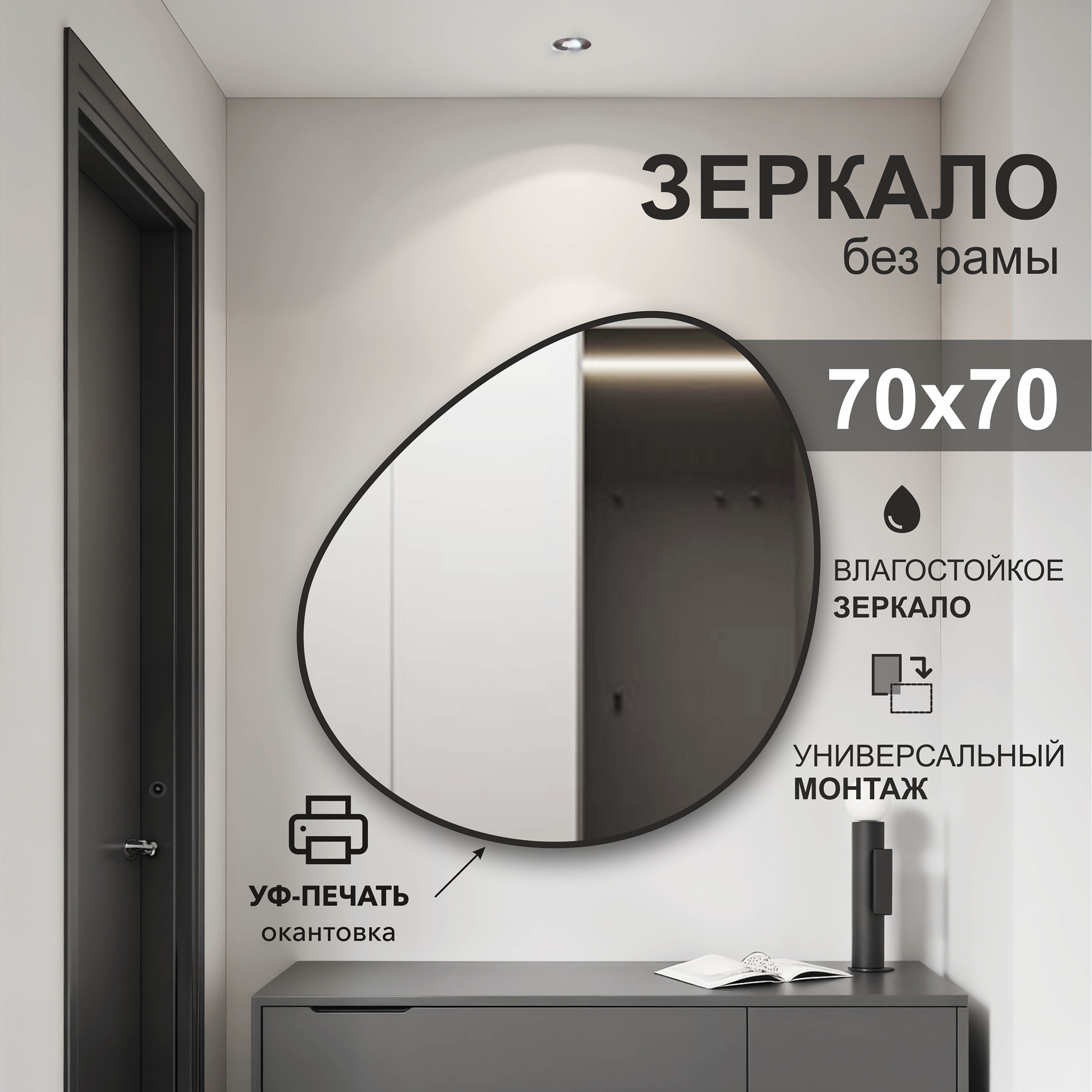 700*700 зеркало с шлиф.кромкой и УФ-печатью (черный), Д-111