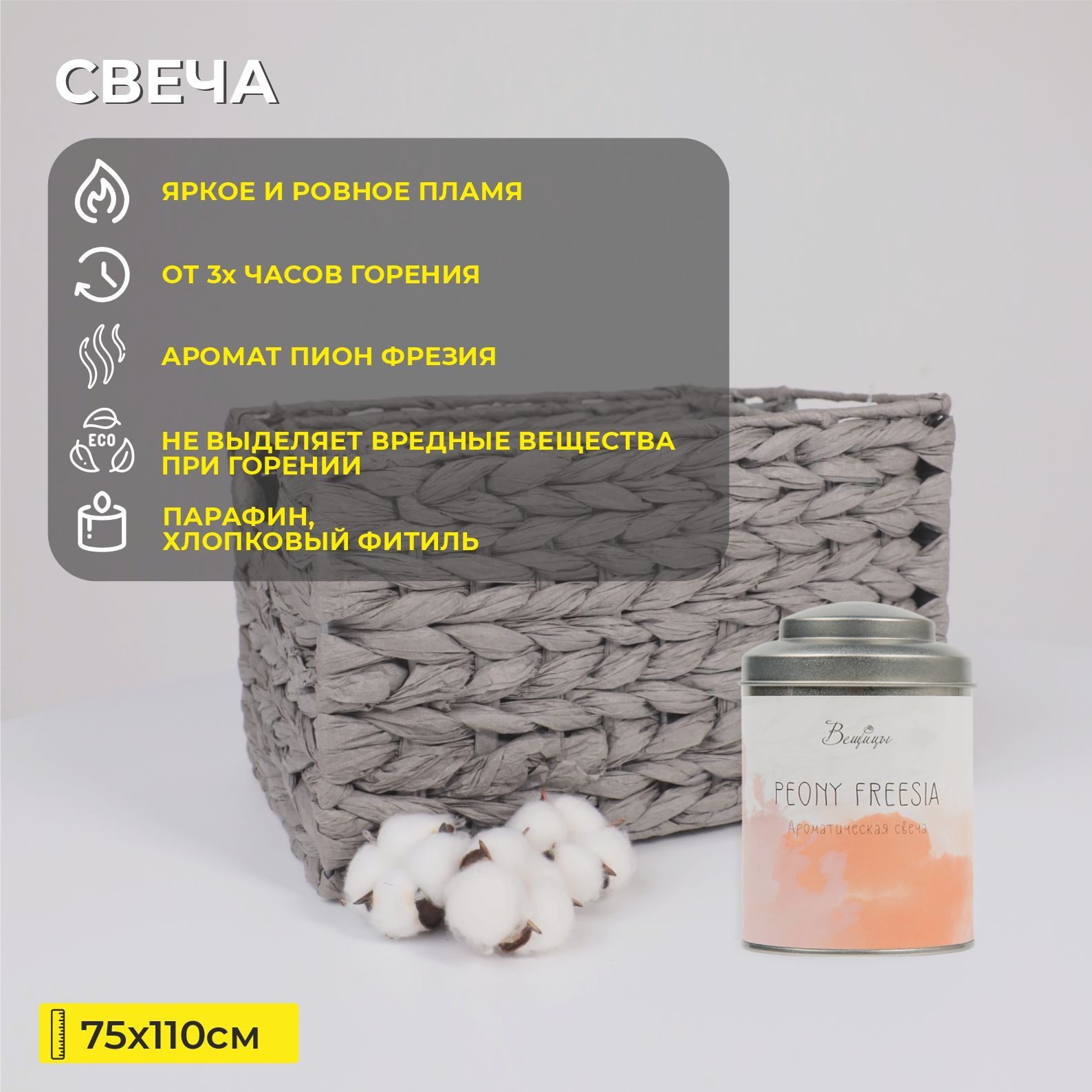 Ароматическая свеча PEONY FREESIA, Д75 Ш75 В110