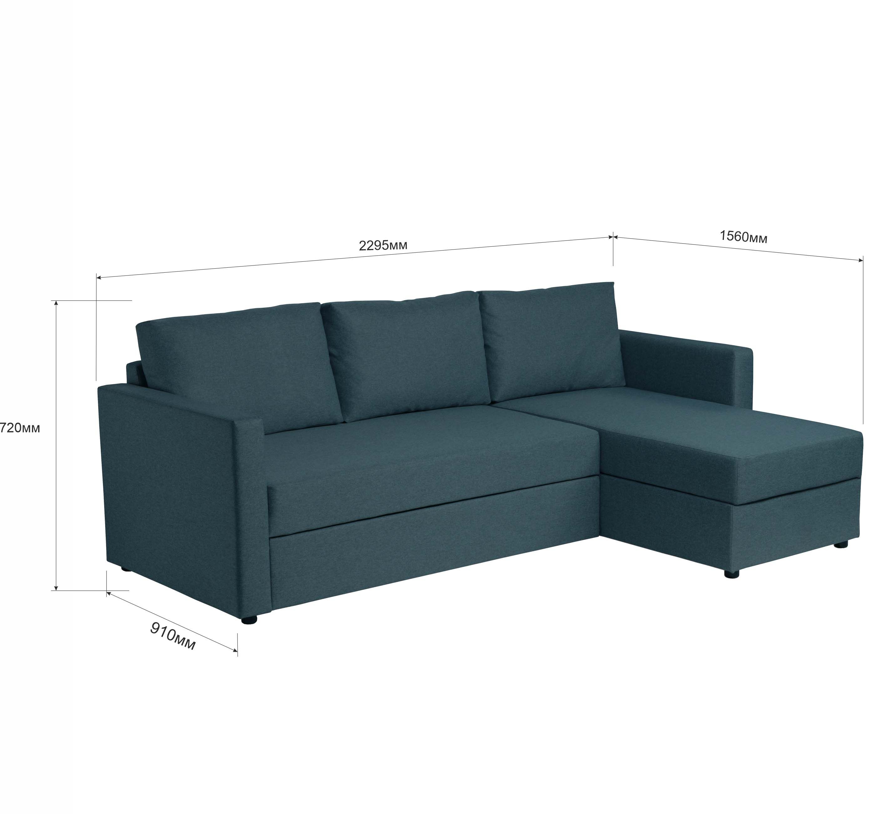 Диван трехместный с угловой секцией Тилаус КП Malmo 81, темно-бирюзовый (черные опоры)