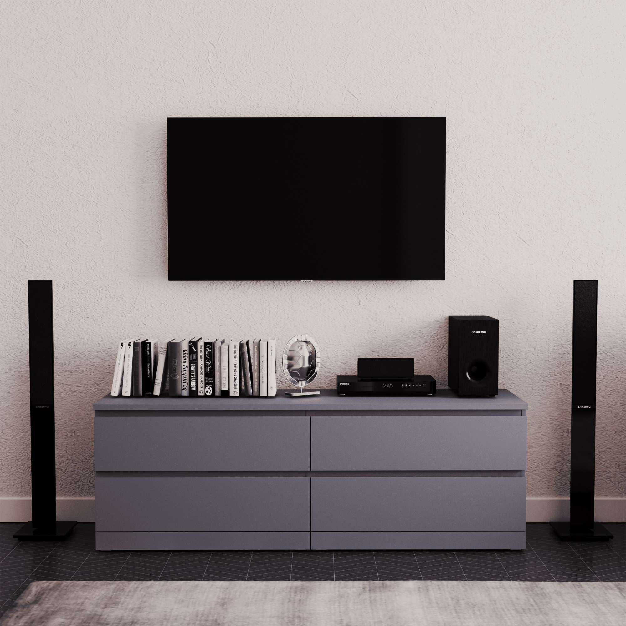 Комод ВАРМА 4Д, 160*54*40 см, серый