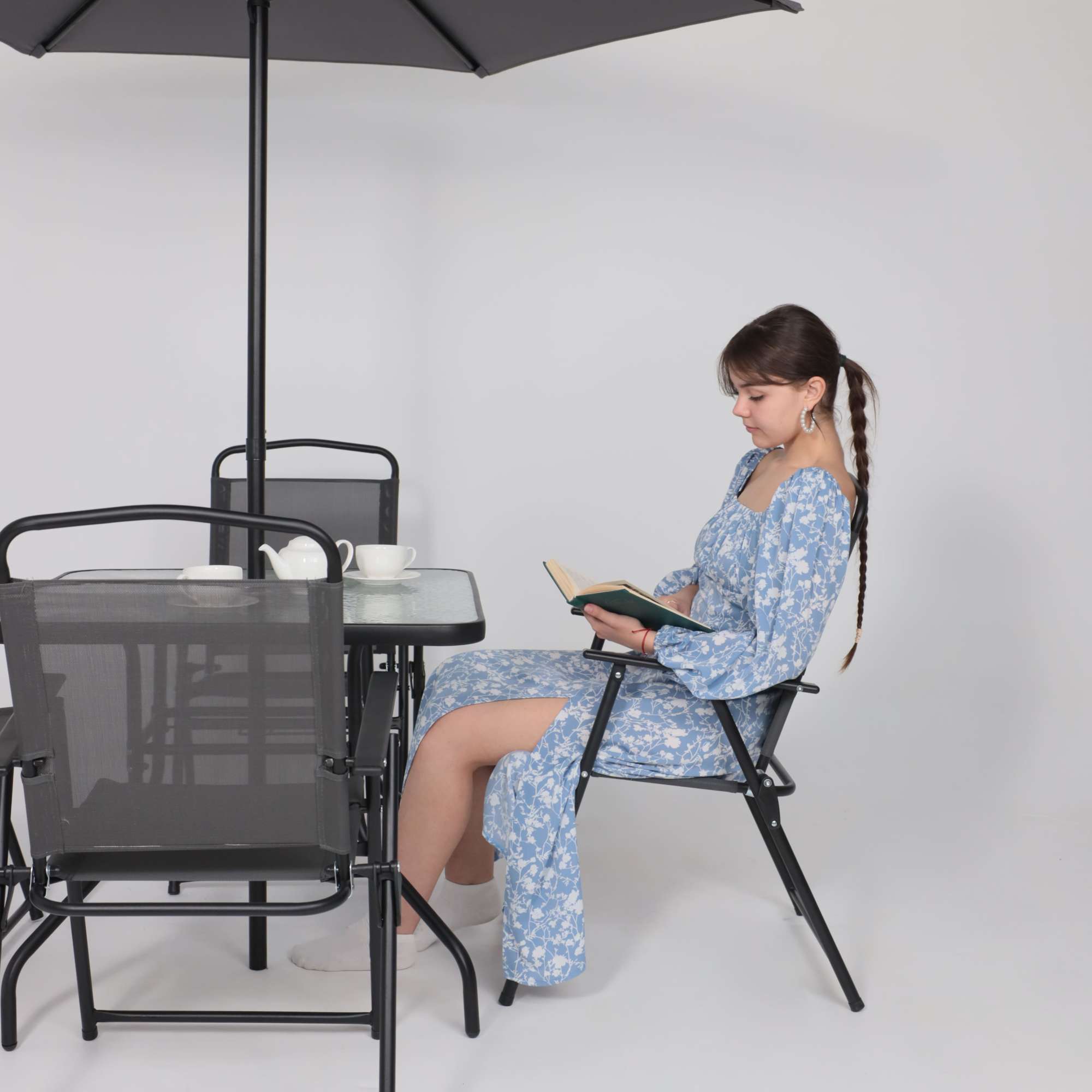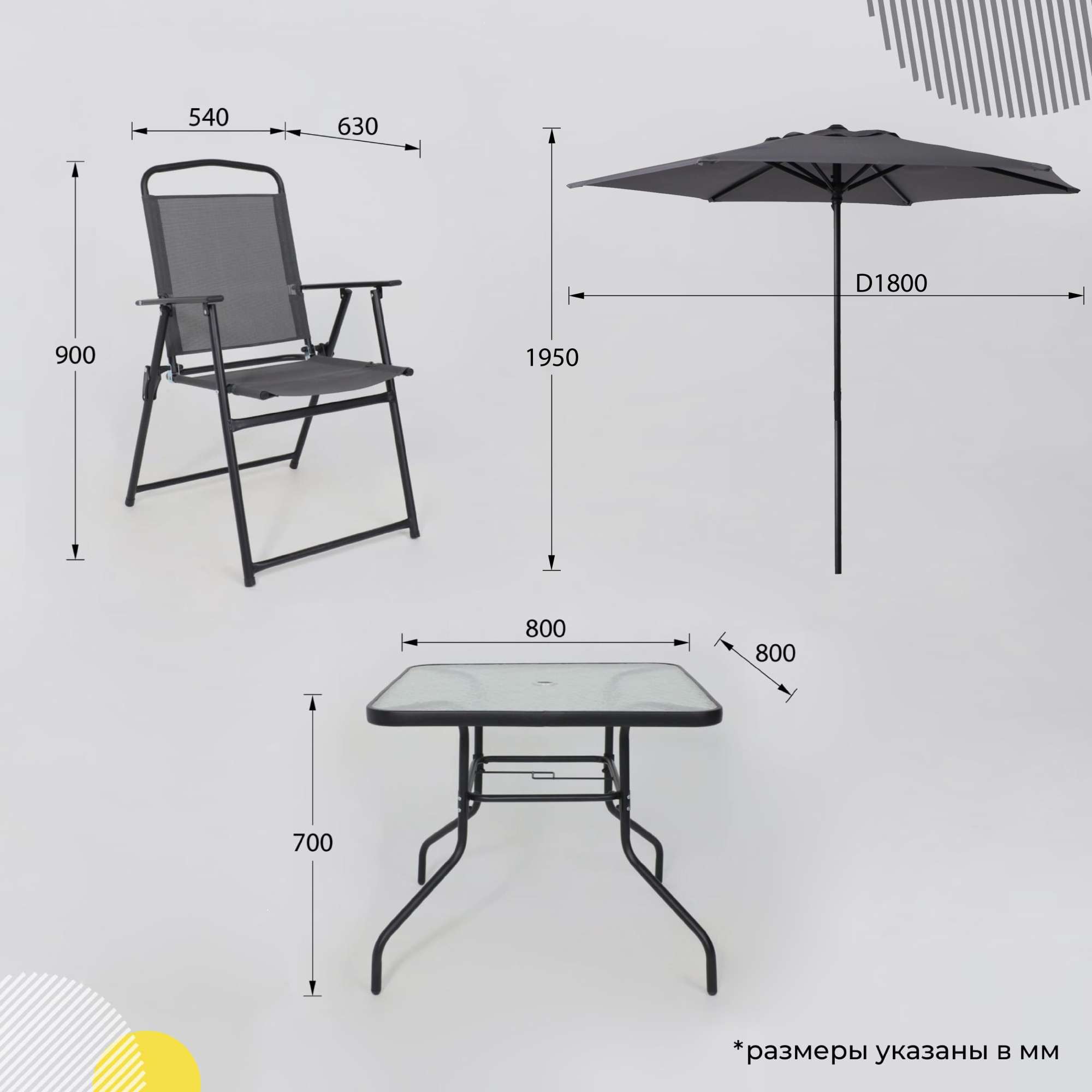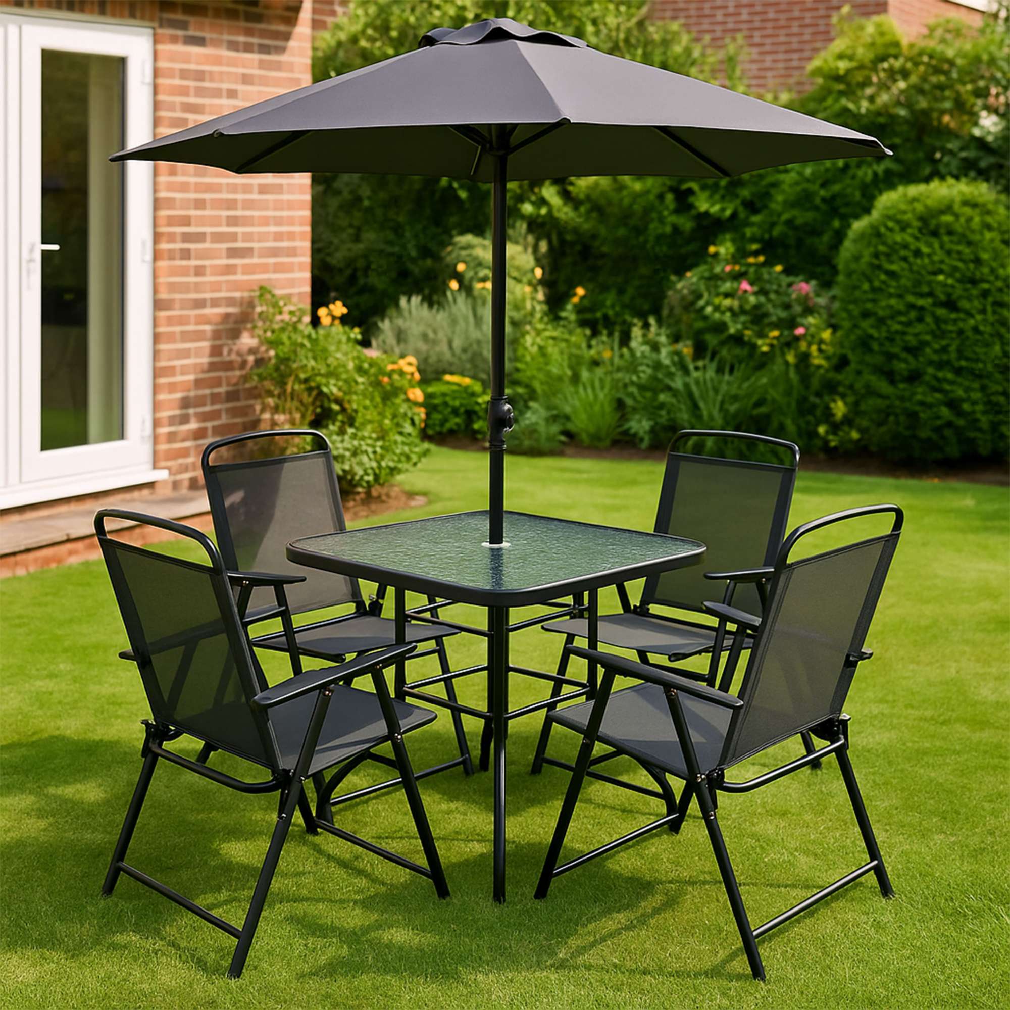 Комплект садовой мебели PICNIC (стол 1шт, 4 кресла, зонт 1шт), серый/черный