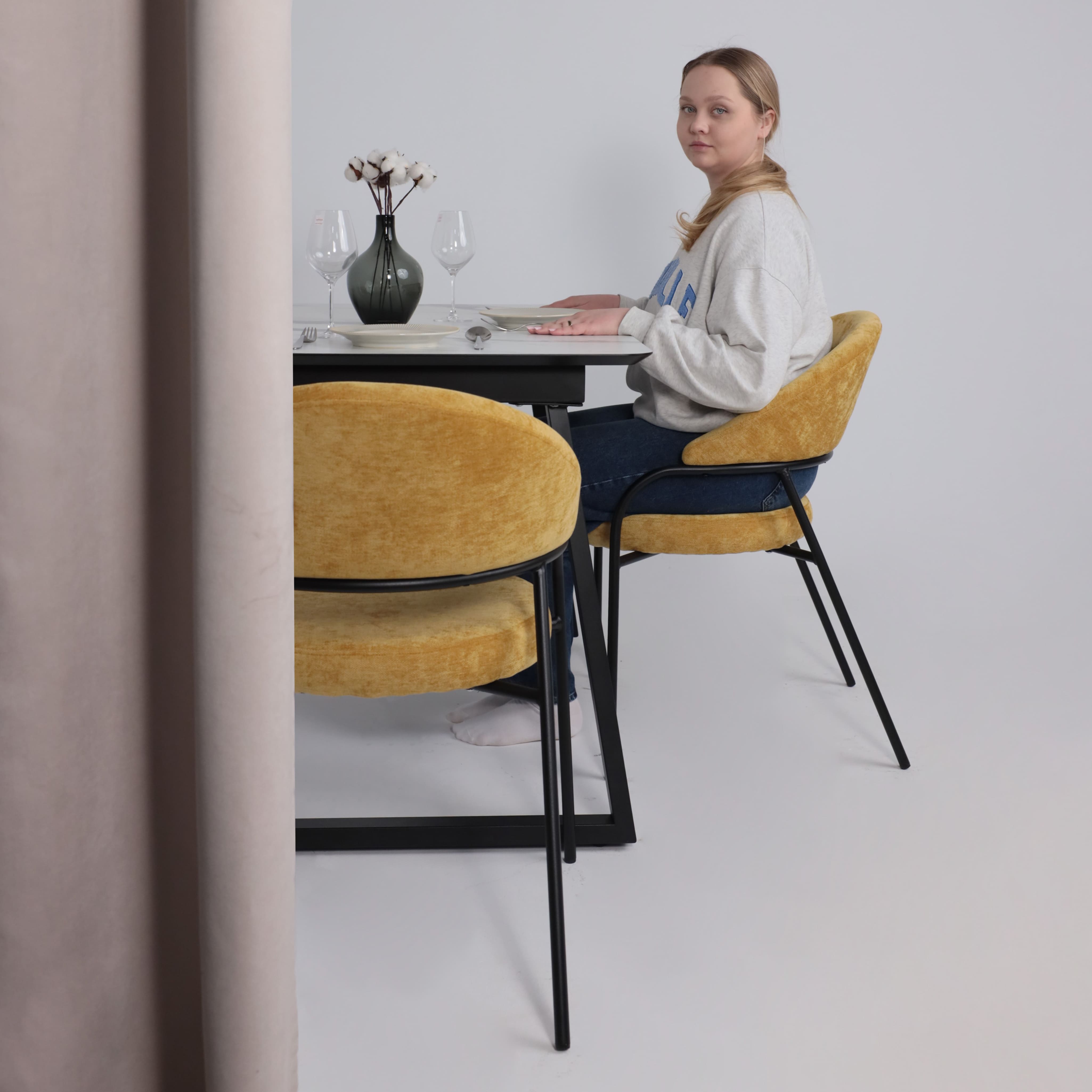 Сочетание комфорта при посадке, надежности металлического каркаса и необычного дизайна. Притягивает взгляды и добавит динамики в любой интерьер.