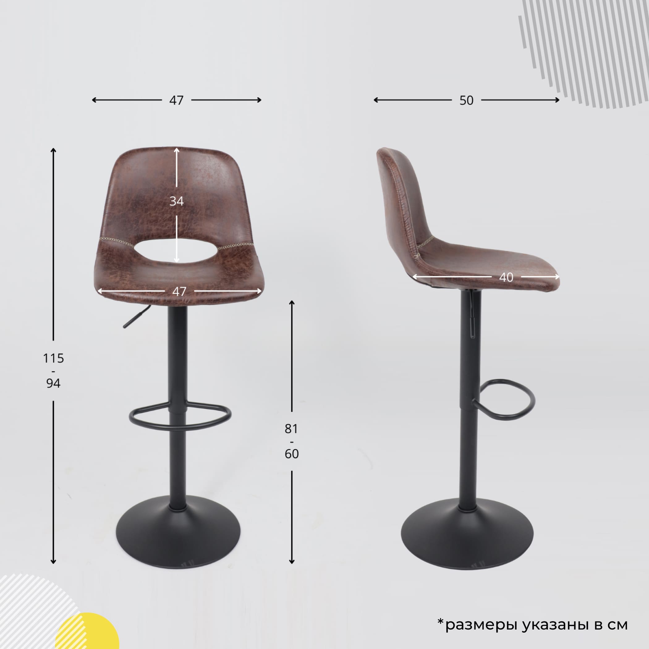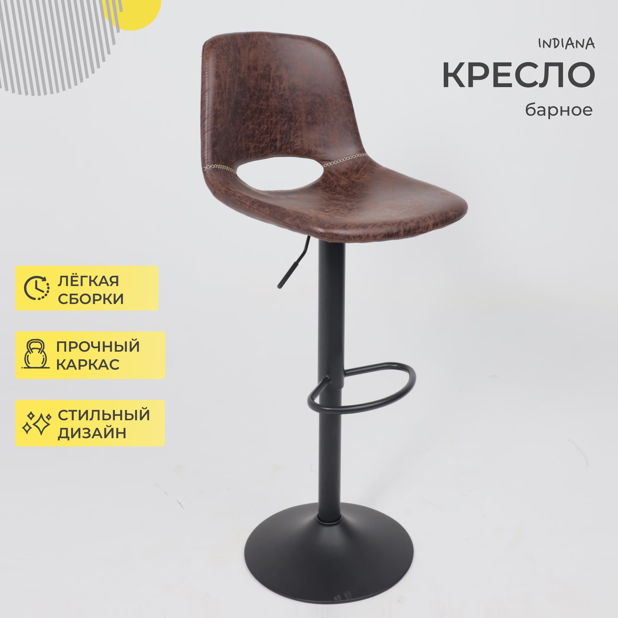 Кресло барное INDIANA, экокожа, коричневый PU C-03/черный