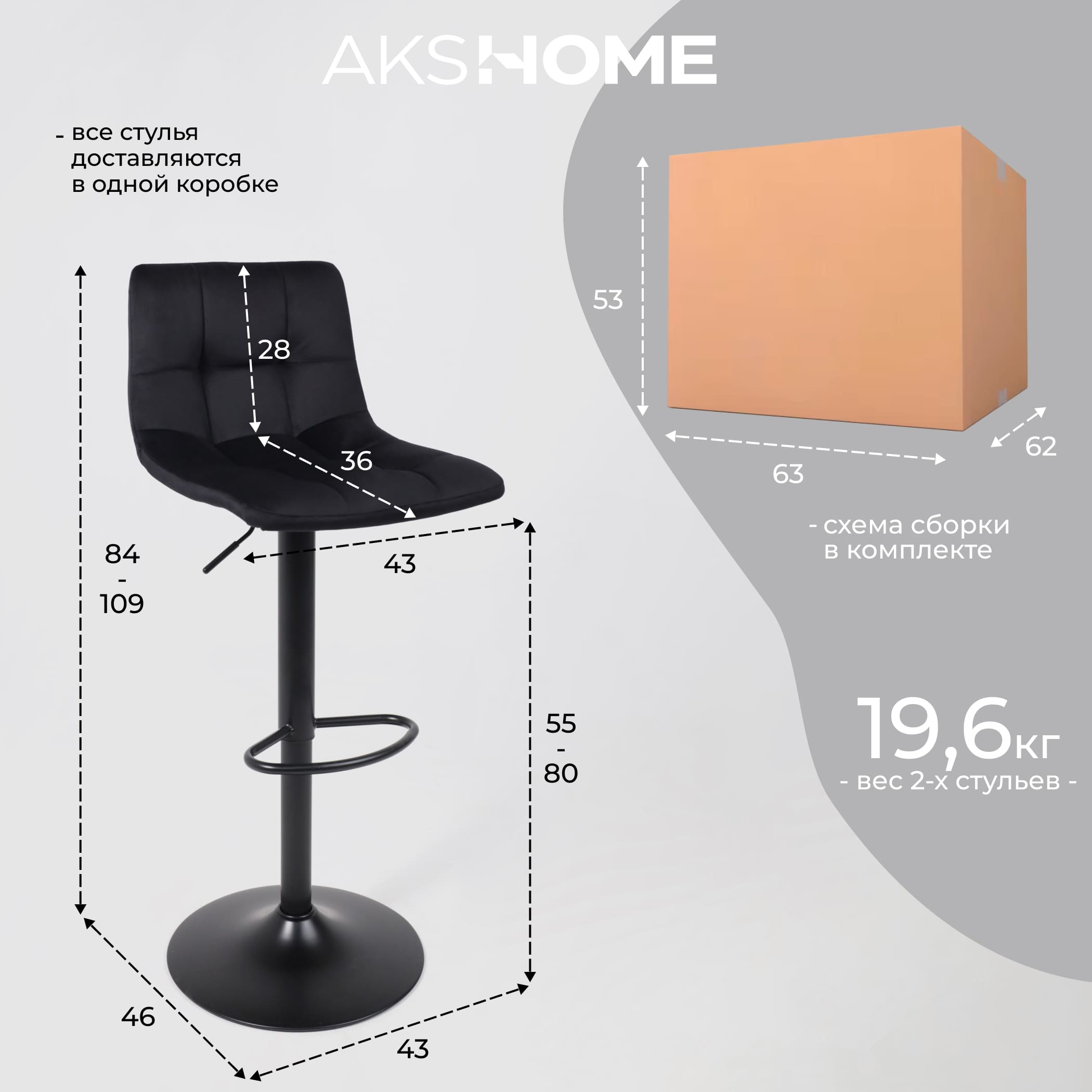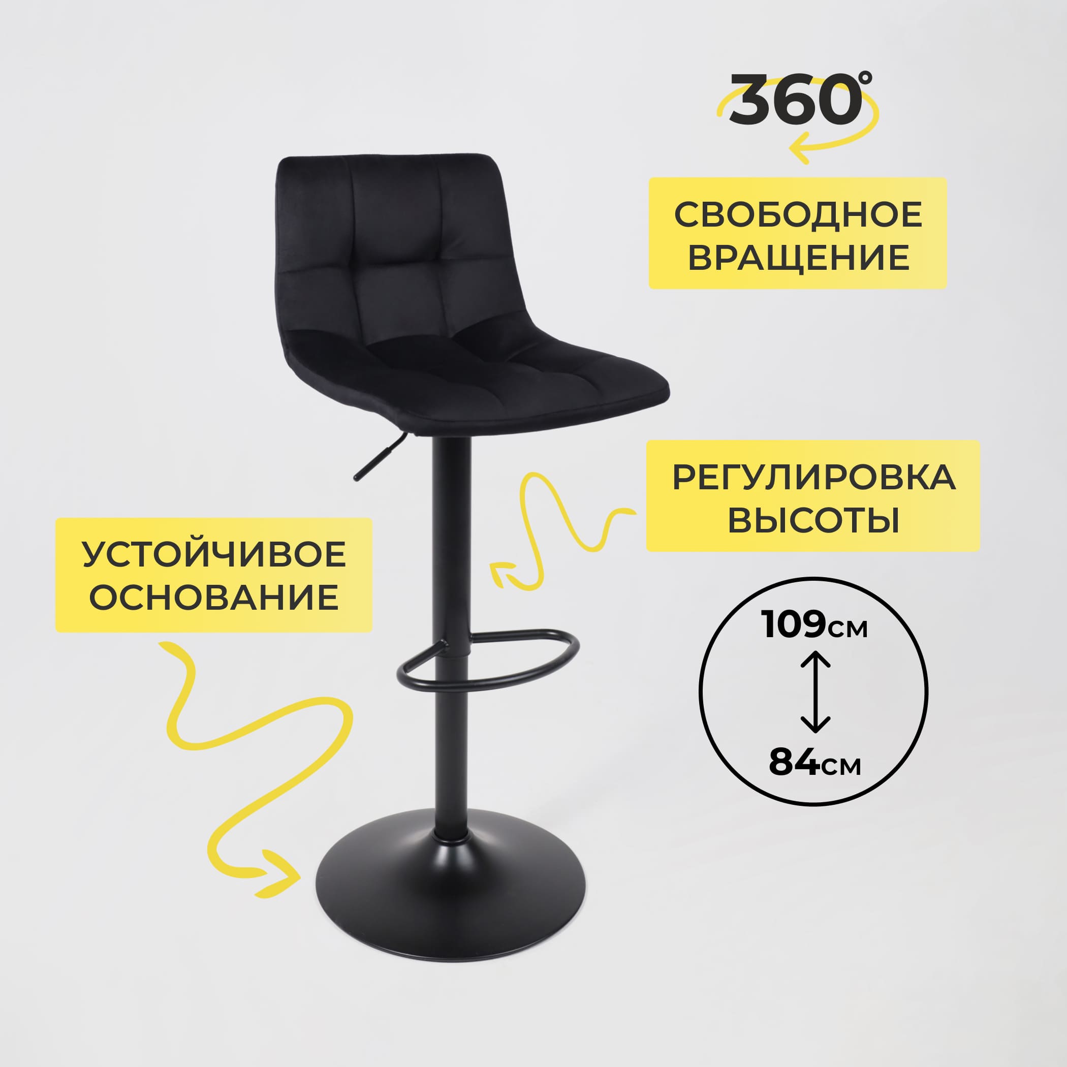 Кресло барное РОЙ GB, Seven 035 черный велюр/черный