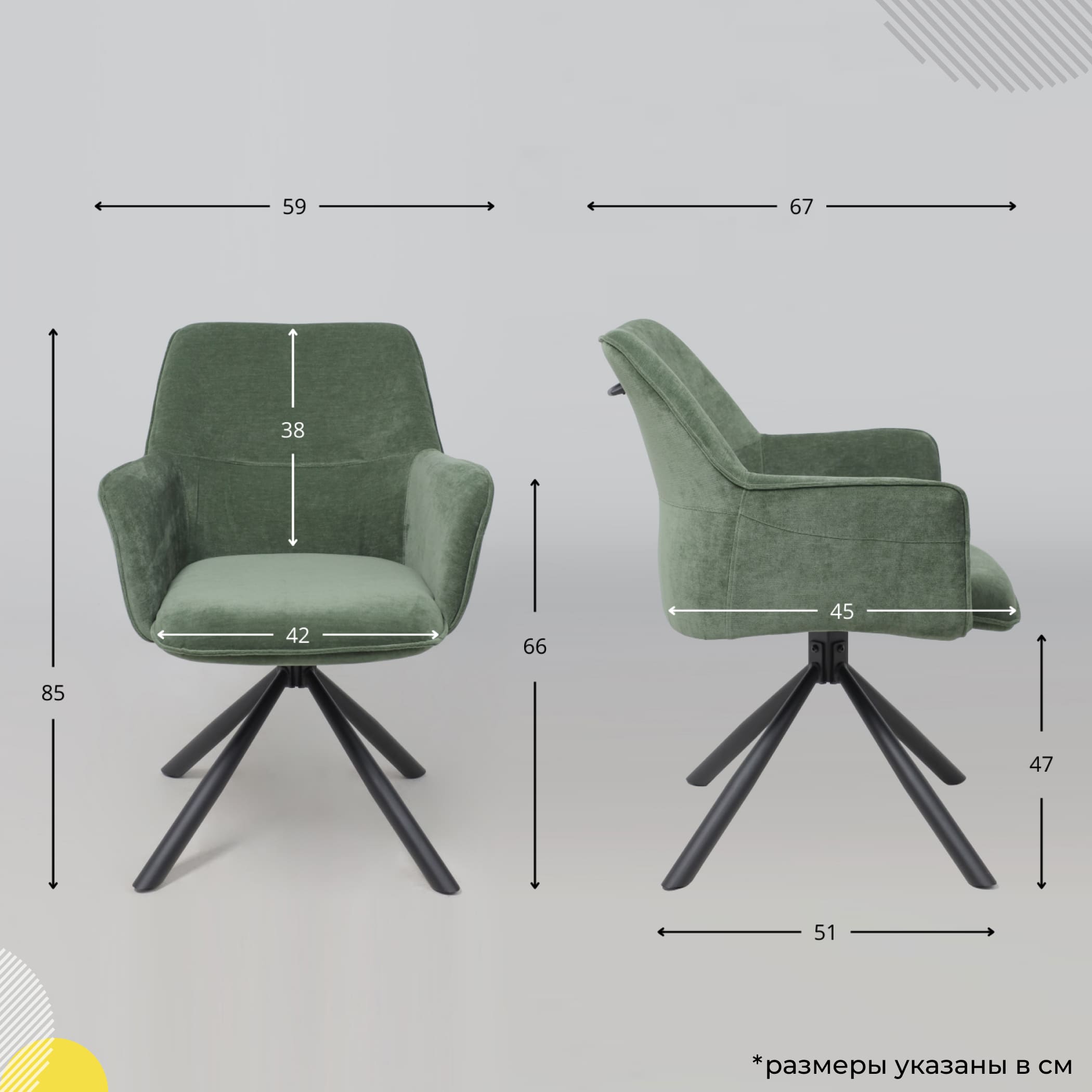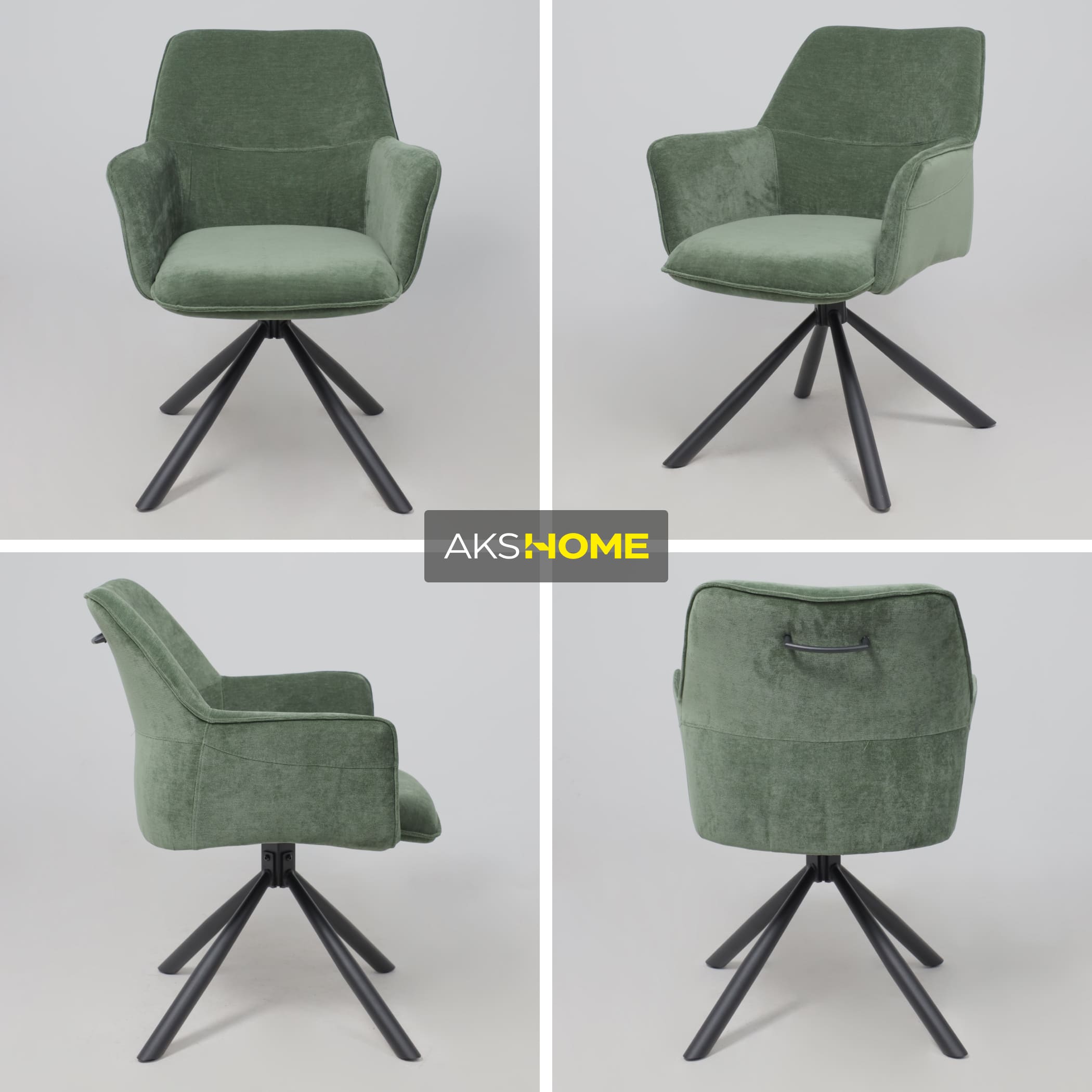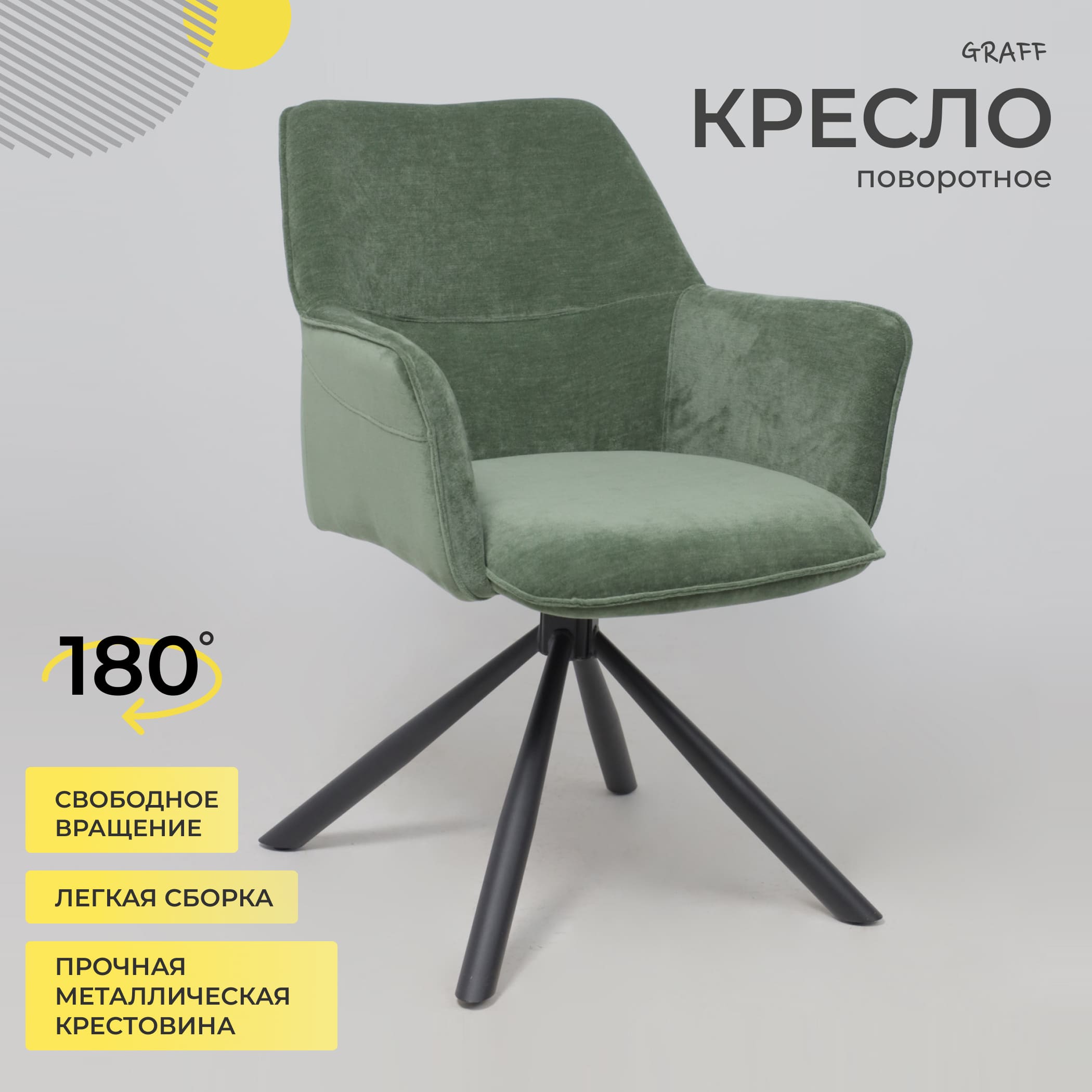 Кресло GRAFF, поворотное, зеленый шенилл Ote Canna 355 /черный