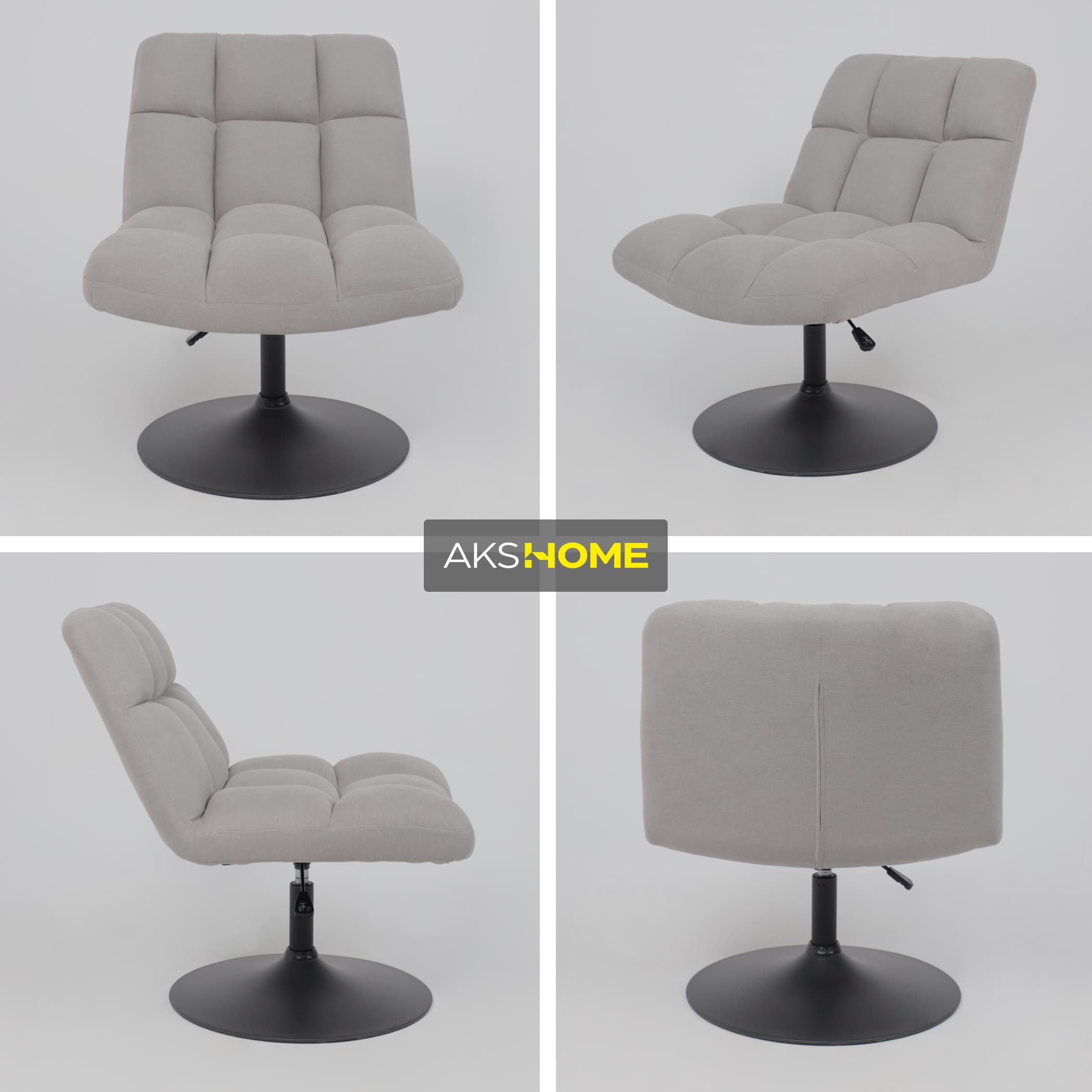 Поворотное кресло изготовлено в износостойкой ткани с декоративной прошивкой, очень мягкое и удобное. Круглое основание изготовлено из металла, что обеспечивает устойчивое положение.