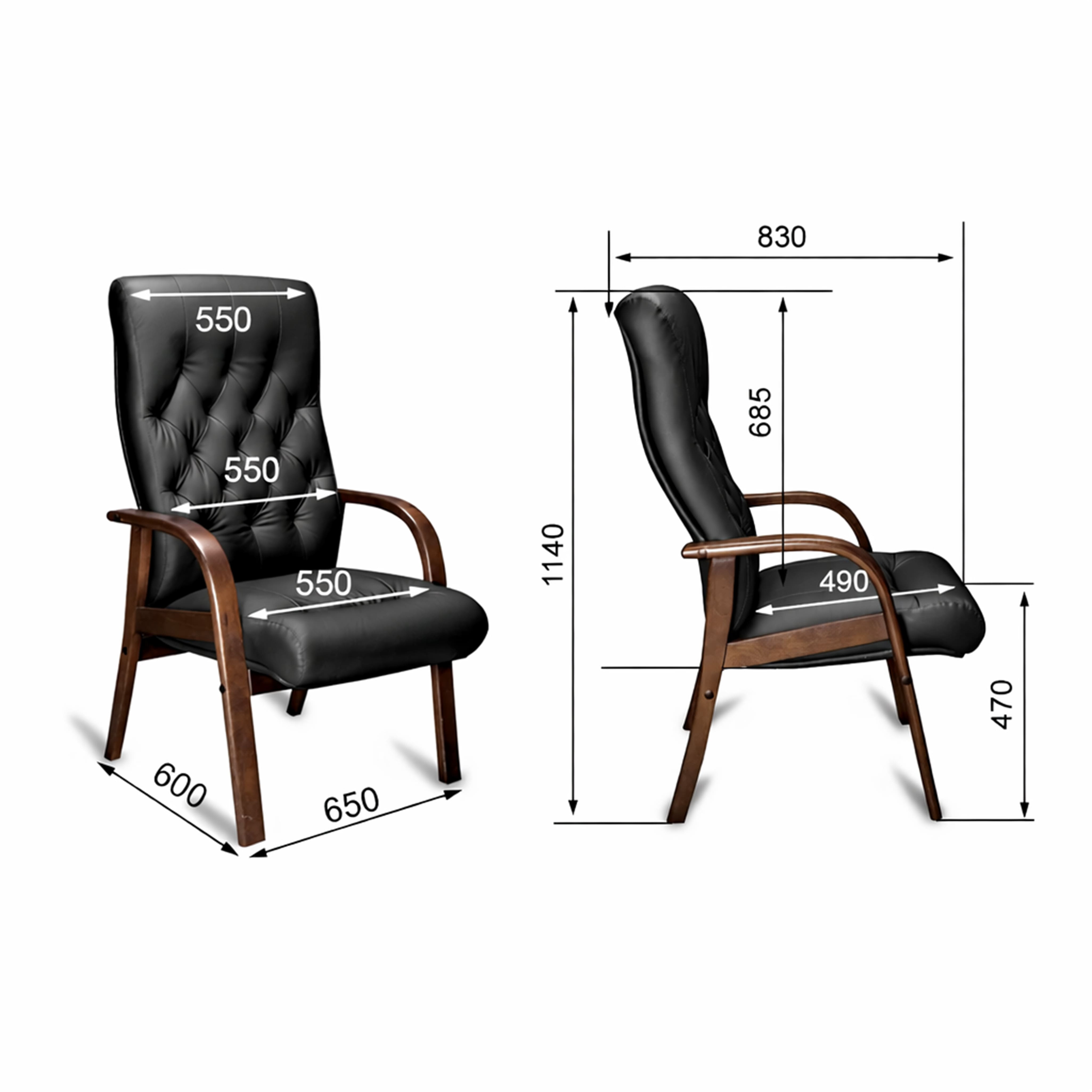 Кресло OXFORD A/D (орех темный) кожа (черная)