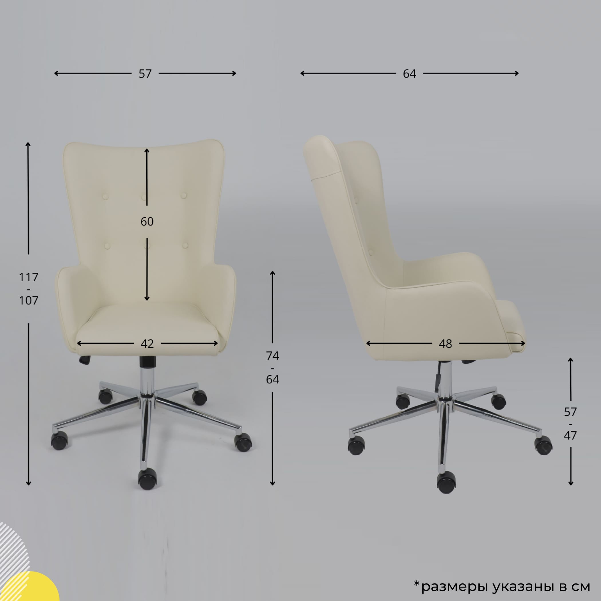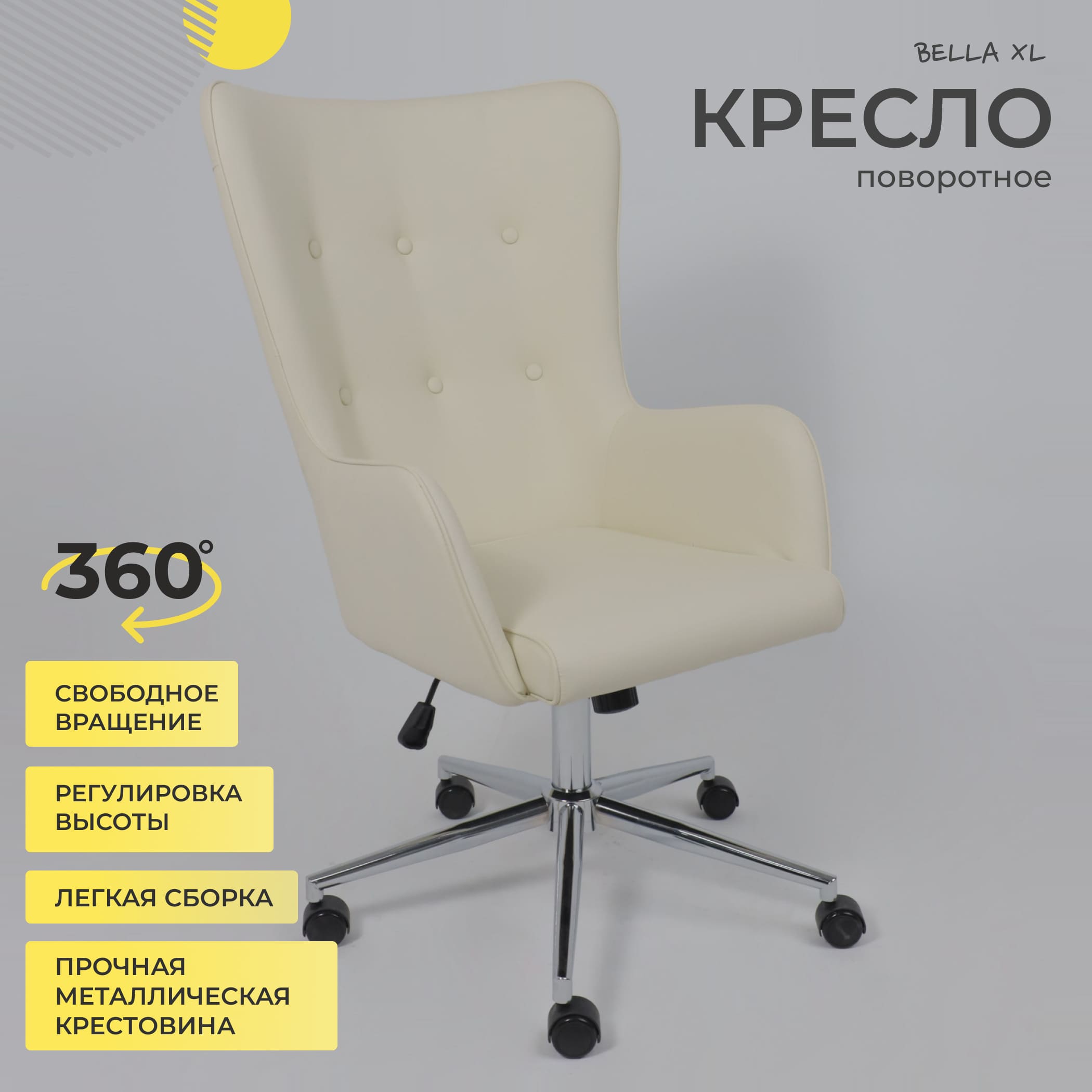Кресло поворотное BELLA XL chrome, Pegasso крем
