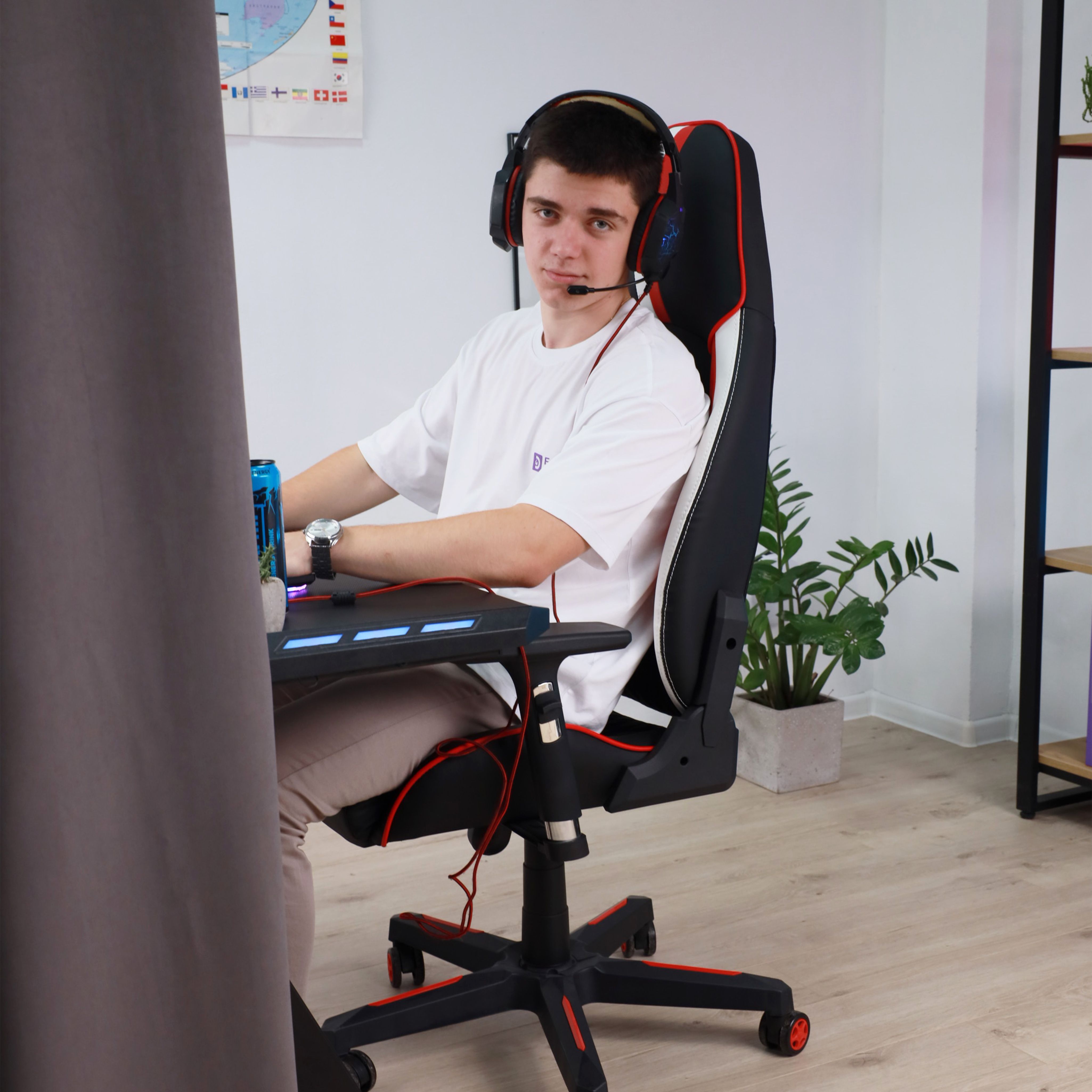Кресло поворотное BOLID, ECO, черный/белый/красный
