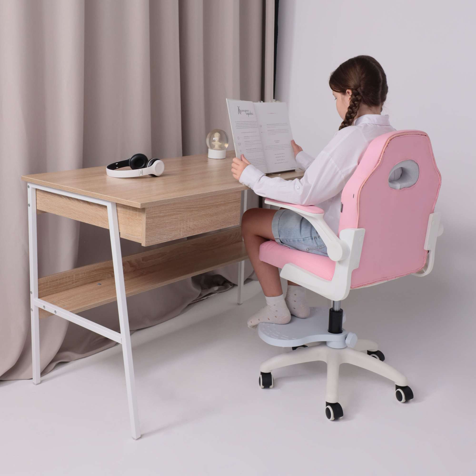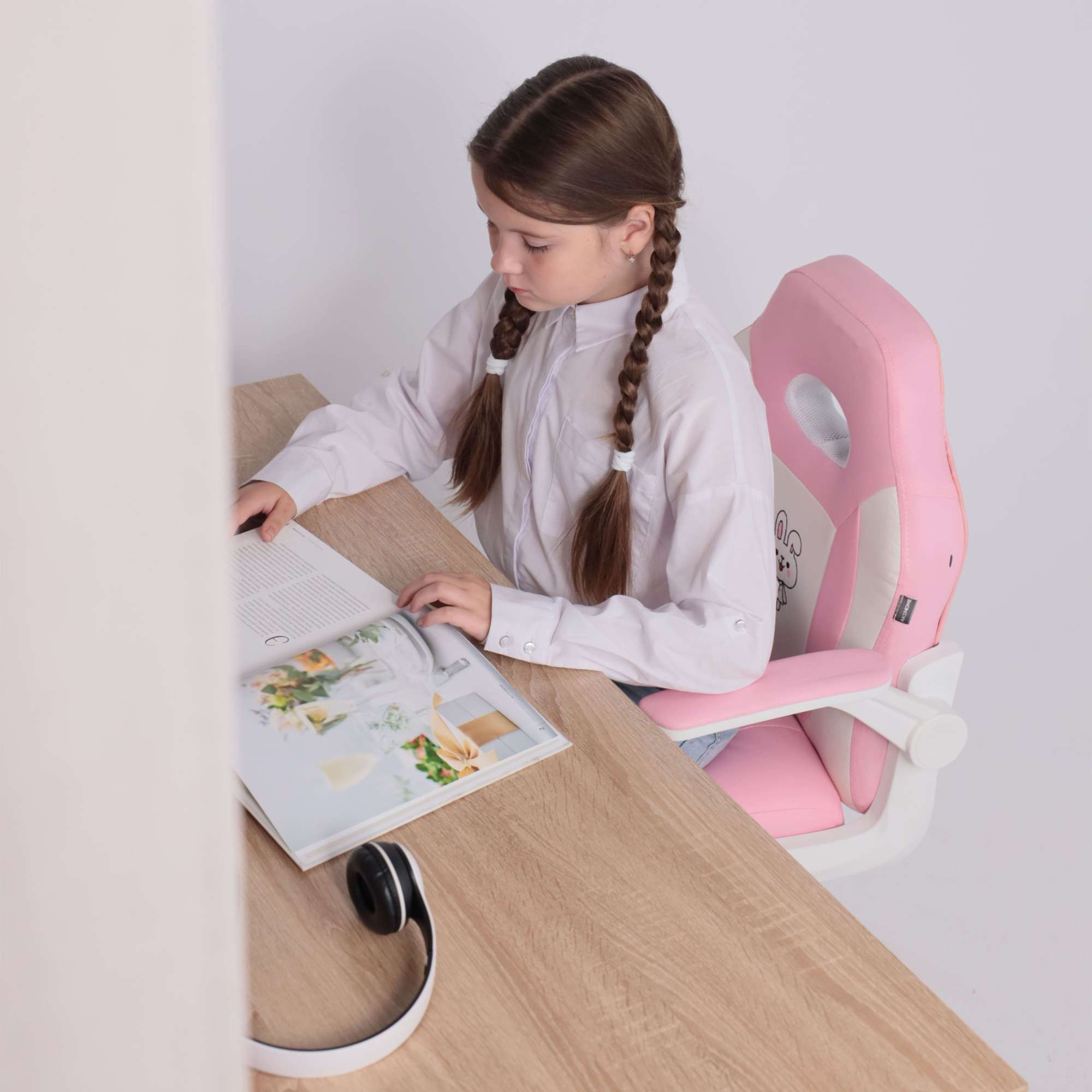 Кресло рабочее, поворотное JASMINE, white, розовый, ECONOM