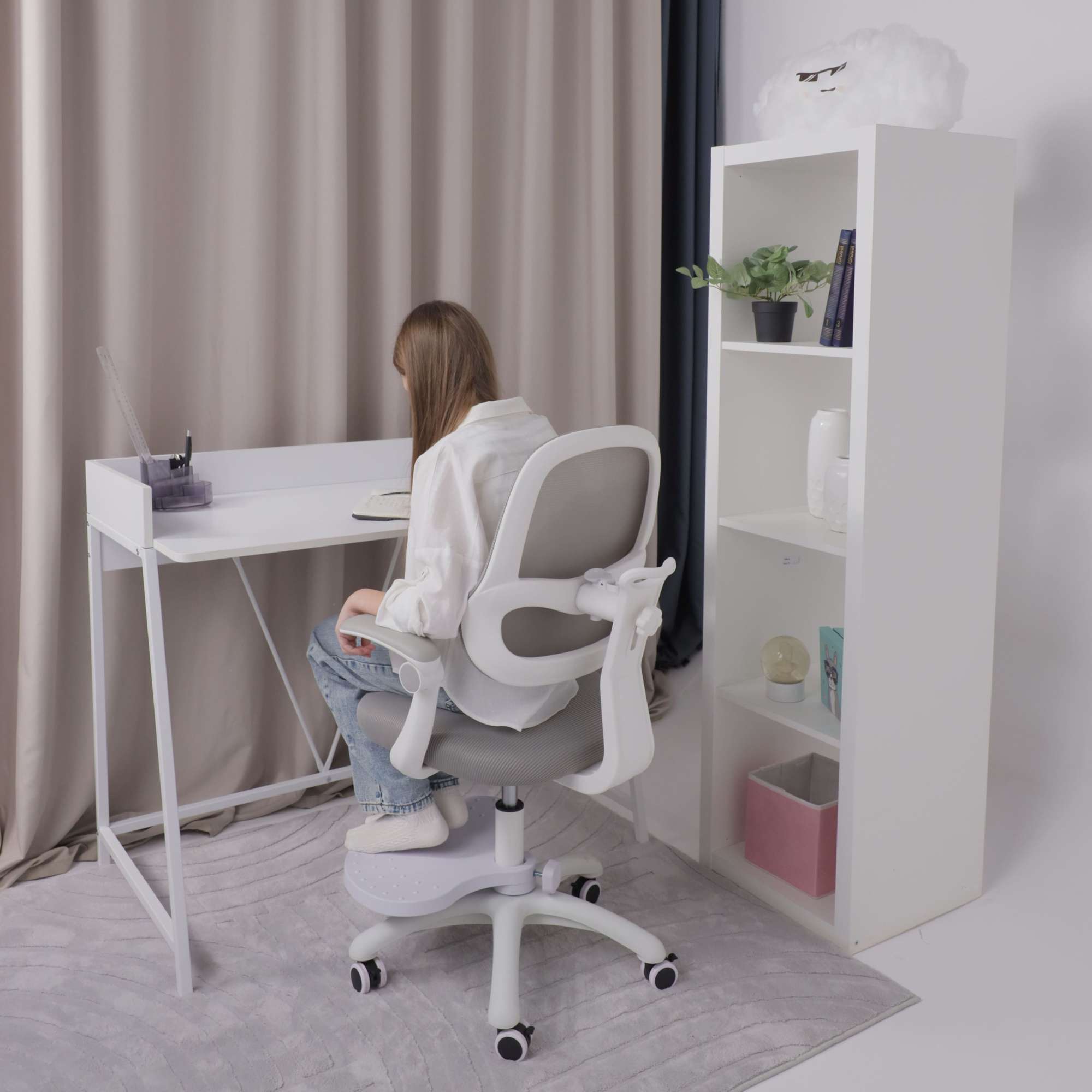 Кресло поворотное LUNA, сетка+ткань, серый