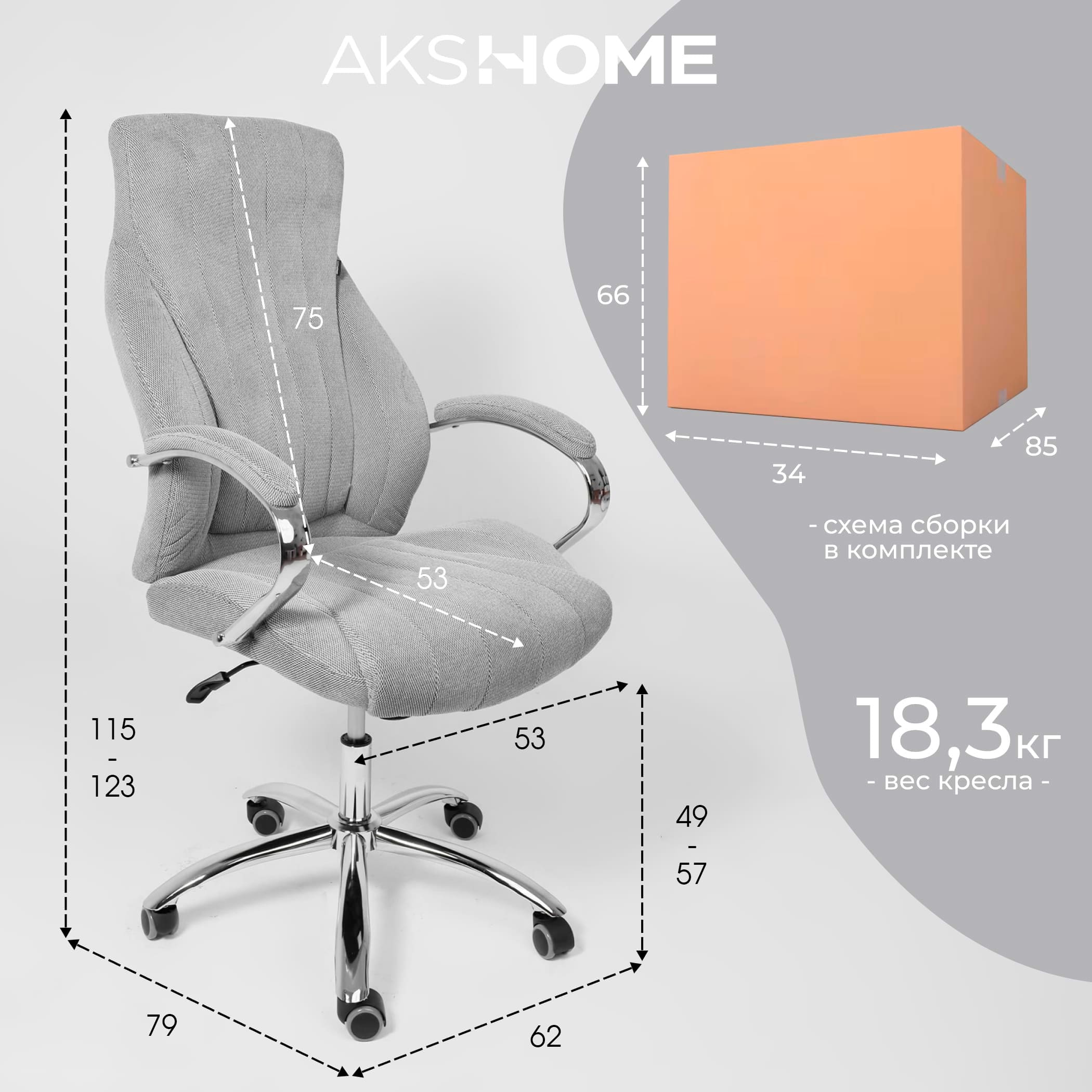 Кресло поворотное MASTIF, ткань/серый