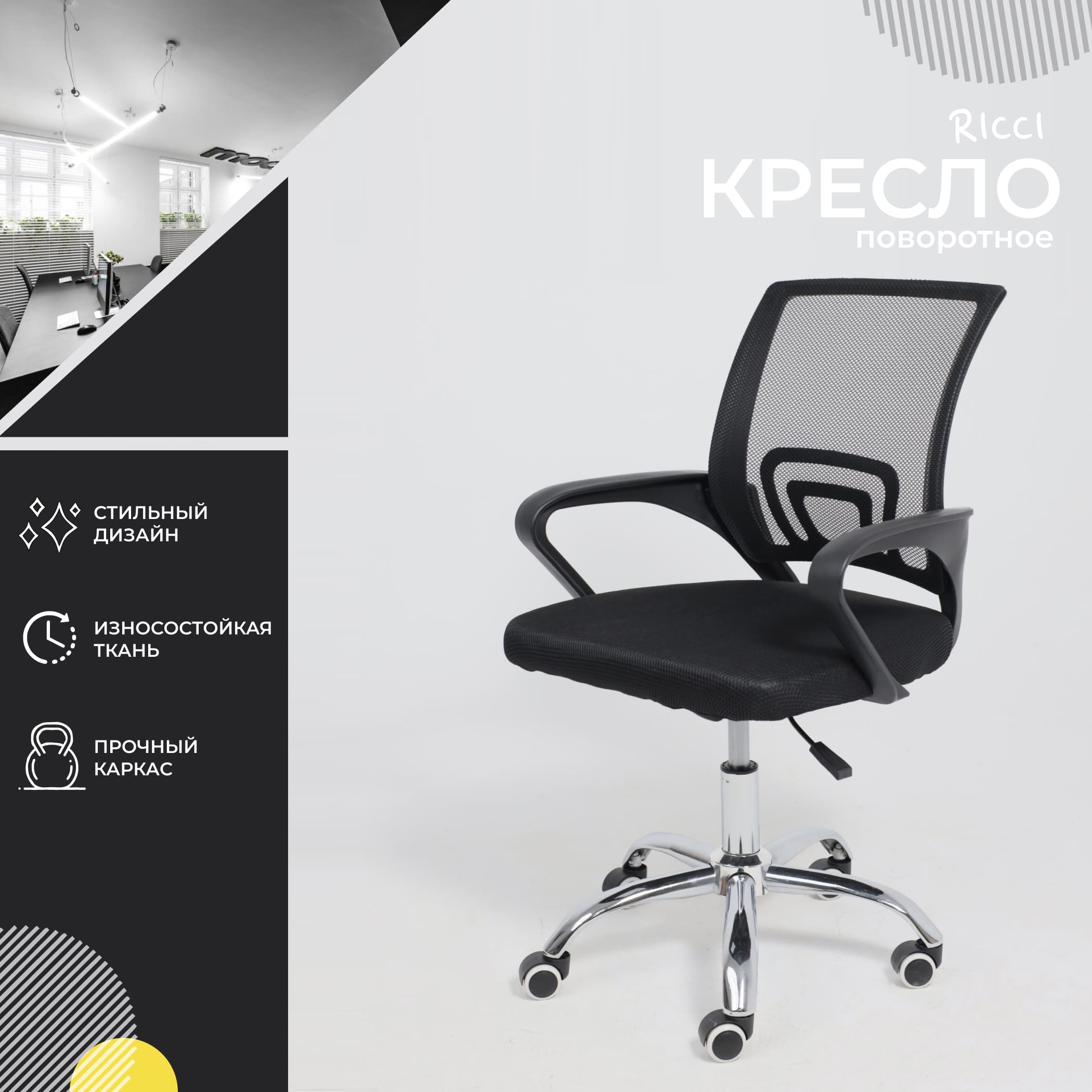 Кресло поворотное RICCI 696, черный