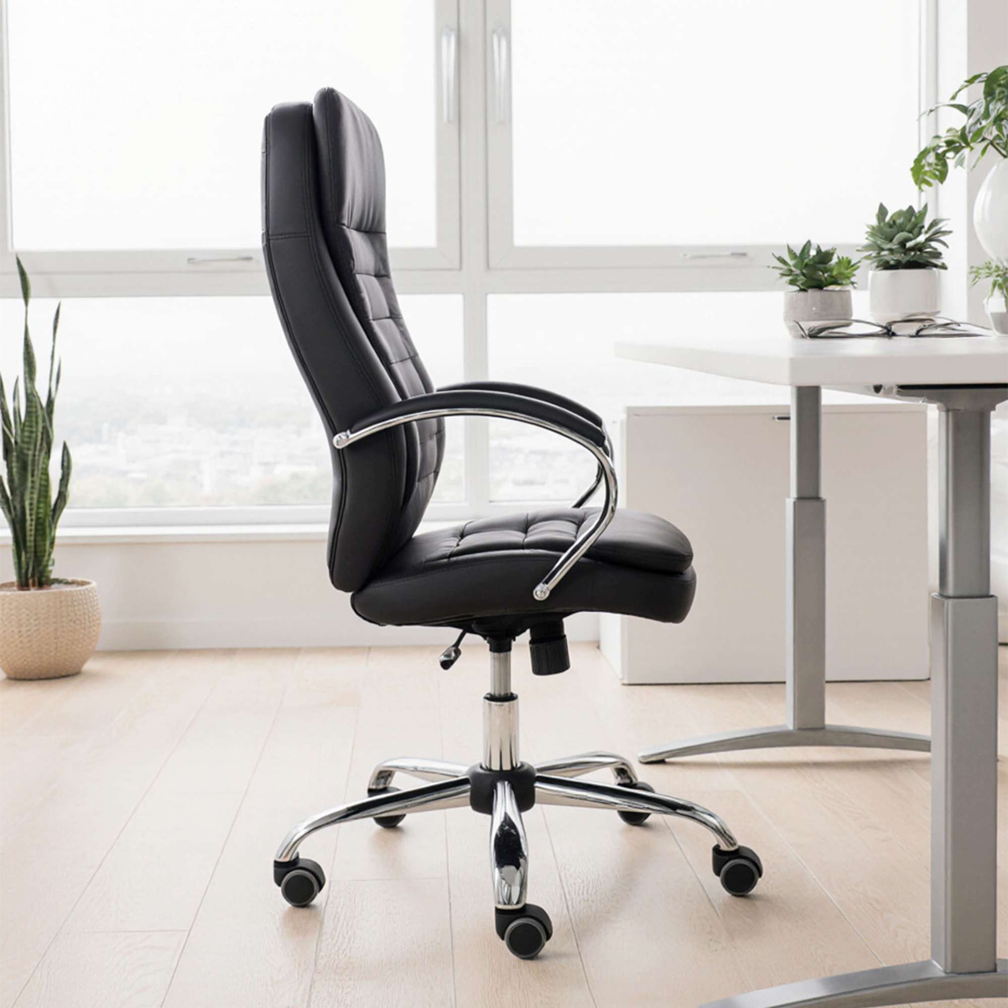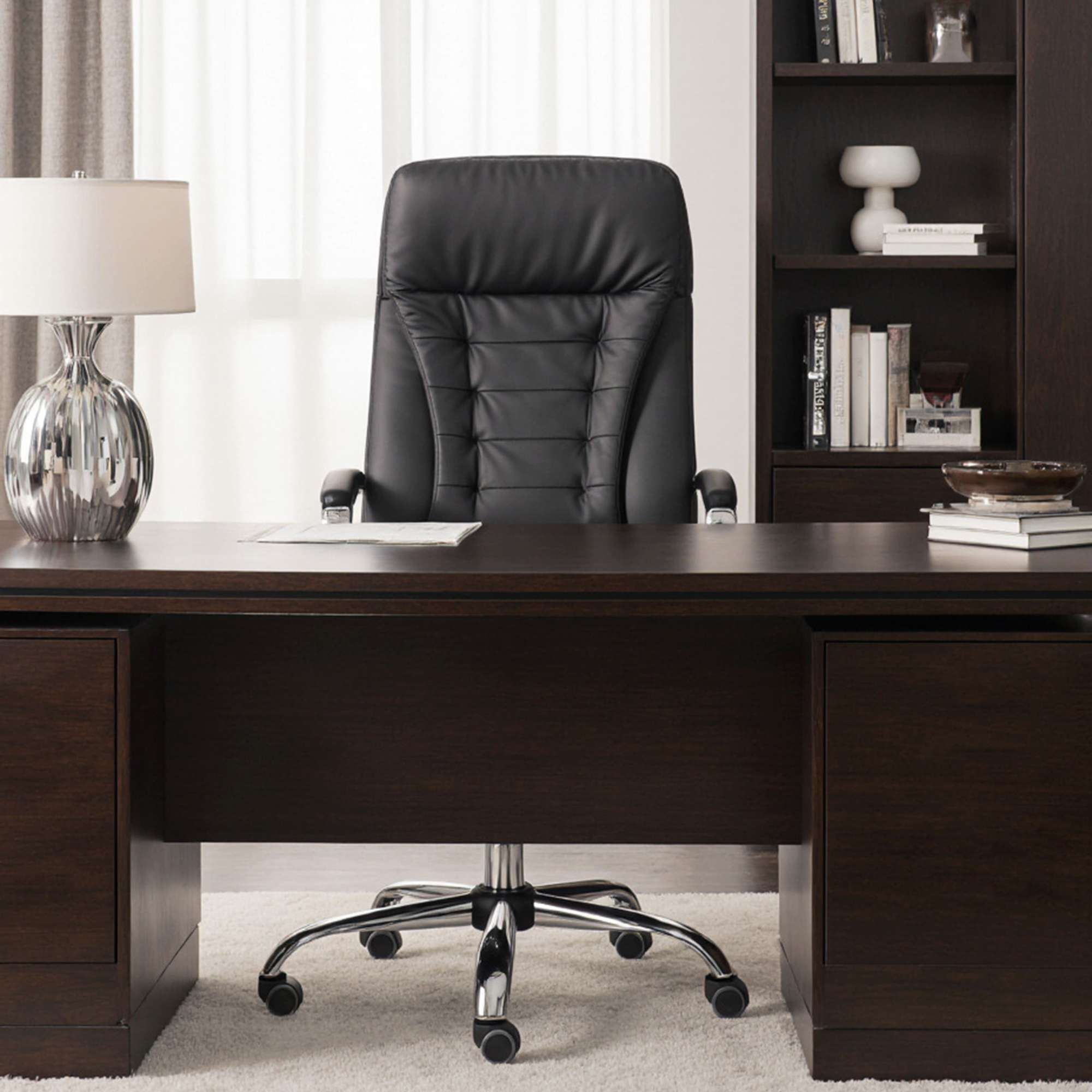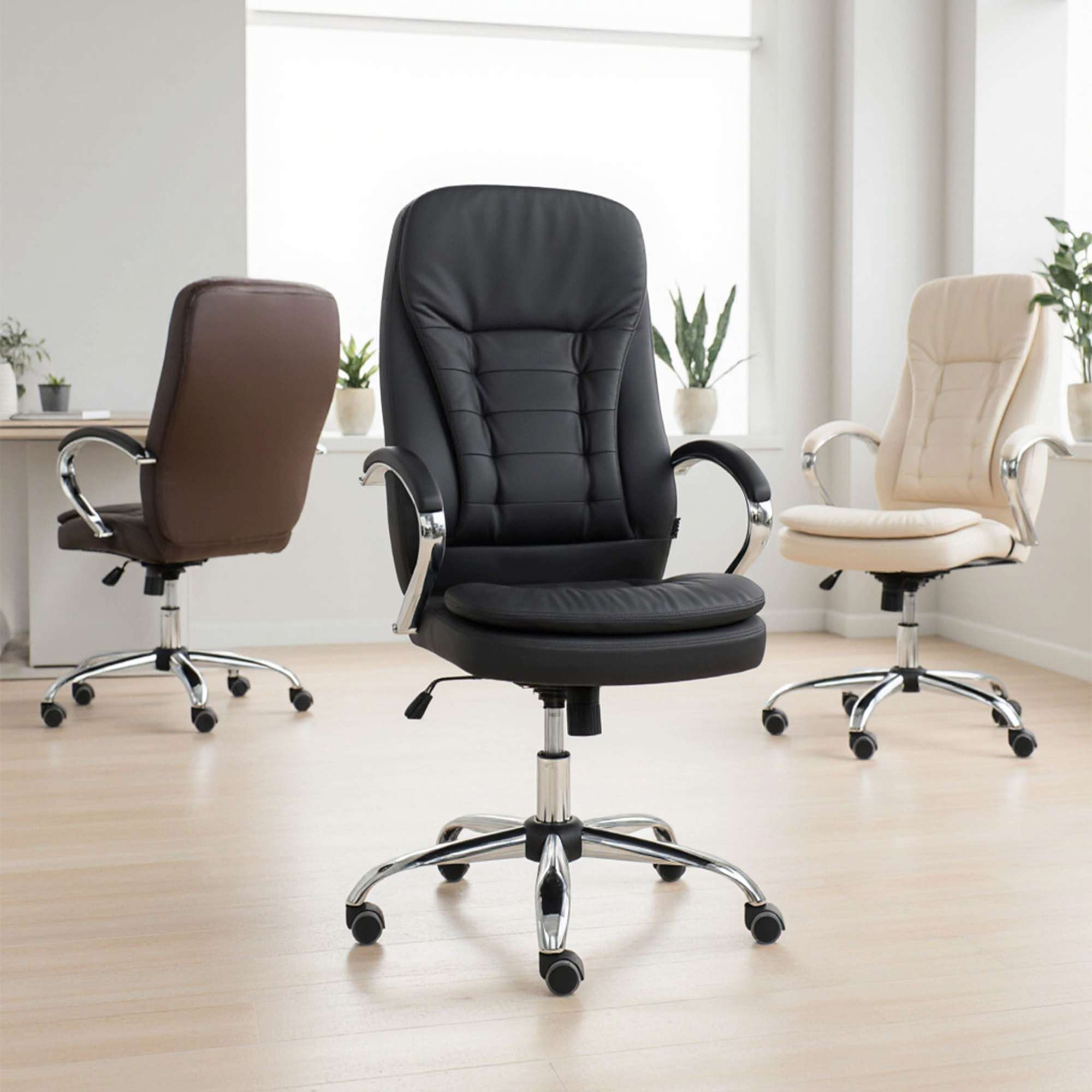 Кресло офисное RICHARD - строгость, комфорт и надежность в одном флаконе. Универсальный чёрный цвет и отделка из экокожи делают это кресло идеальным выбором как для офиса, так и для домашнего кабинета. Модель оснащена механизмом Tilt, который позволяет зафиксировать удобное положение, а также регулировать жесткость наклона - подстроится под каждого пользователя. Прорезиненные колёса не царапают пол, прочное металлическое основание с хромированным покрытием выдерживает нагрузку до 120 кг. Подлокотники, мягко обтянутые экокожей, обеспечивают дополнительный комфорт, а анатомическая спинка поддерживает спину в течение всего дня.