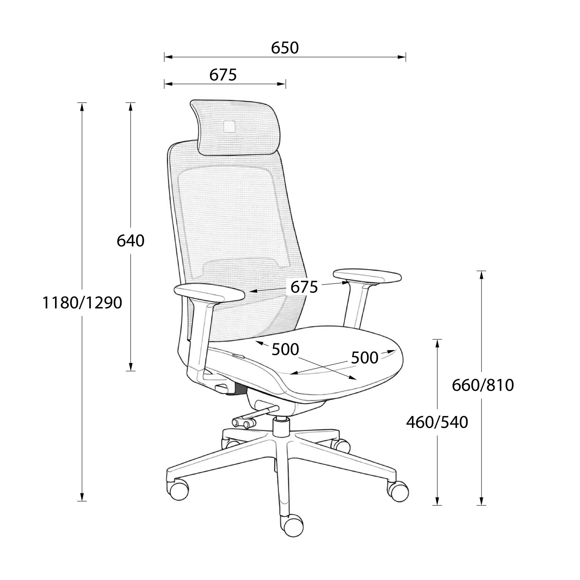 Ширина с подлокотниками (мм):