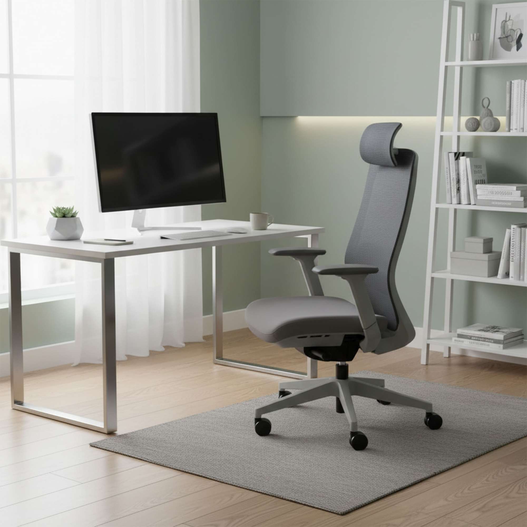 Кресло поворотное SPIRIT, темно-серая сетка+ серая ткань/серый полиамид