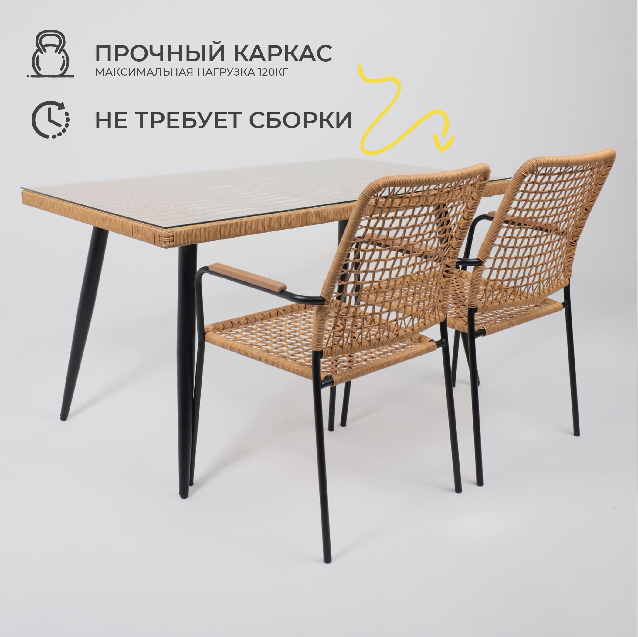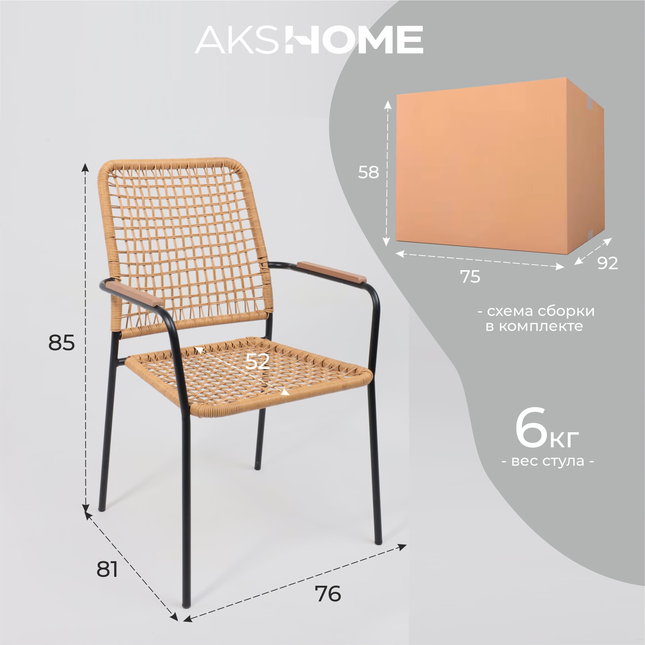 Кресло садовое BERGAMO, PE, иск.роттанг,черный+коричневый