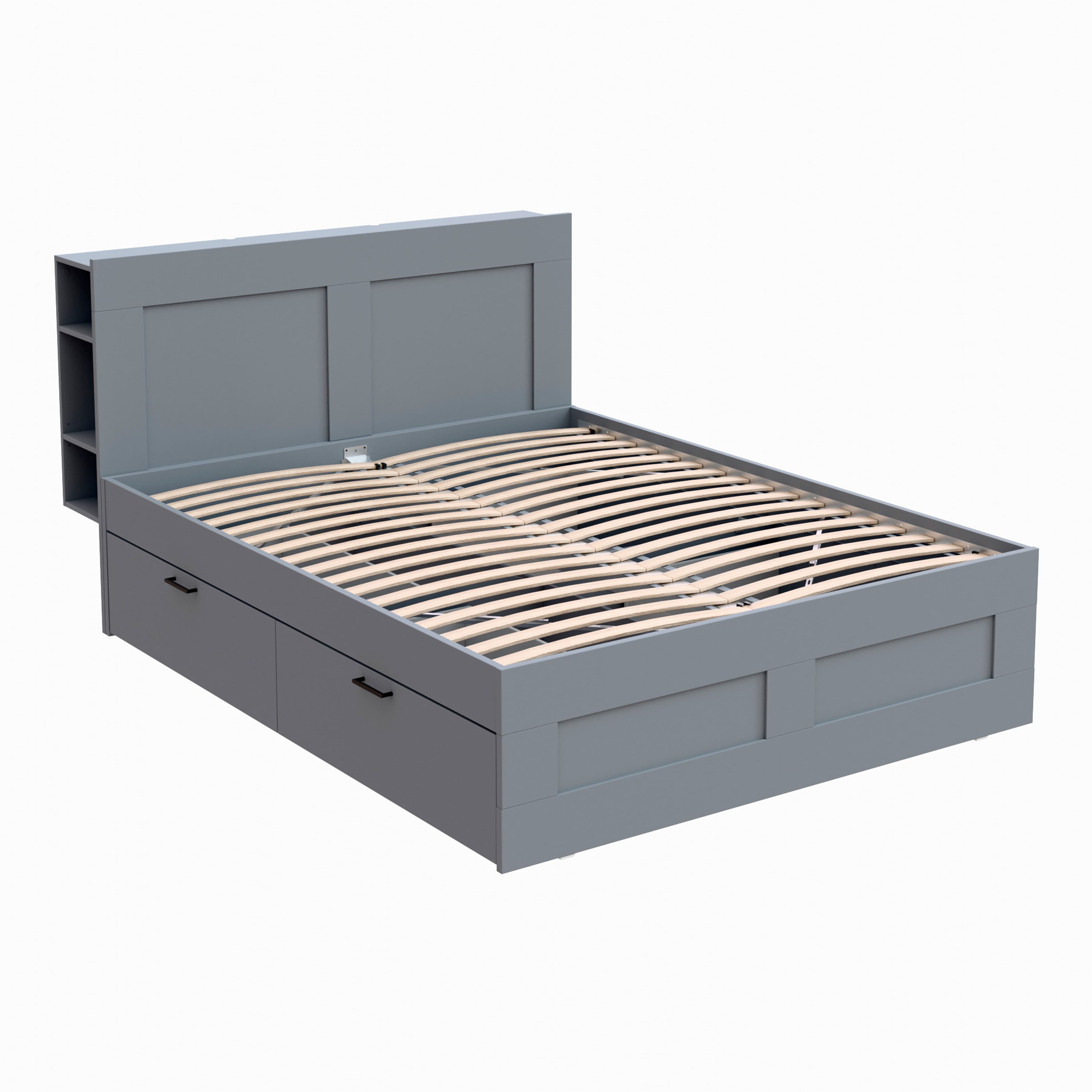 Кровать двойная с ящиками НАВИ 160х200 (без изголовья), серая (2.15.04.110.4 RU)