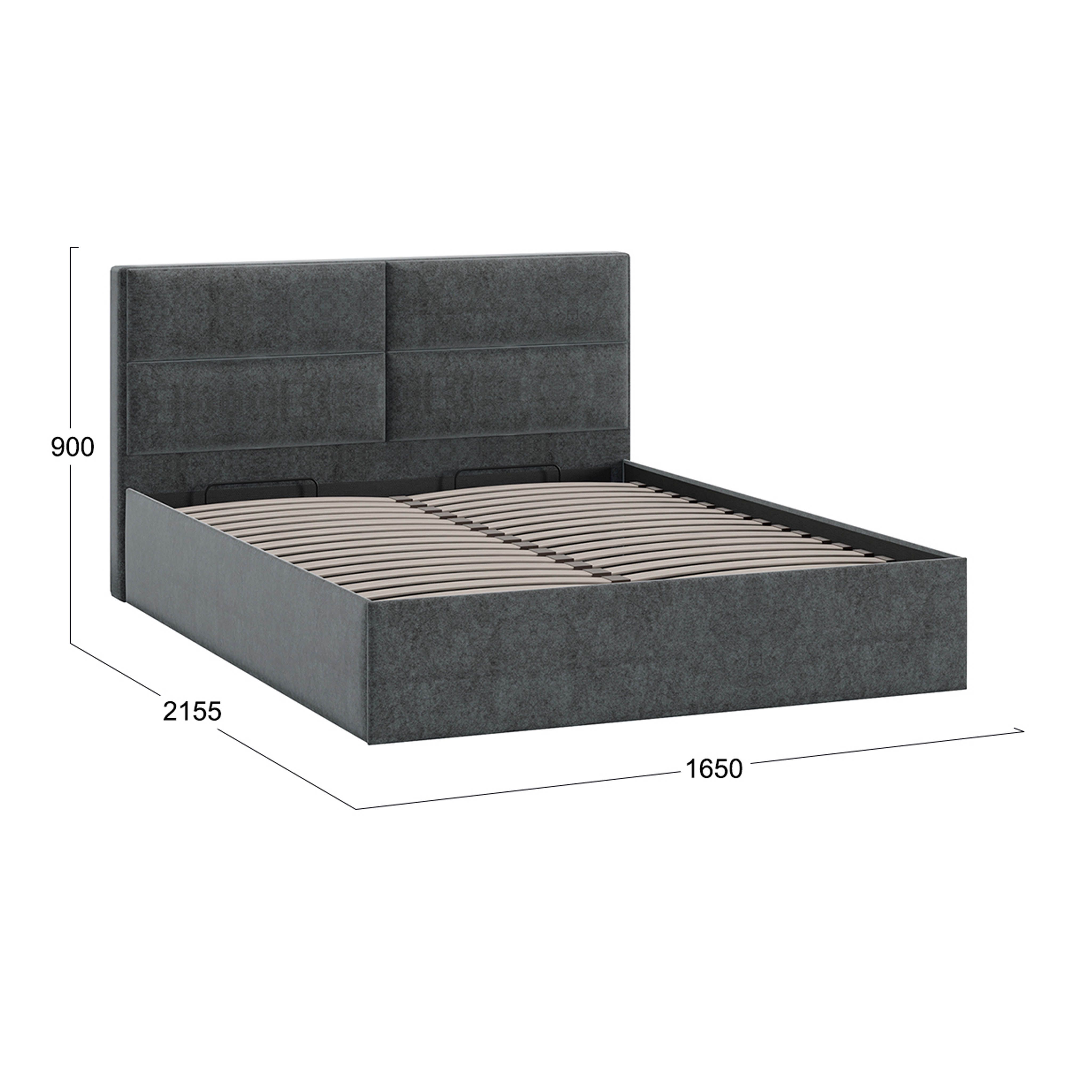 Кровать Глосс Тип1 с ПМ 1650*2155*990, Микровелюр Jercy Graphite