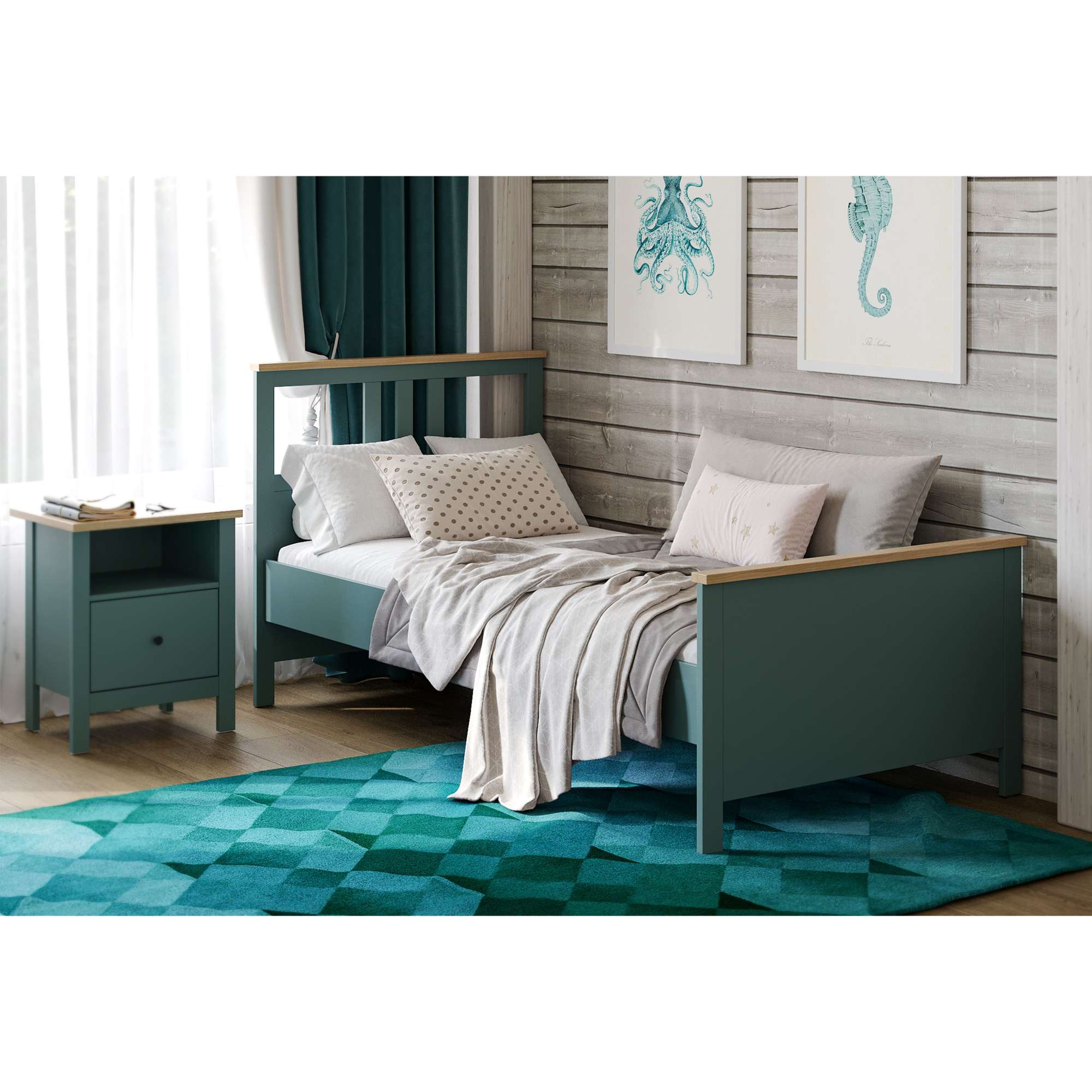 Кровать одинарная САГА 90*200, темно-бирюзовая/ясень (2.08.04.210.16 RU)
