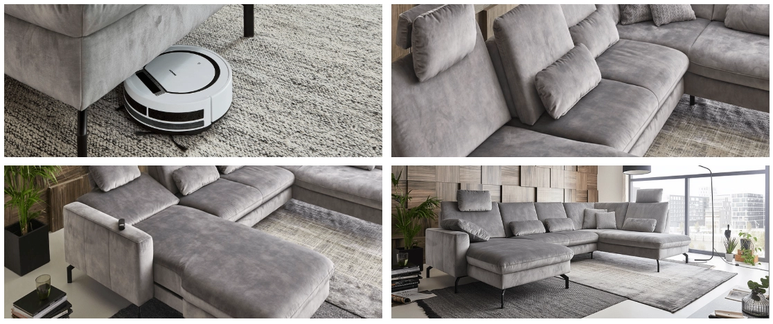 Модуль оснащен электроприводом для трансформации положения спинки и сиденья (только для канапе).
