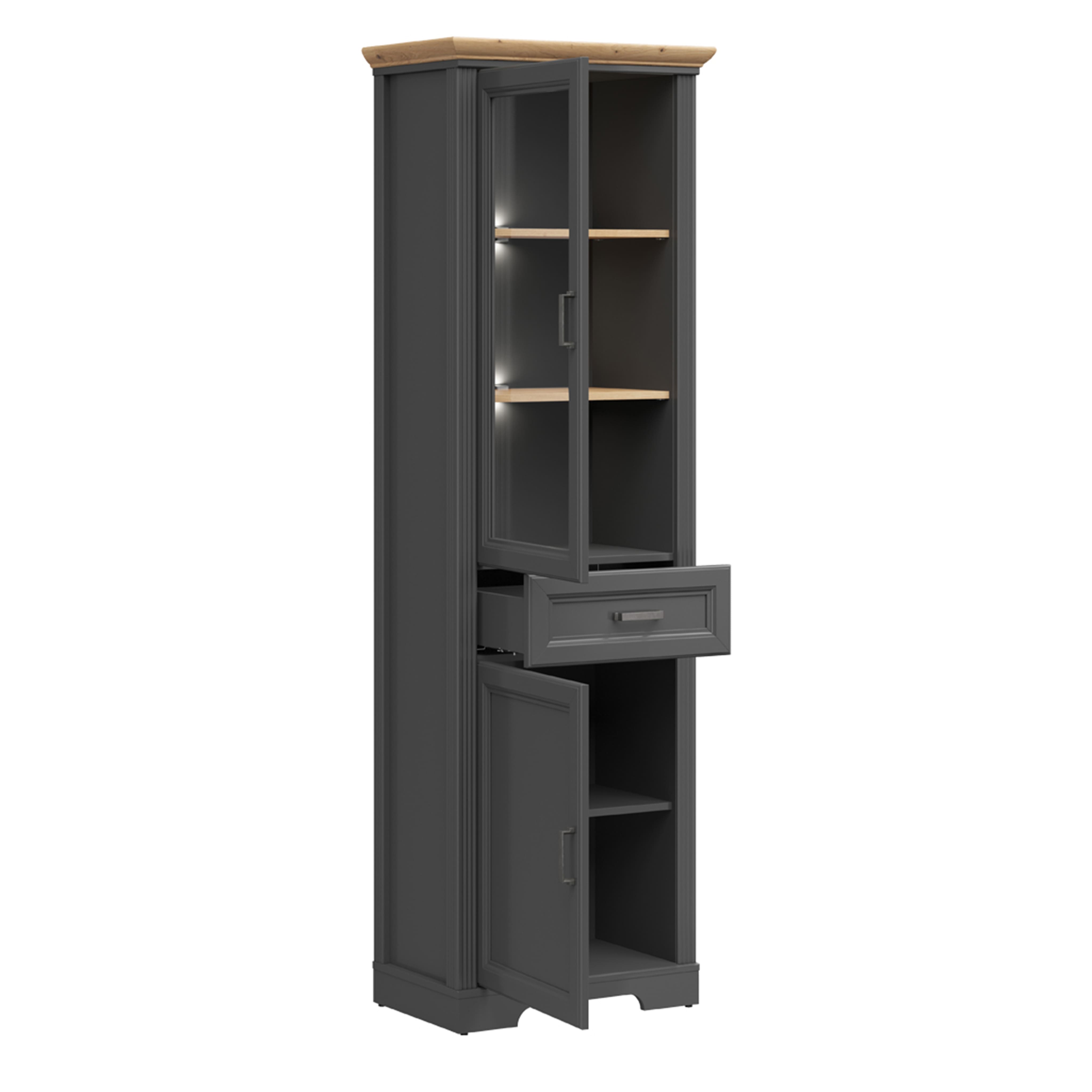 Н.м. "JASMIN" шкаф REG1W1D1S с подсветкой, к.Графит+Дуб артизан/ф.Графит