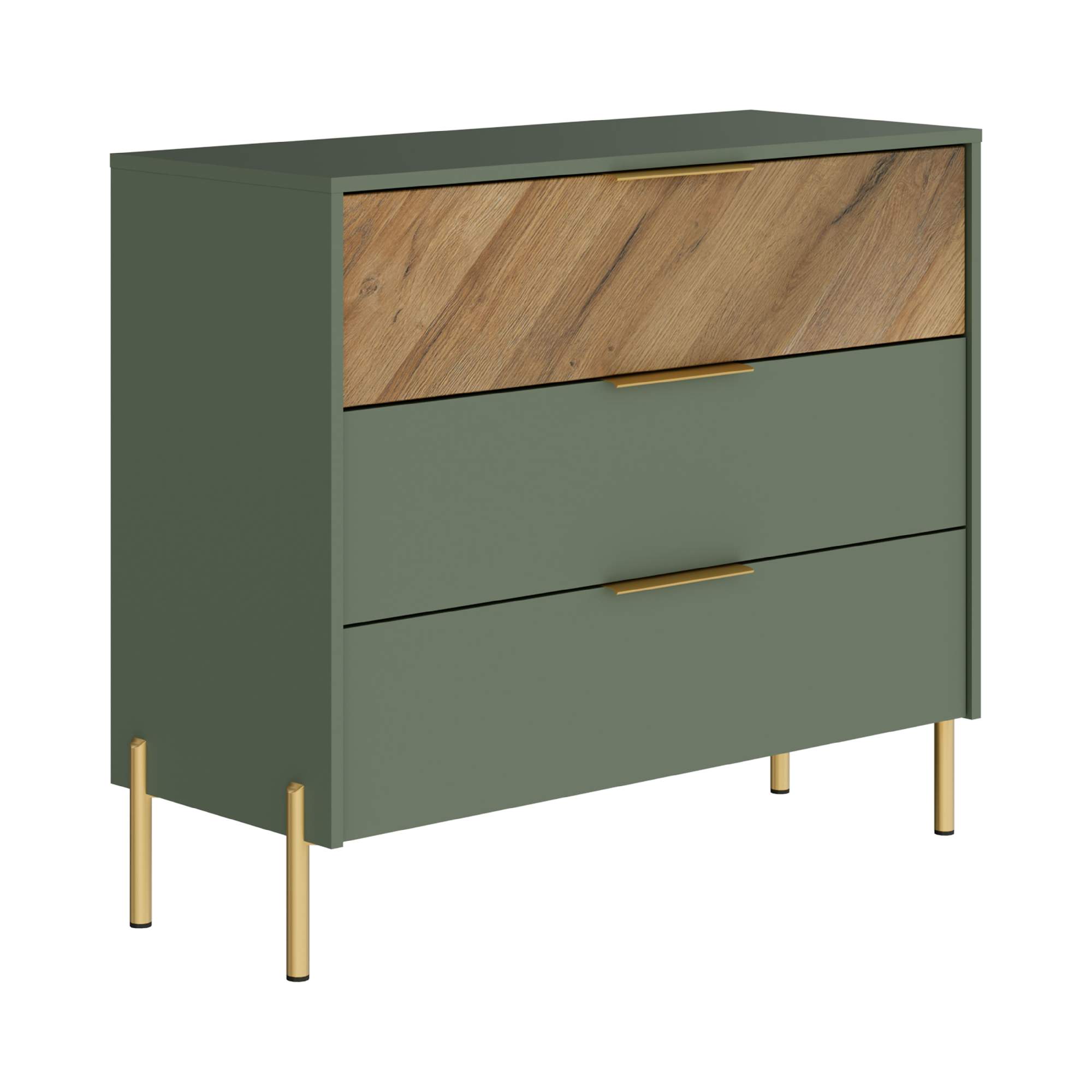 Н.м. "SIENA" комод KOM3S, к.Дымчатый зеленый/ф.Дымчатый зеленый+Дуб вотан