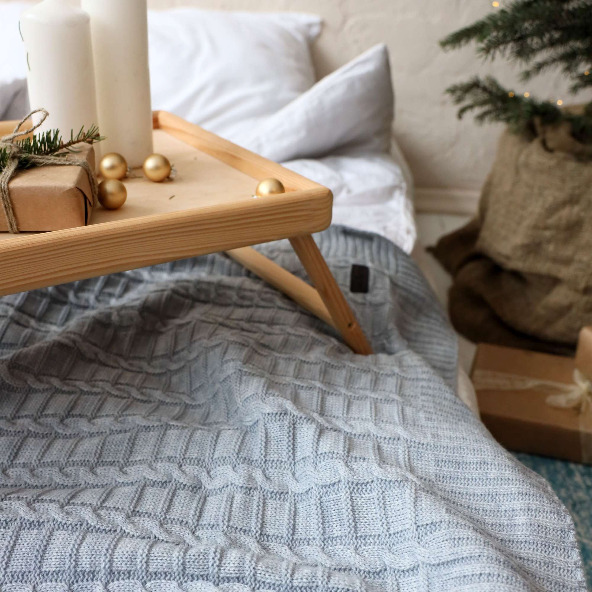 Наволочка вязаная "Косы" 40*40, цвет сумерки