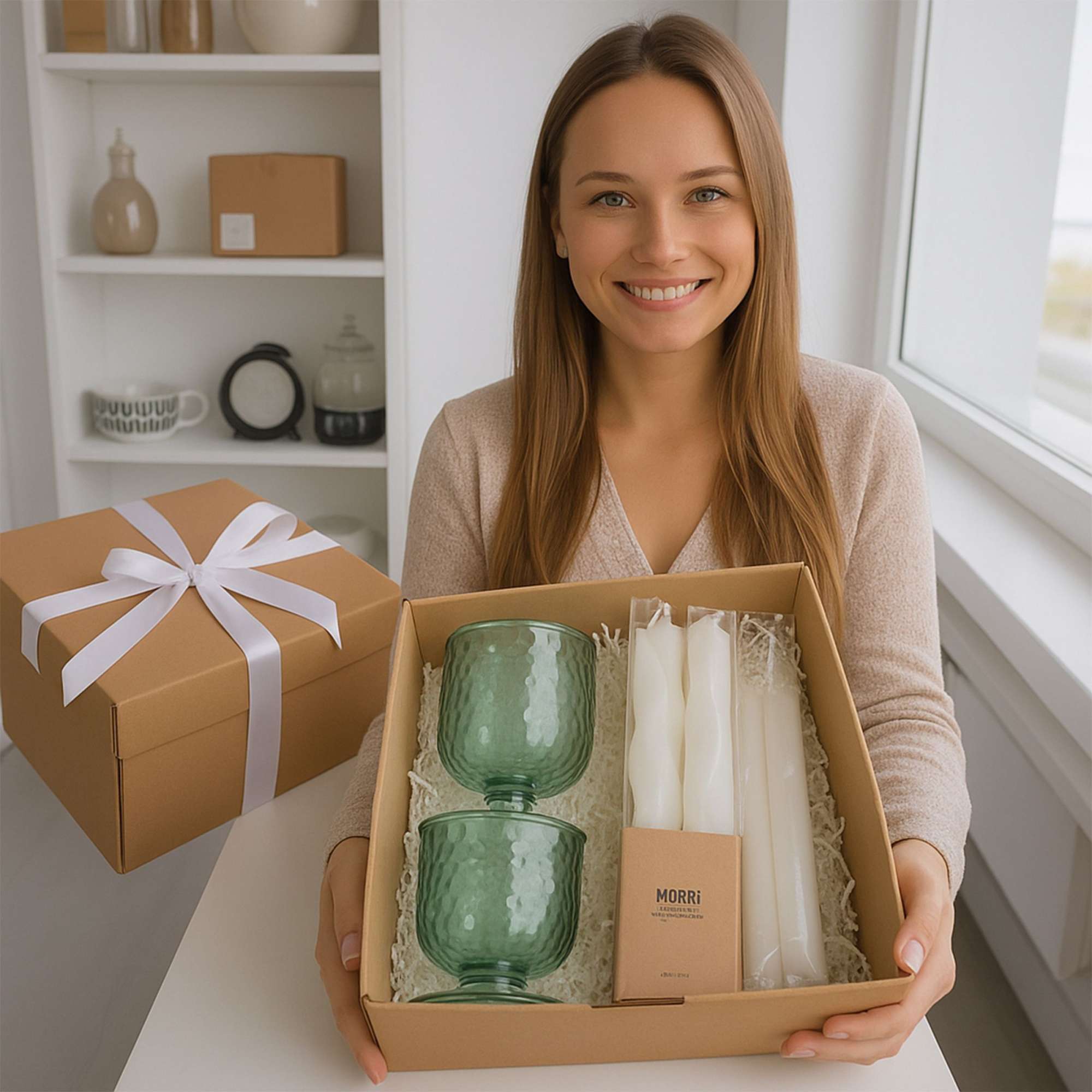 Подарочный бокс №1 (Бокал для коктейлей (2 шт.) + Набор свечей + Подарочная упаковка)