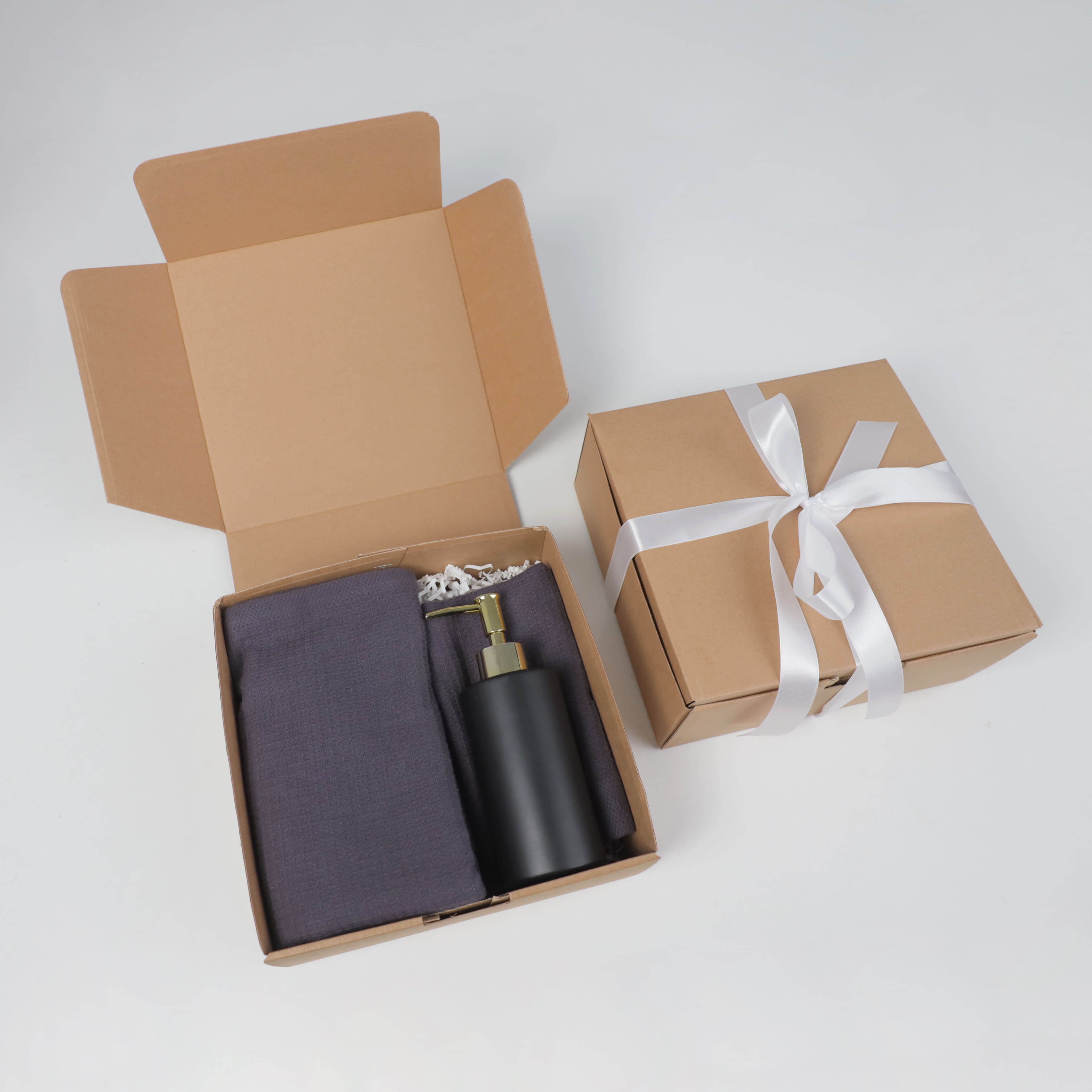 Подарочный бокс №3 (Полотенце вафельное (2 шт.) + Дозатор + Подарочная упаковка)