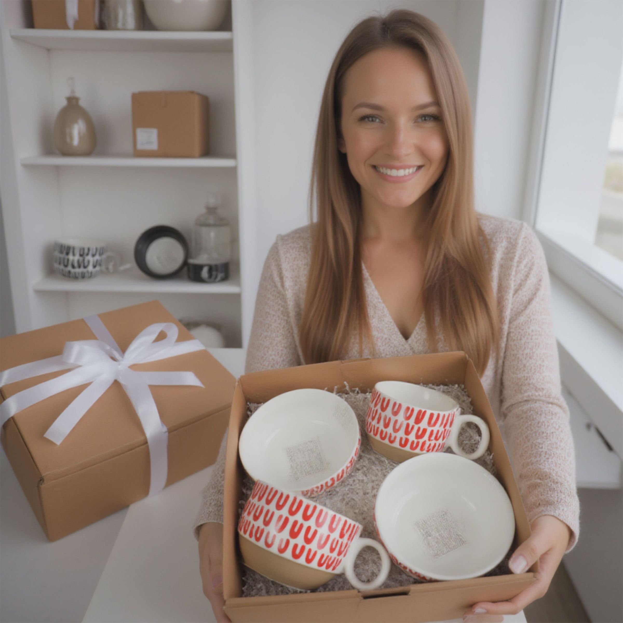 Подарочный бокс №6 (Чашка (2 шт.) + Миска-Боул (2 шт.) + Подарочная упаковка)