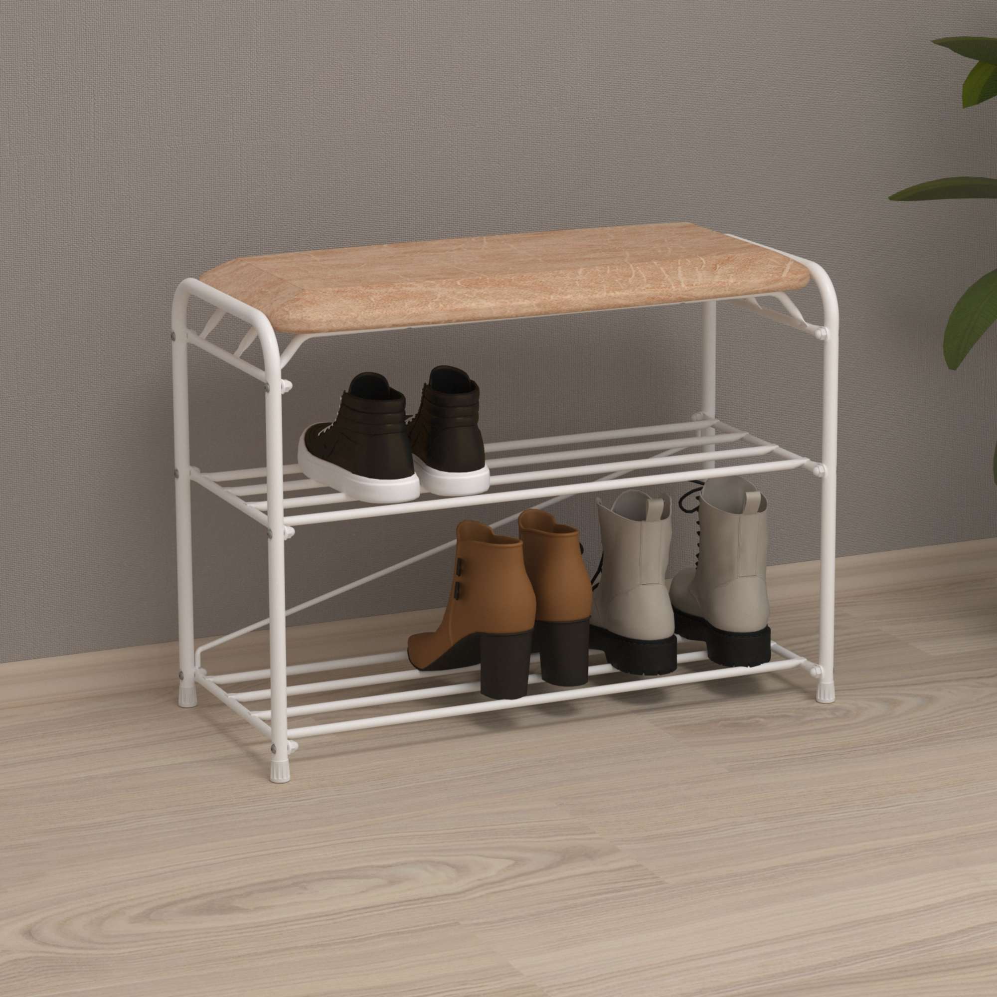 Подставка для обуви Альфа 23, с сиденьем (белый)