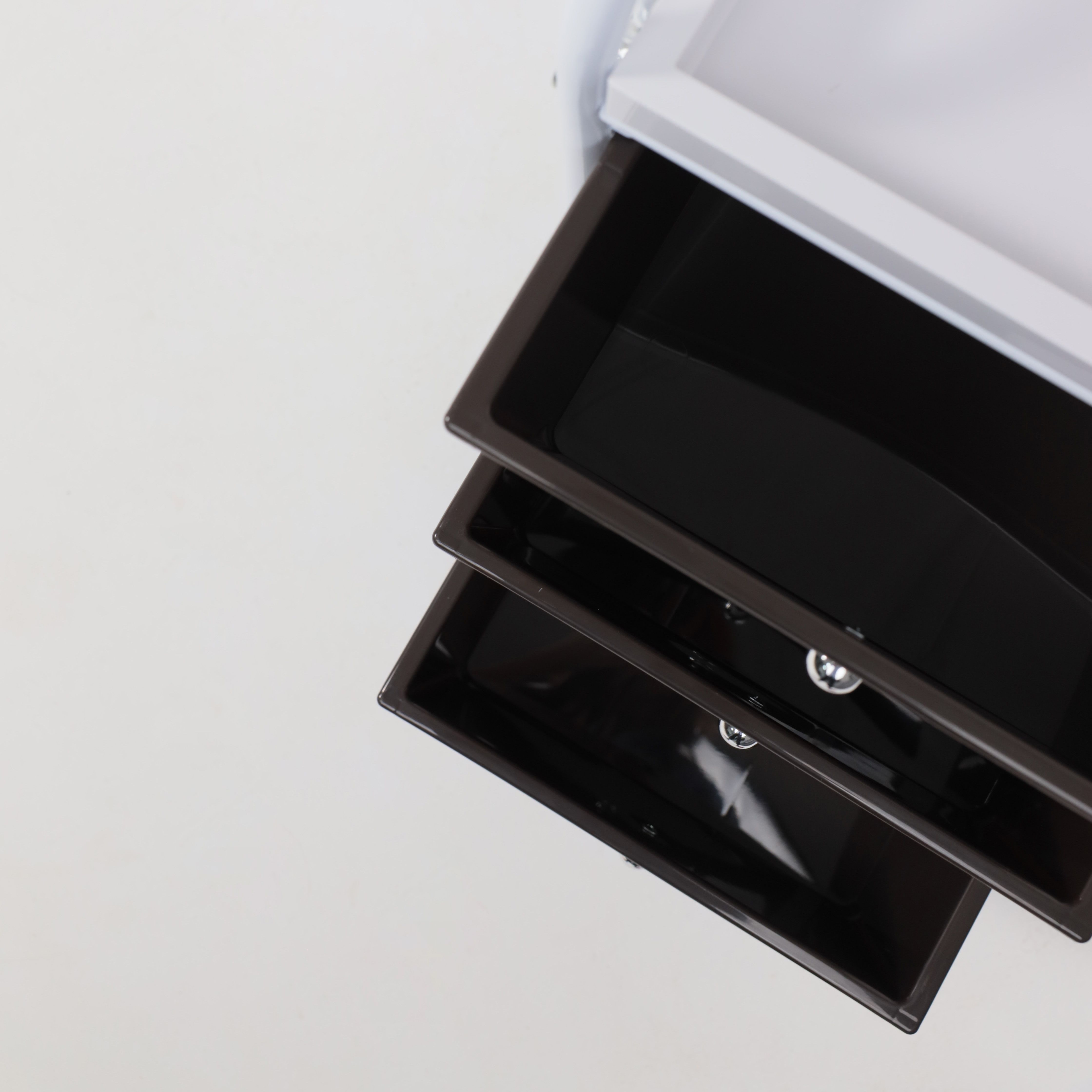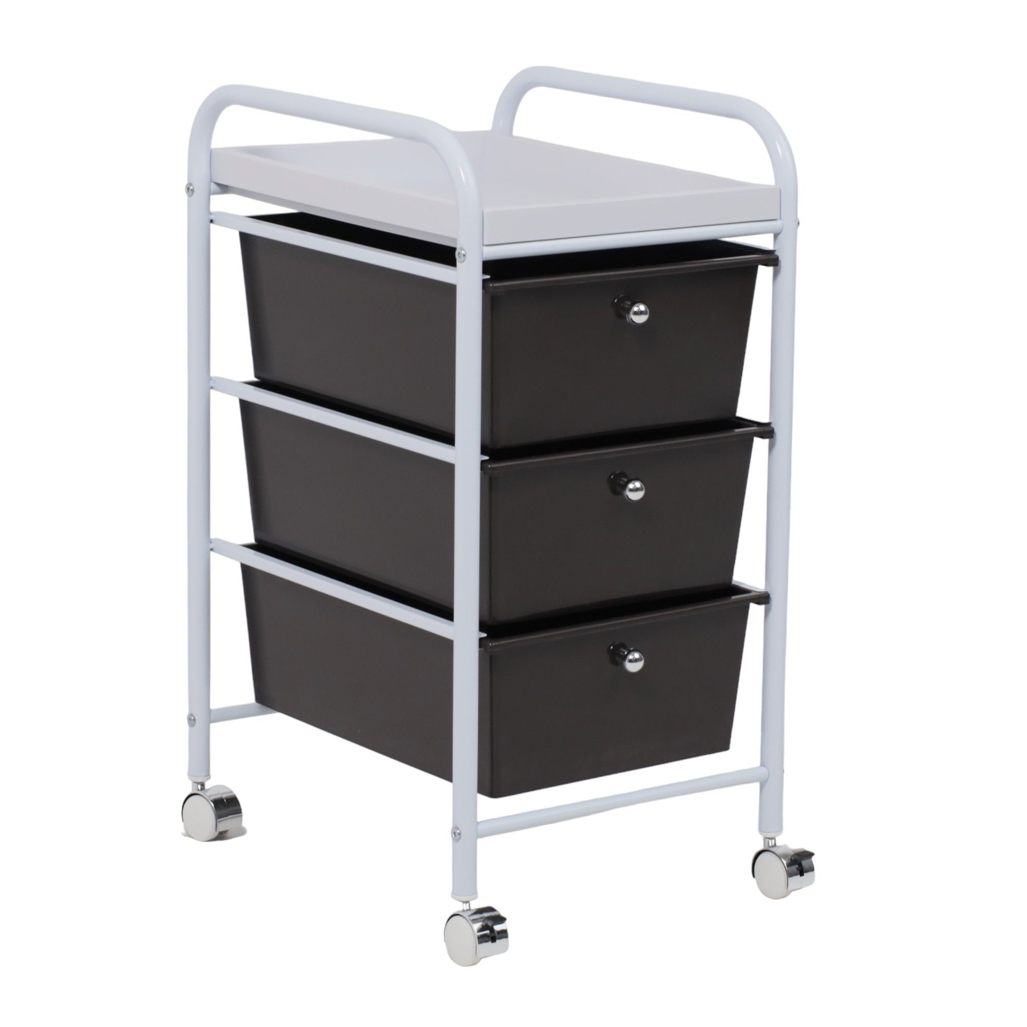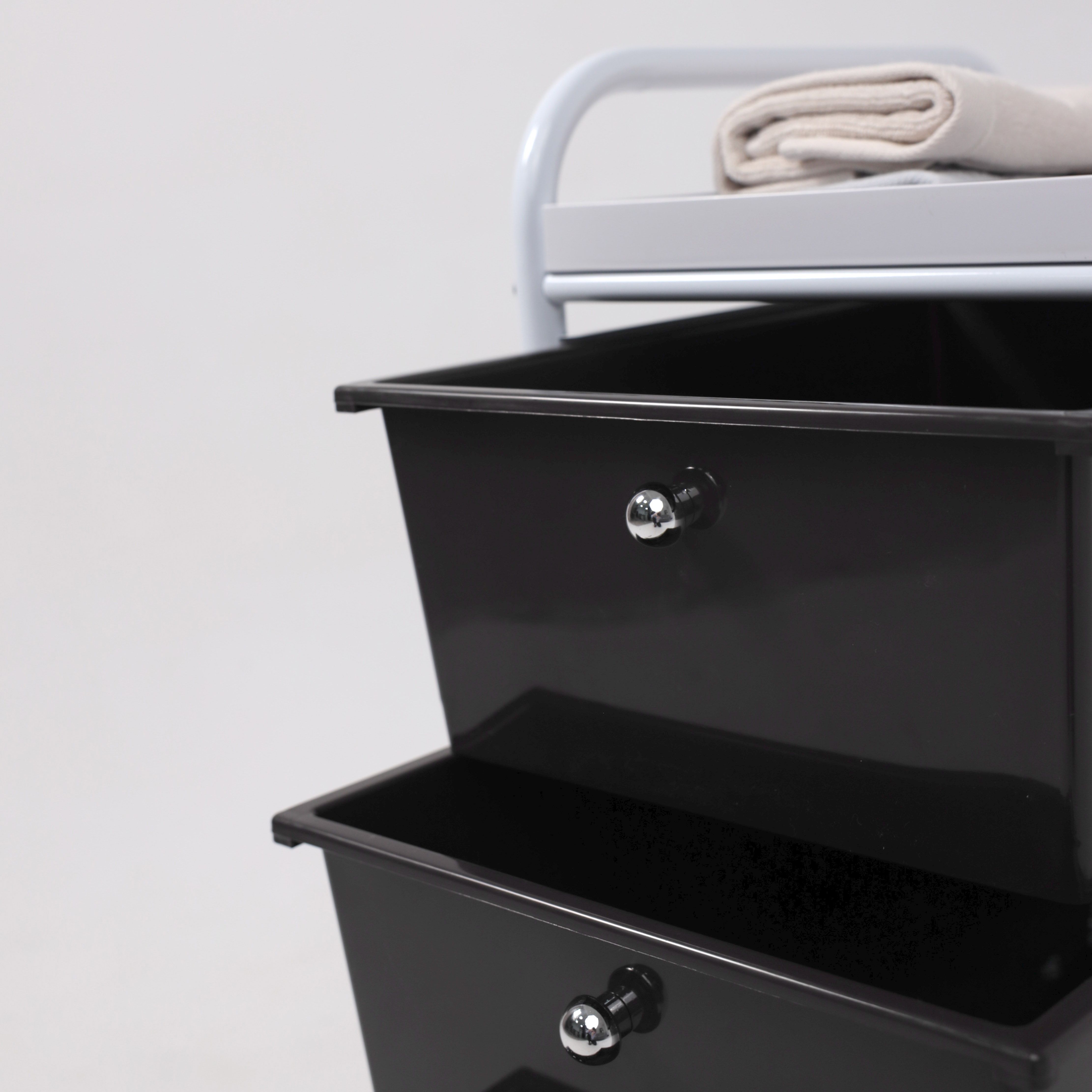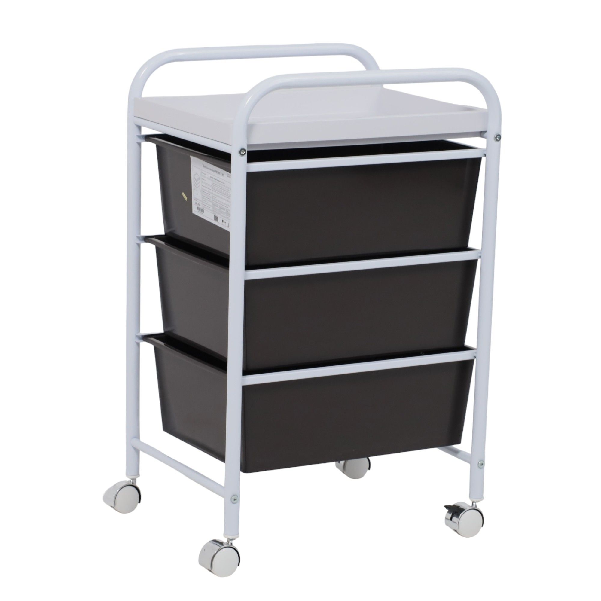 Полка-тележка MERCURY – компактный и вместительный предмет интерьера. Будет полезен в любом комнатном пространстве: в ванной, детской, спальне, прихожей, рабочем кабинете. Также пригодится в салонах красоты, гостиницах. Полка-тележка имеет несколько секций для хранения: 3 удобных ящика и верхнюю полка из АТS пластика. Основание тележки изготовлено из металла. Наличие колесиков позволяет легко перемещать тележку в удобную для Вас локацию. Размеры тележки: ширина 330 мм., глубина 400 мм., высота 660 мм. Размеры ящика: ширина 290 мм, глубина 390 мм, высота 140 мм.