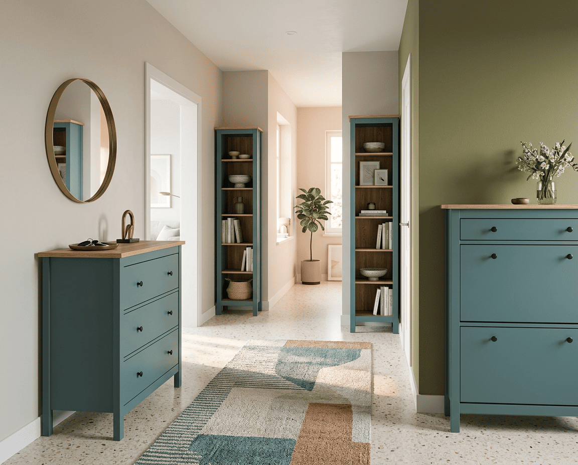 Прихожая Сага, ясень + темно-бирюзовый. Комплект №3