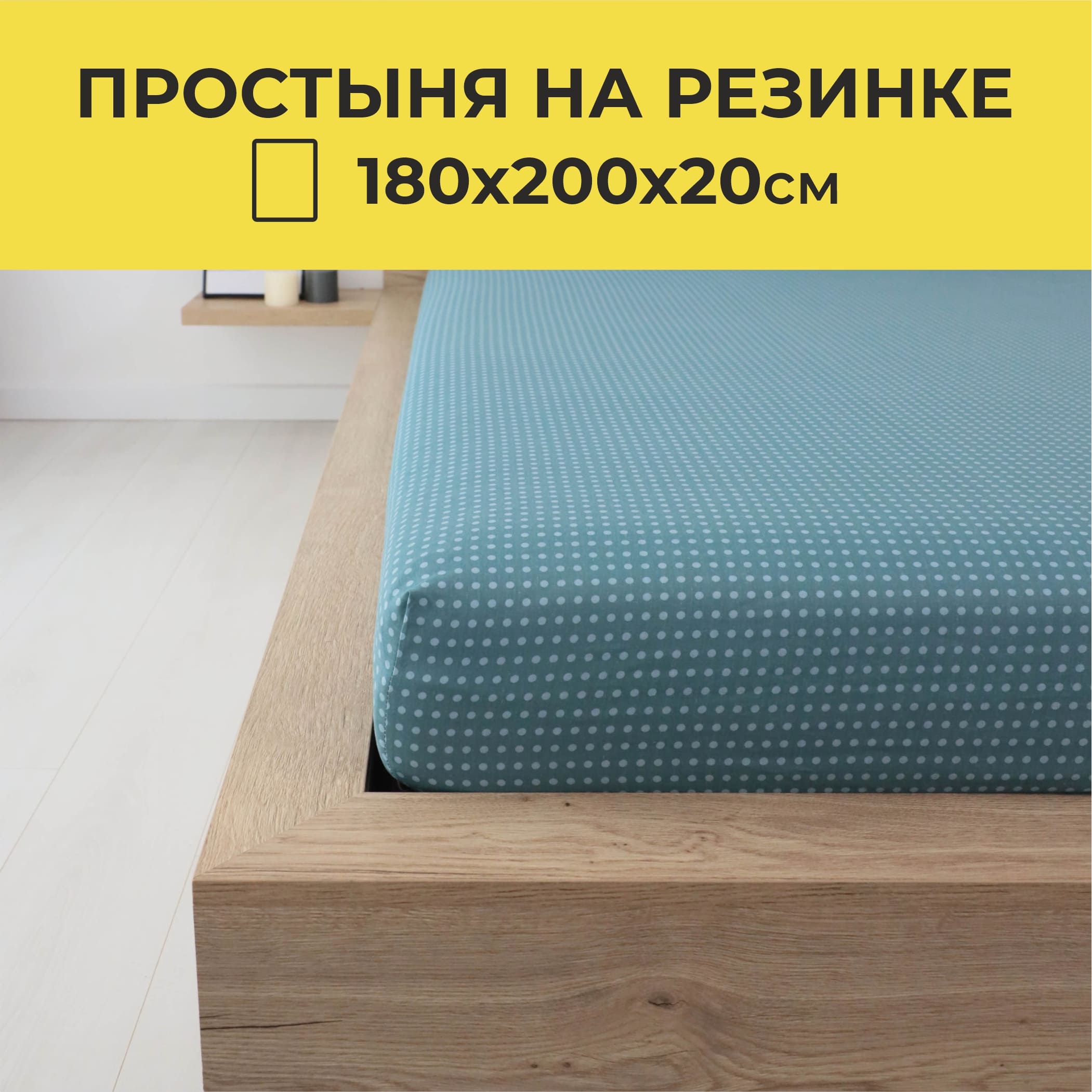 Простыня на резинке 180*200*20 см Зелёный горошек IM1025 (поплин)