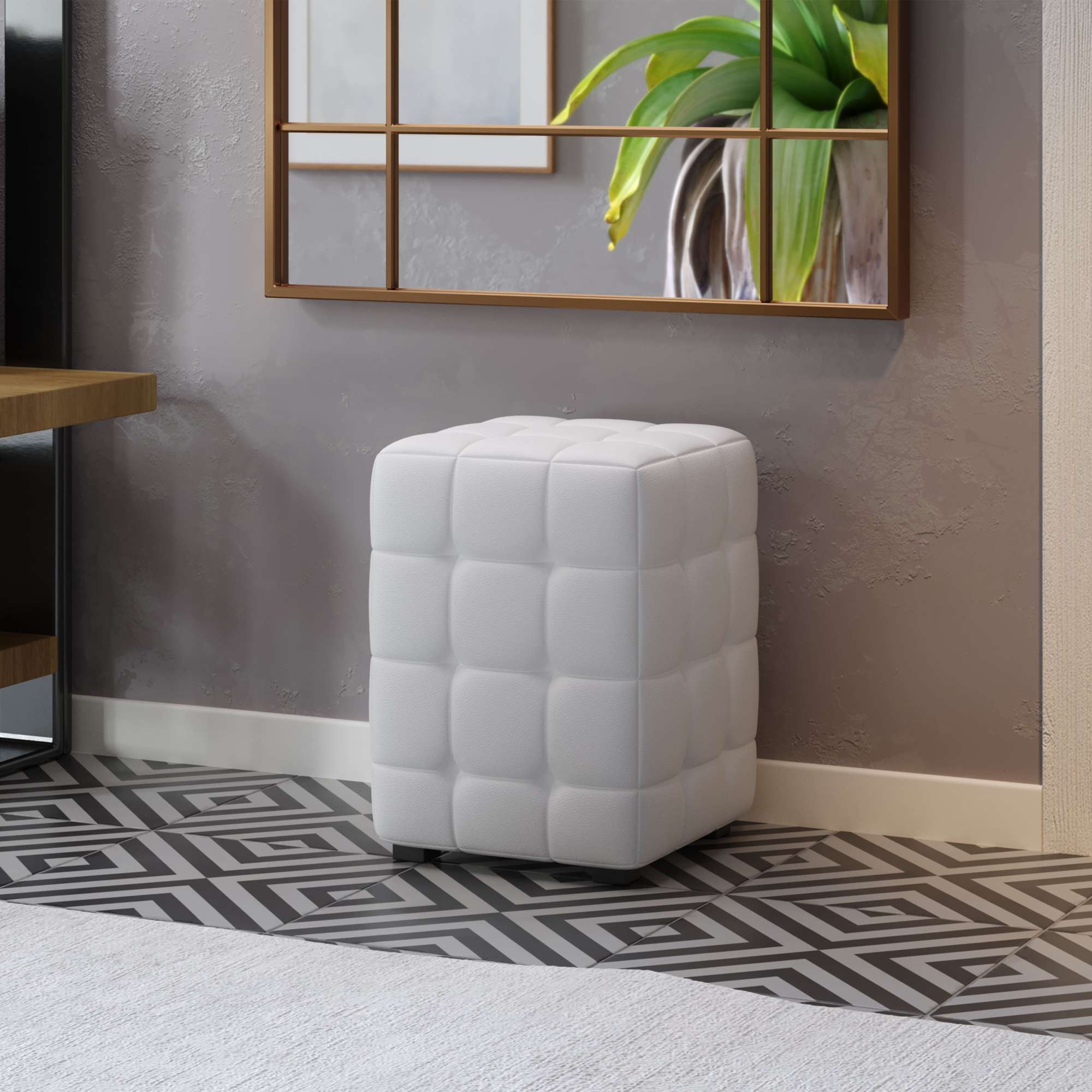 Пуф АРИСТО, кожзам белый, 300х300х400