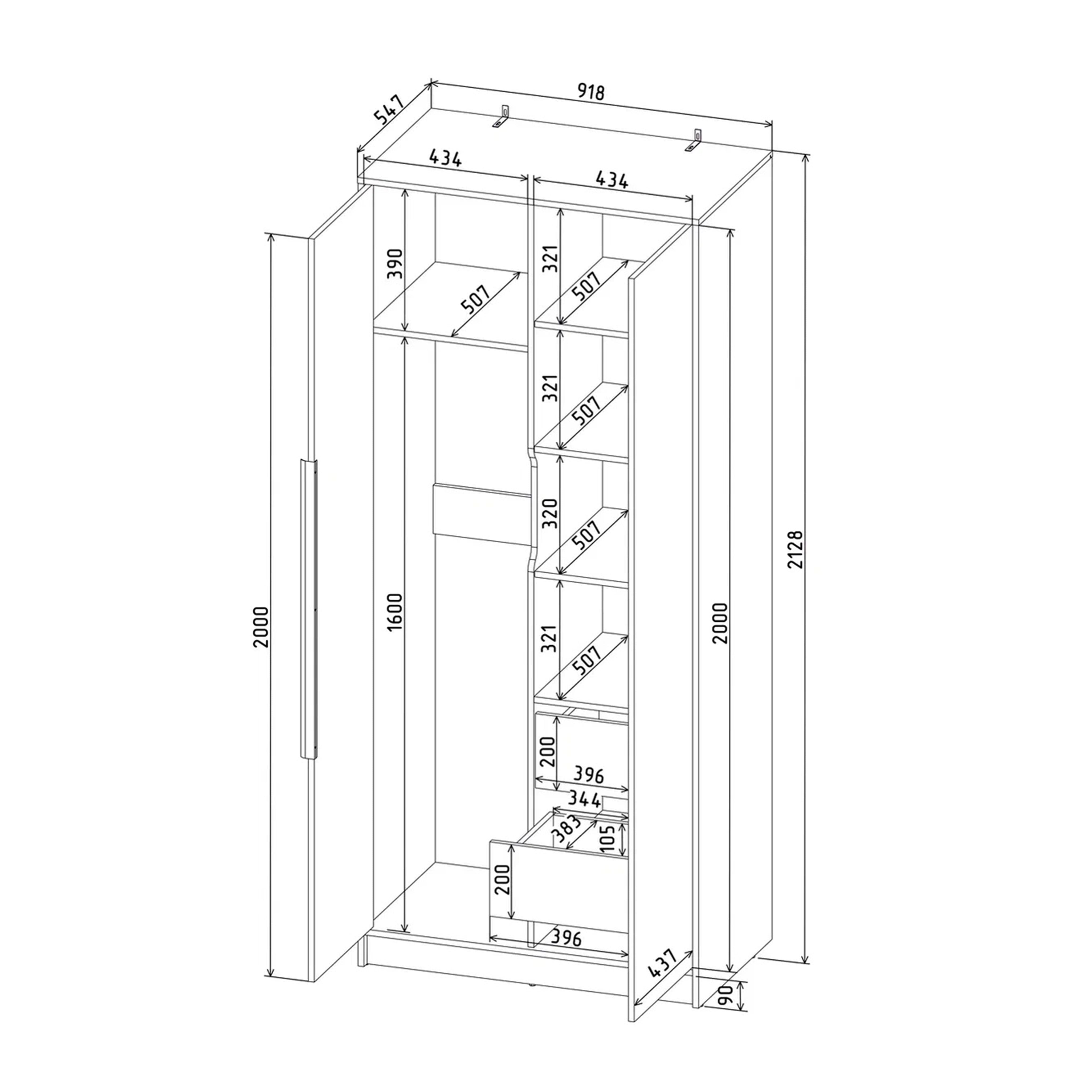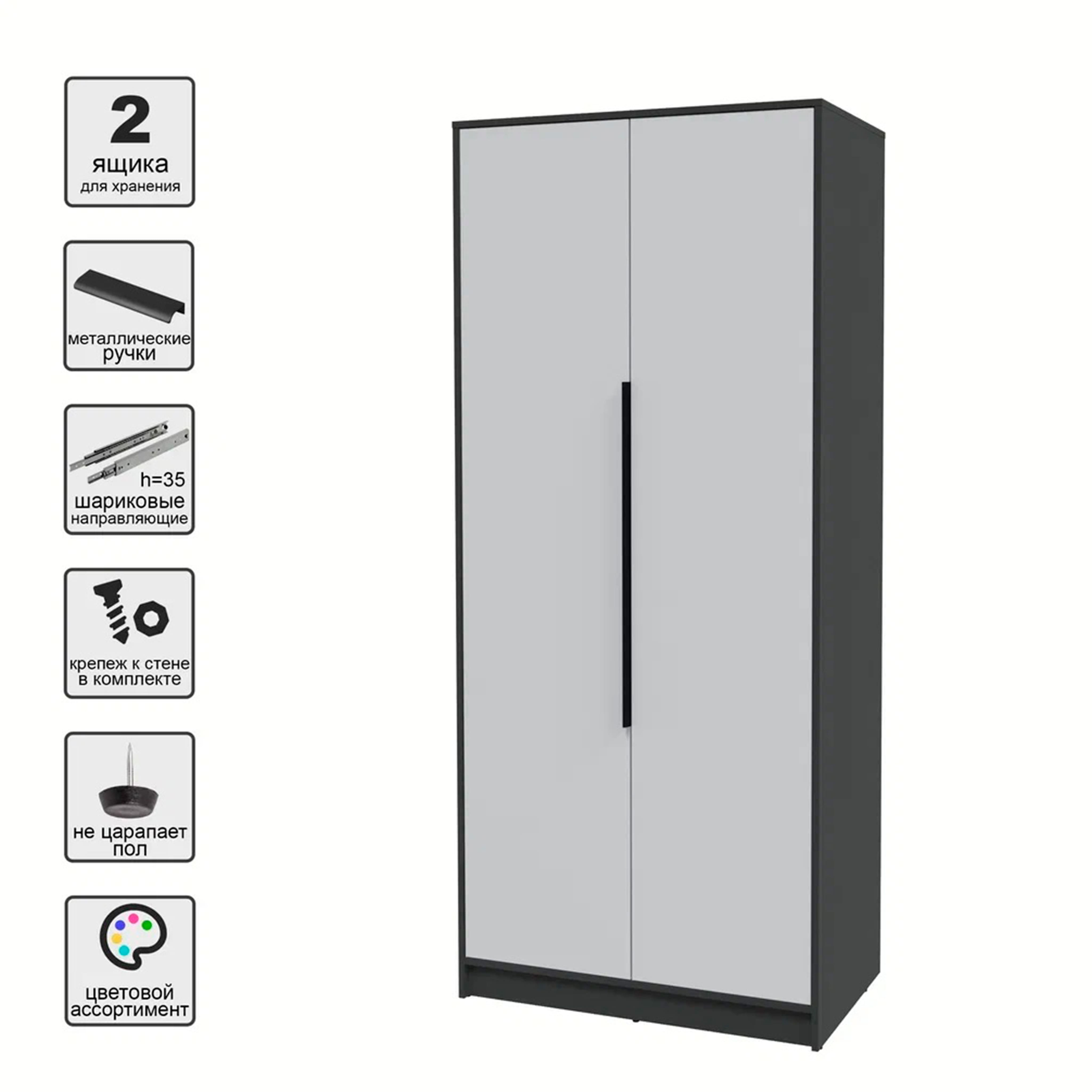 Шкаф КОНЦЕПТ КТ-Ш2, к.Антрацит/ф.Серый (В2128хШ918хГ547мм)