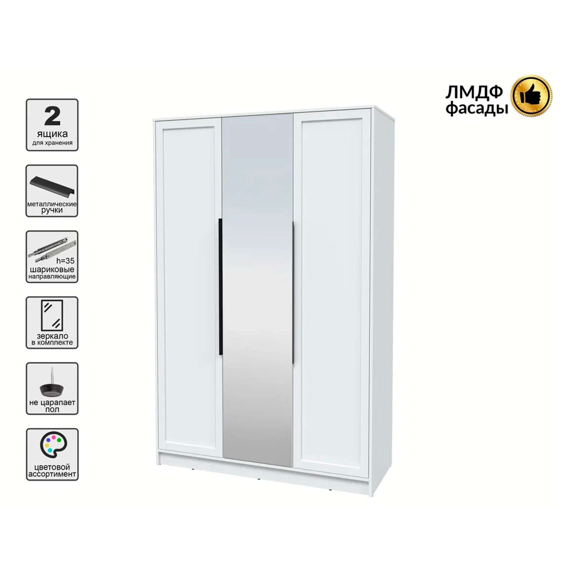 Шкаф КОНЦЕПТ Тренд КТ-Ш3(з), к.Белый/ф.Белый (В2128хШ1360хГ547мм)
