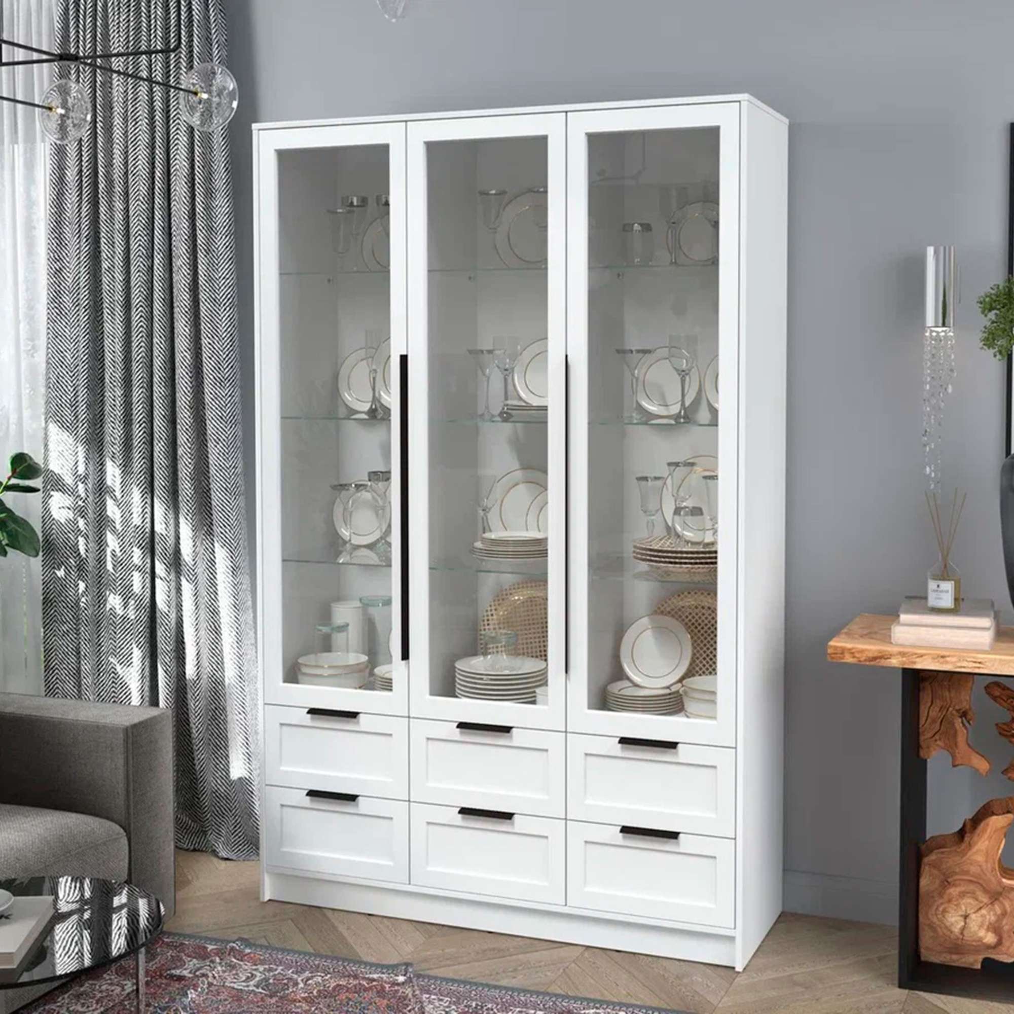Шкаф с витриной КОНЦЕПТ Тренд КТ-ШВ3, к.Белый/ф.Белый (В2128хШ1360хГ547мм)