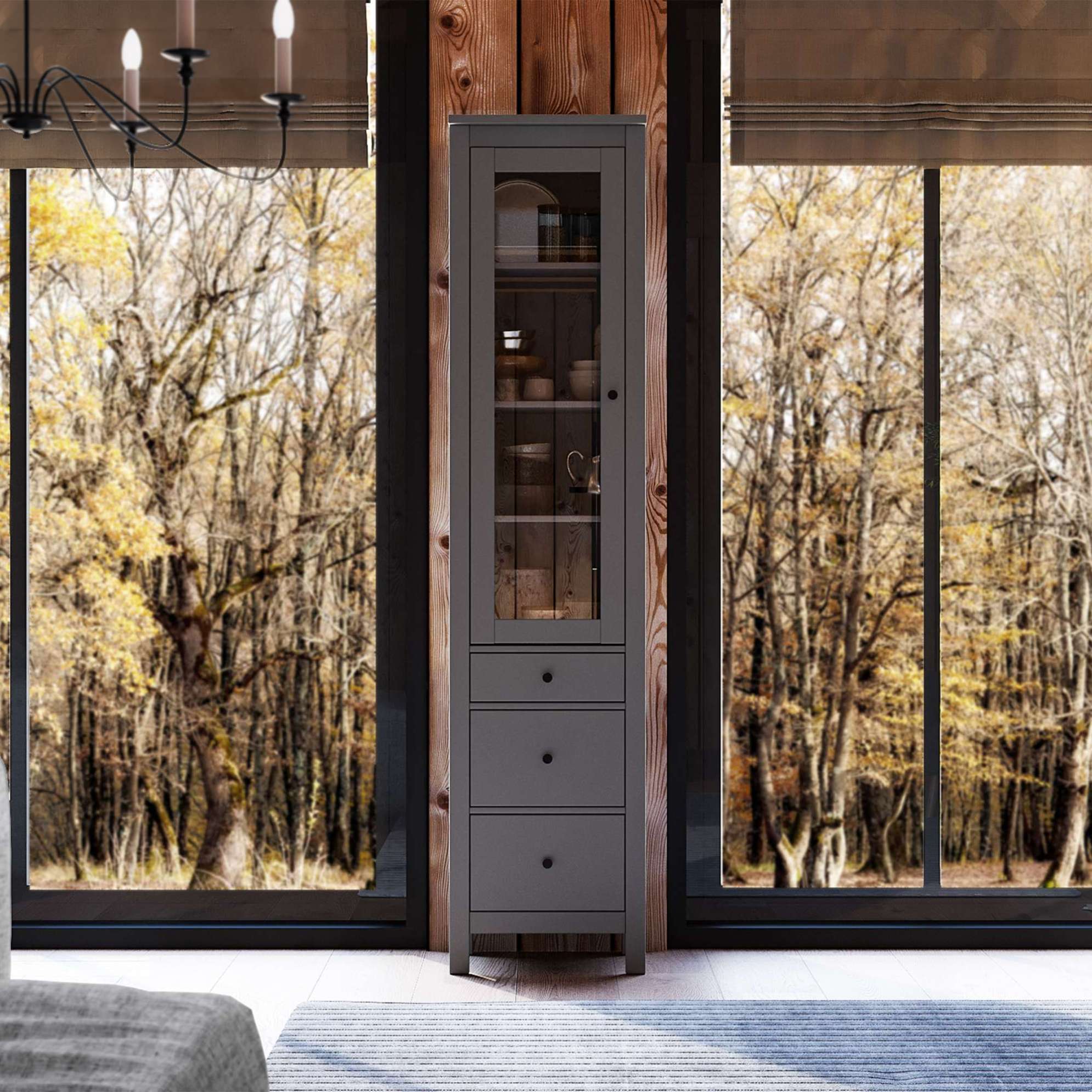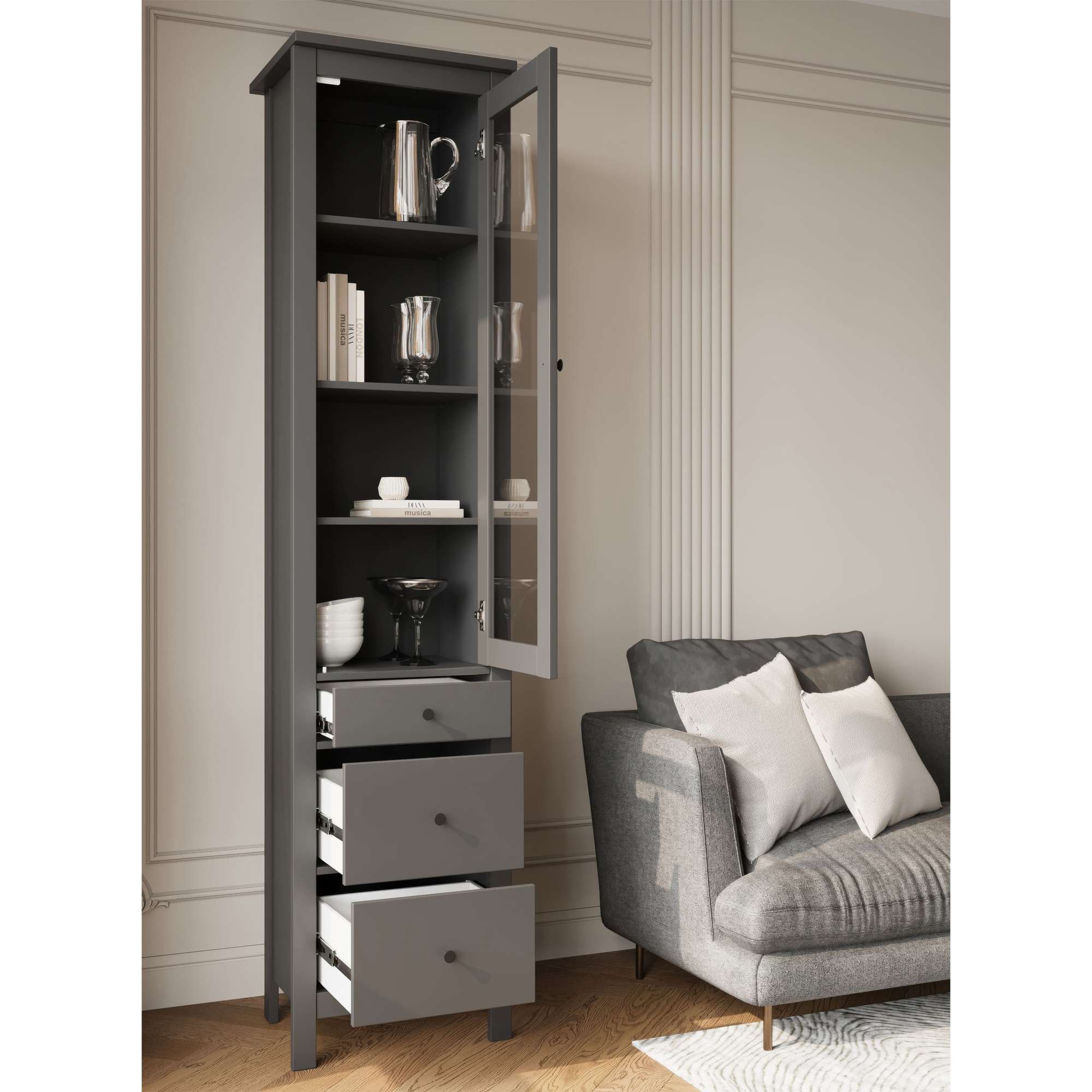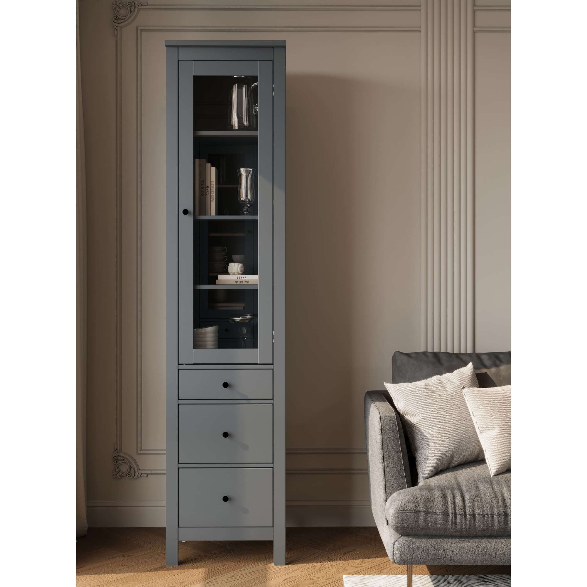 Шкаф с витриной САГА 50 МОРУ, серый (2.08.16.240.4 RU)