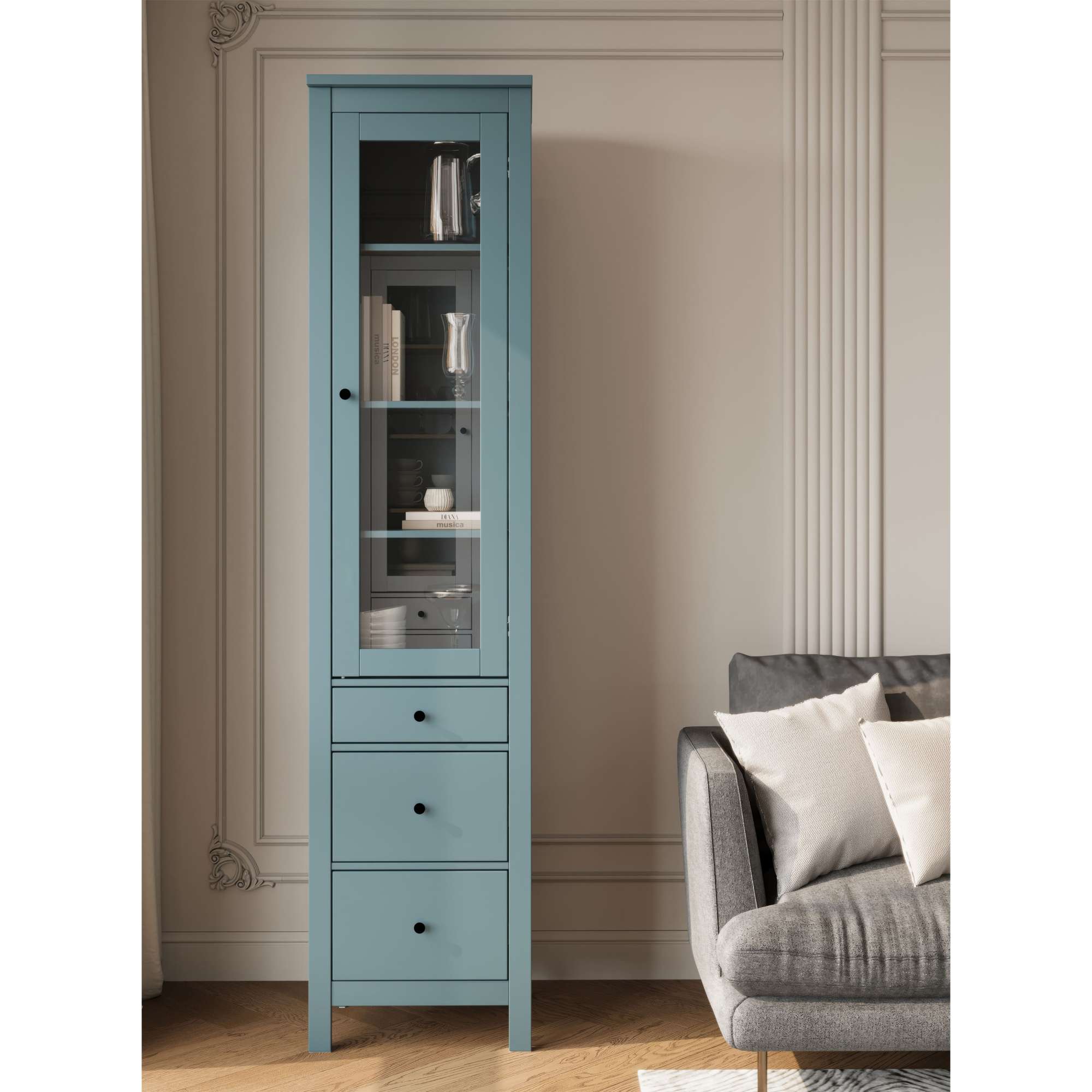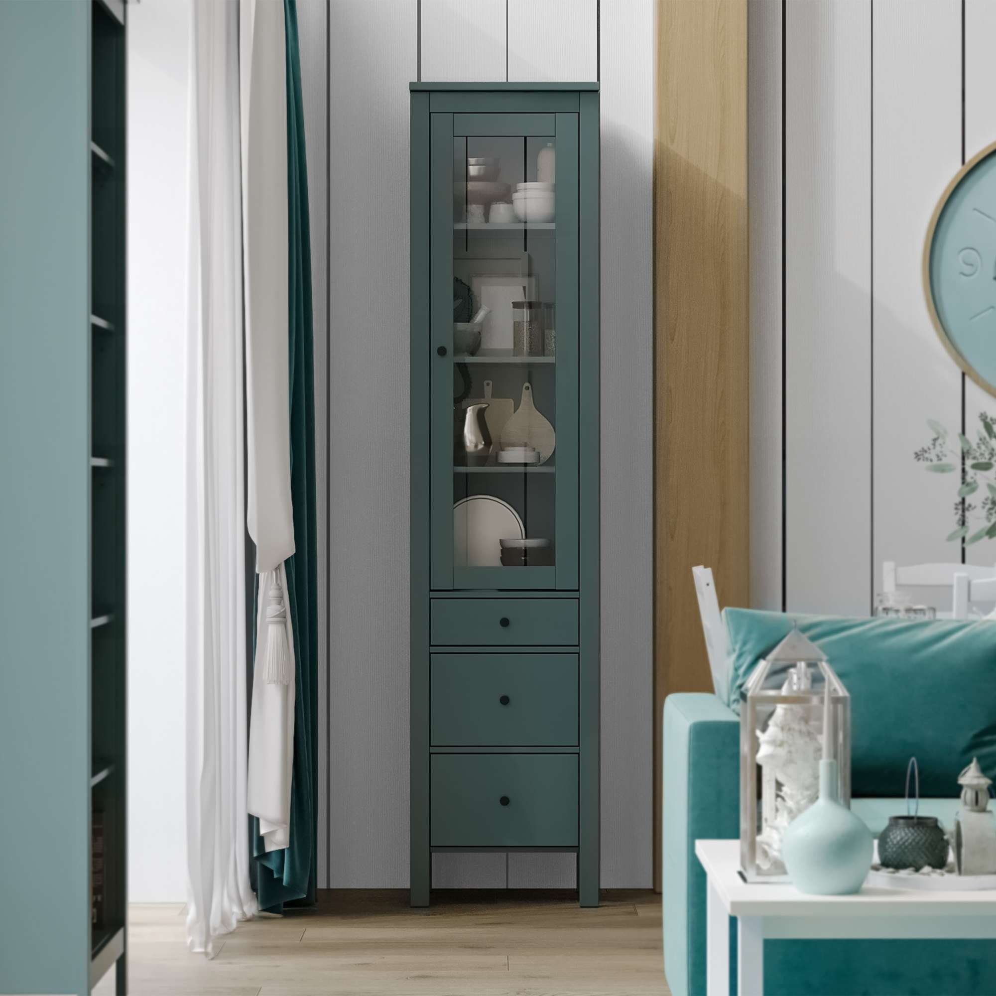 Шкаф с витриной САГА 50 МОРУ, темно-бирюзовый (2.08.16.240.6 RU)