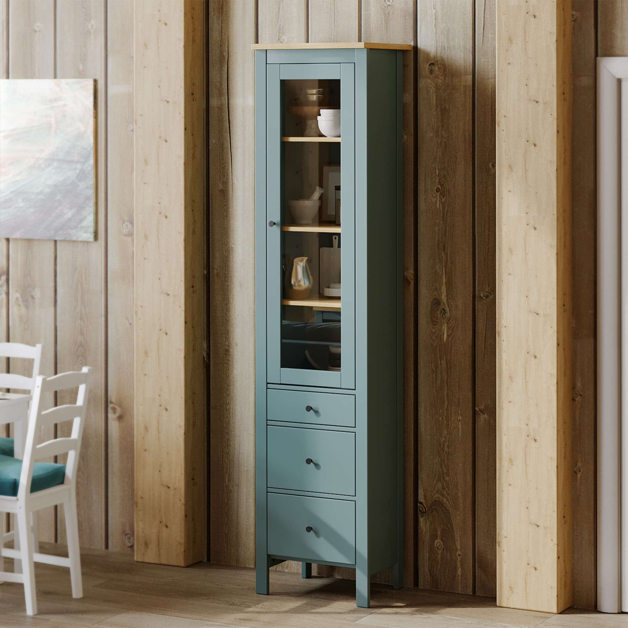 Шкаф с витриной САГА 50 МОРУ, темно-бирюзовый/ясень (2.08.16.240.16 RU)