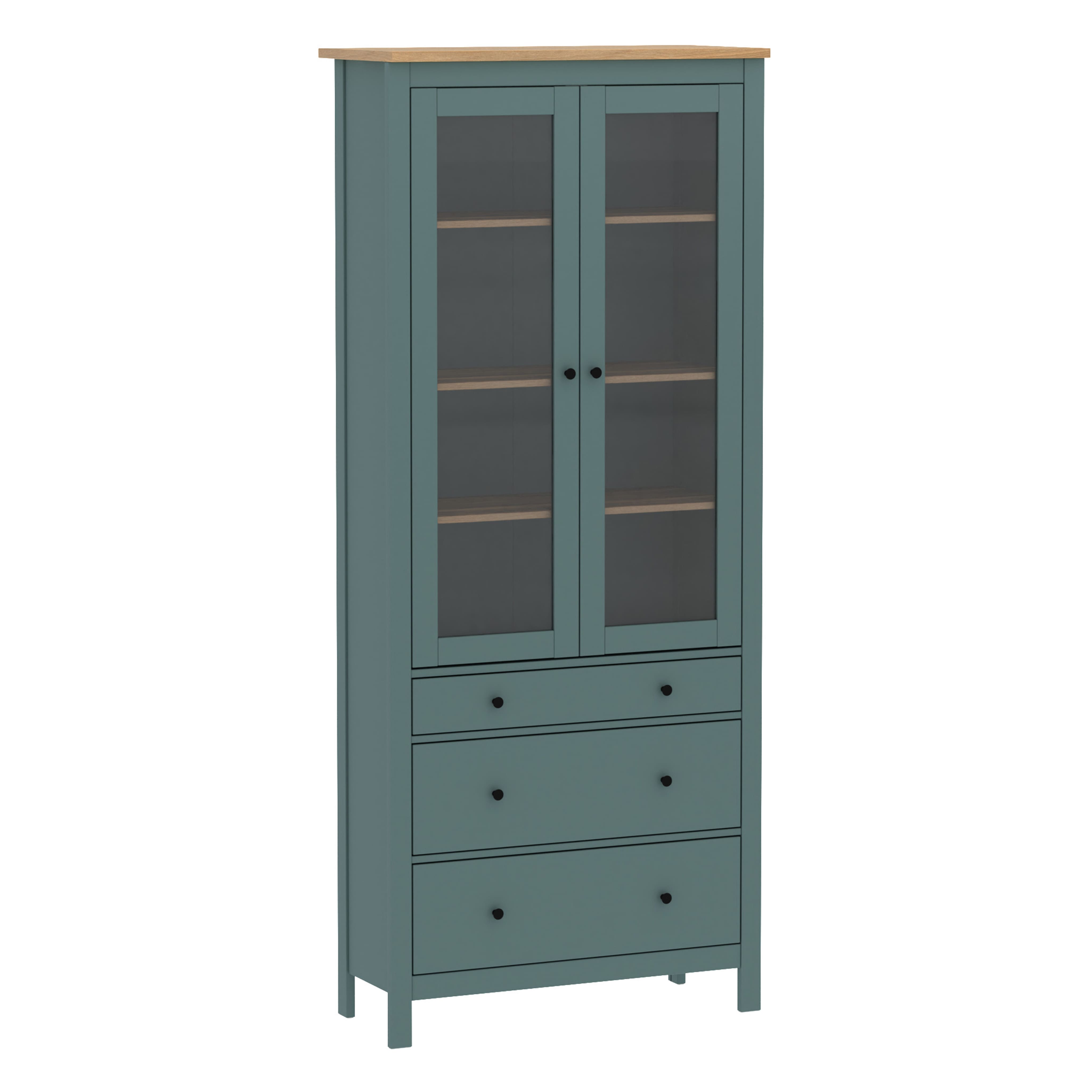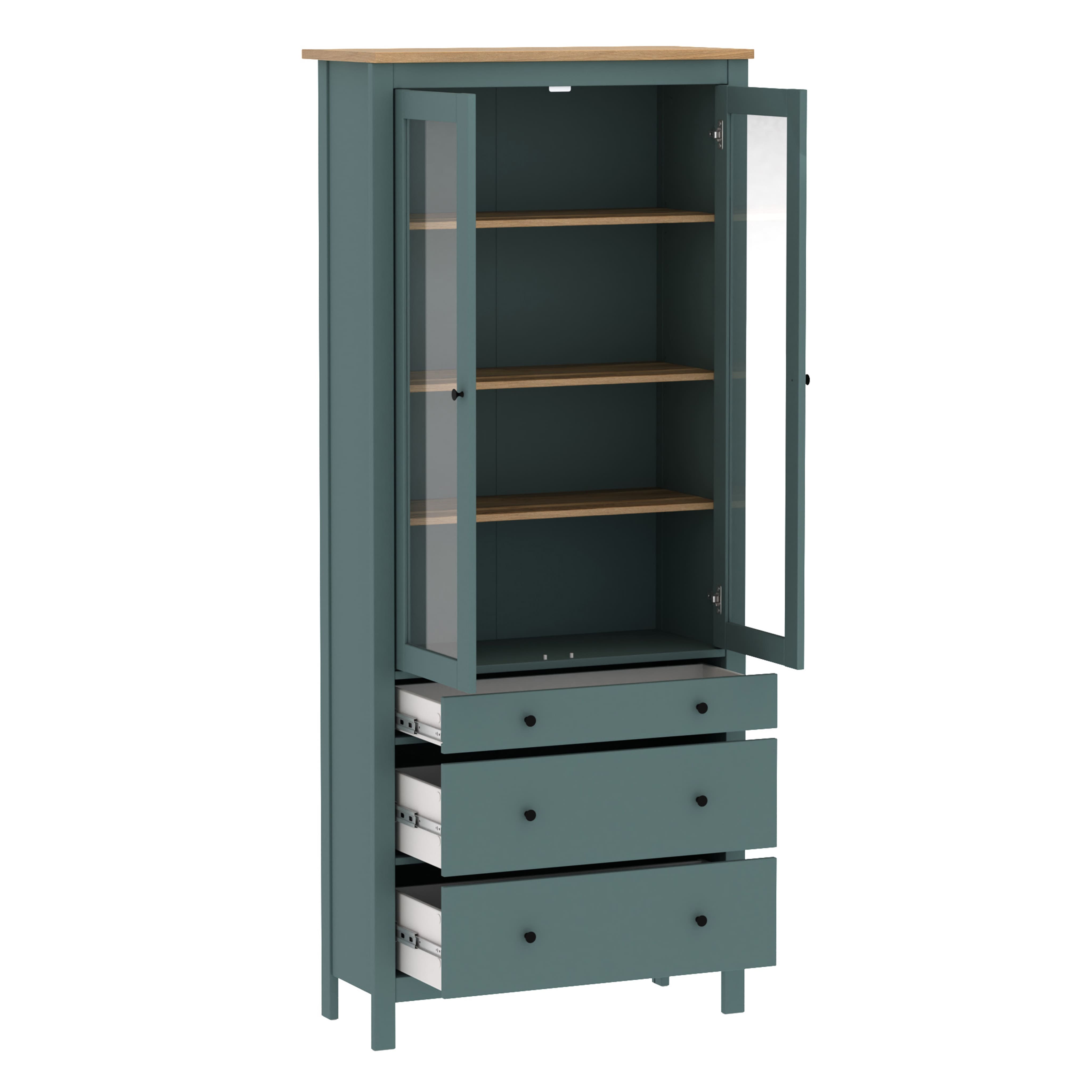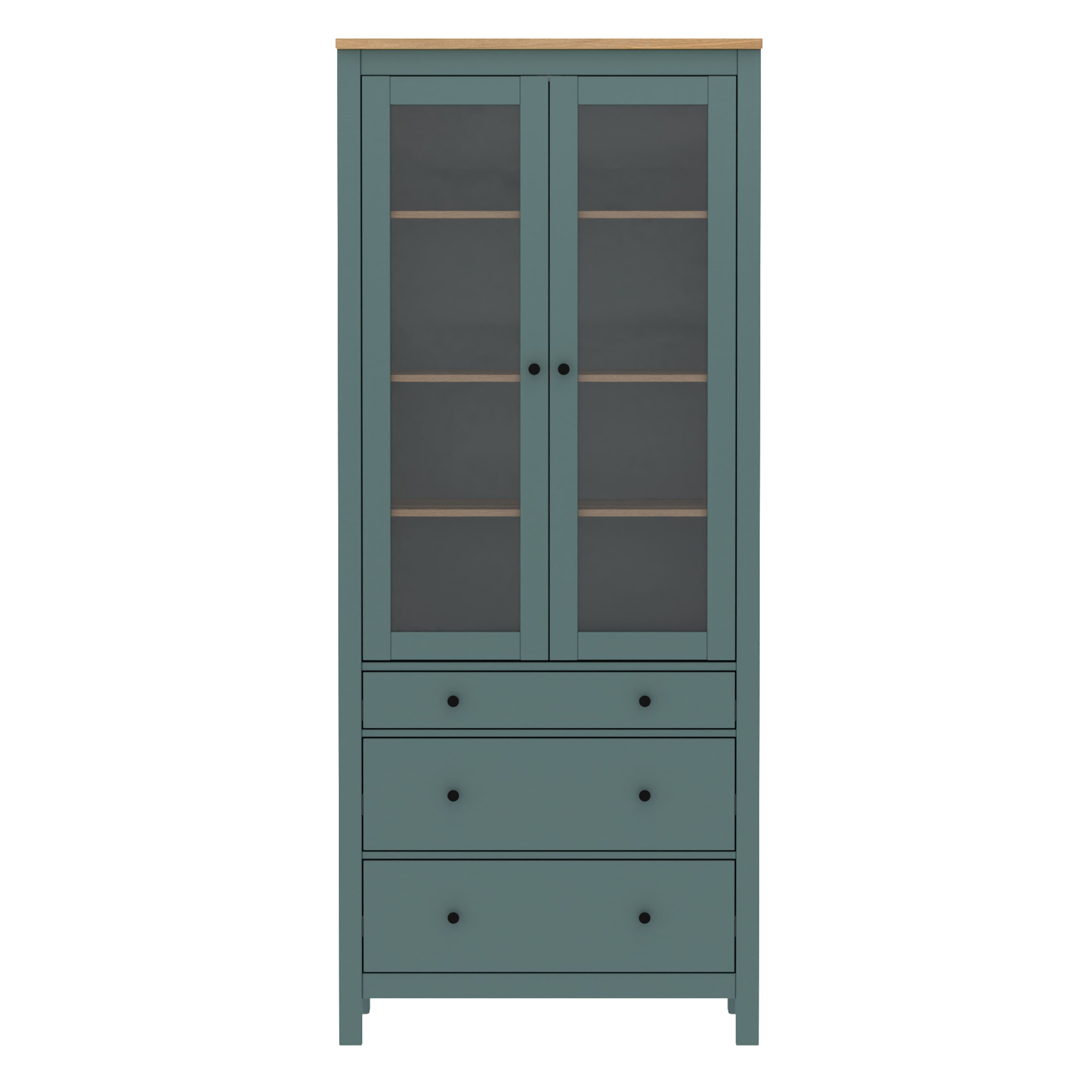 Шкаф с витриной САГА 90, темно-бирюзовый/ясень (2.08.07.130.16 RU)