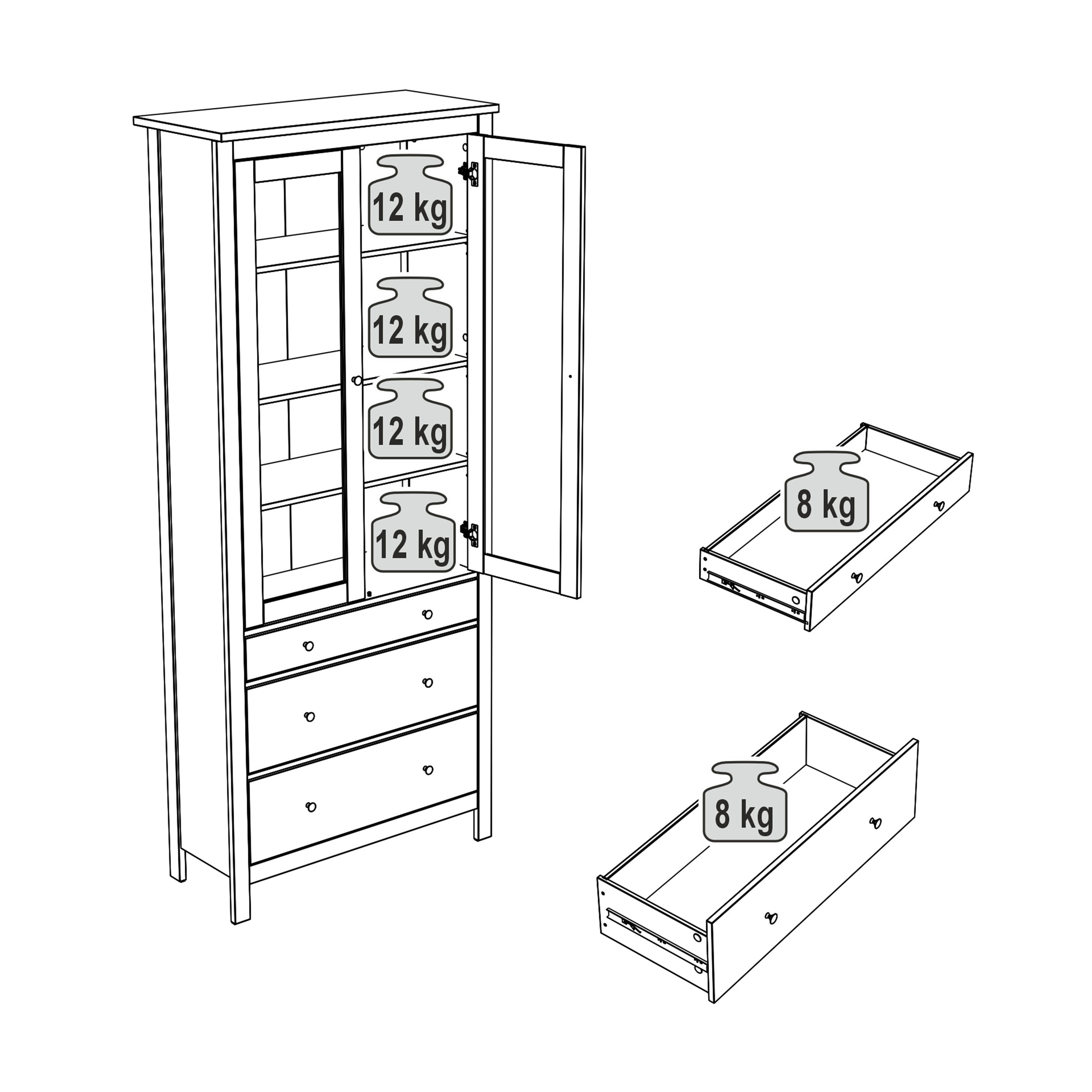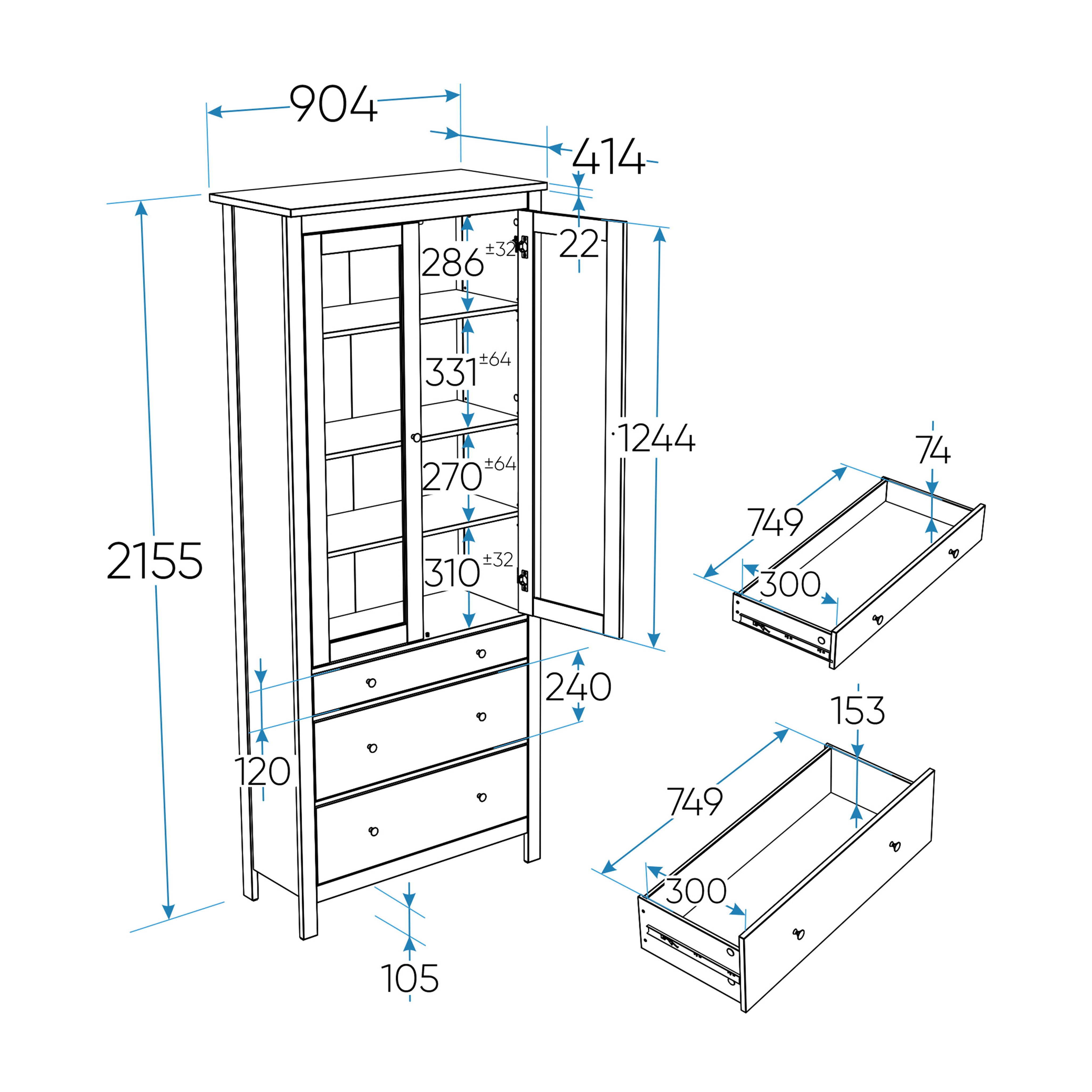 4 полки, 3 ящика