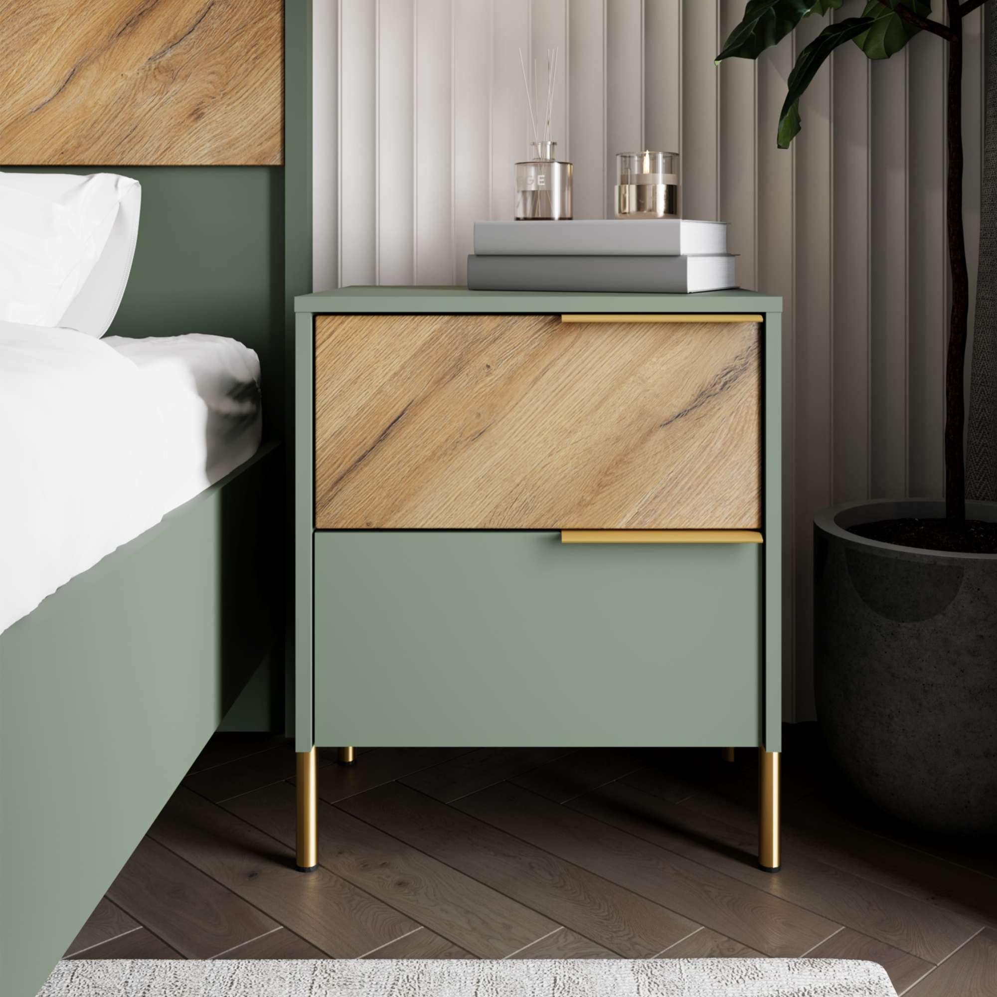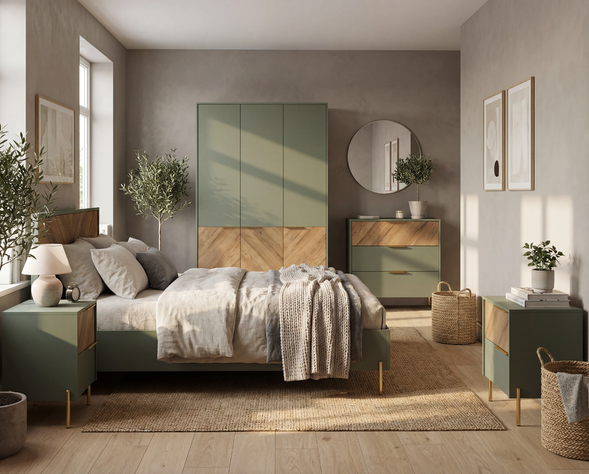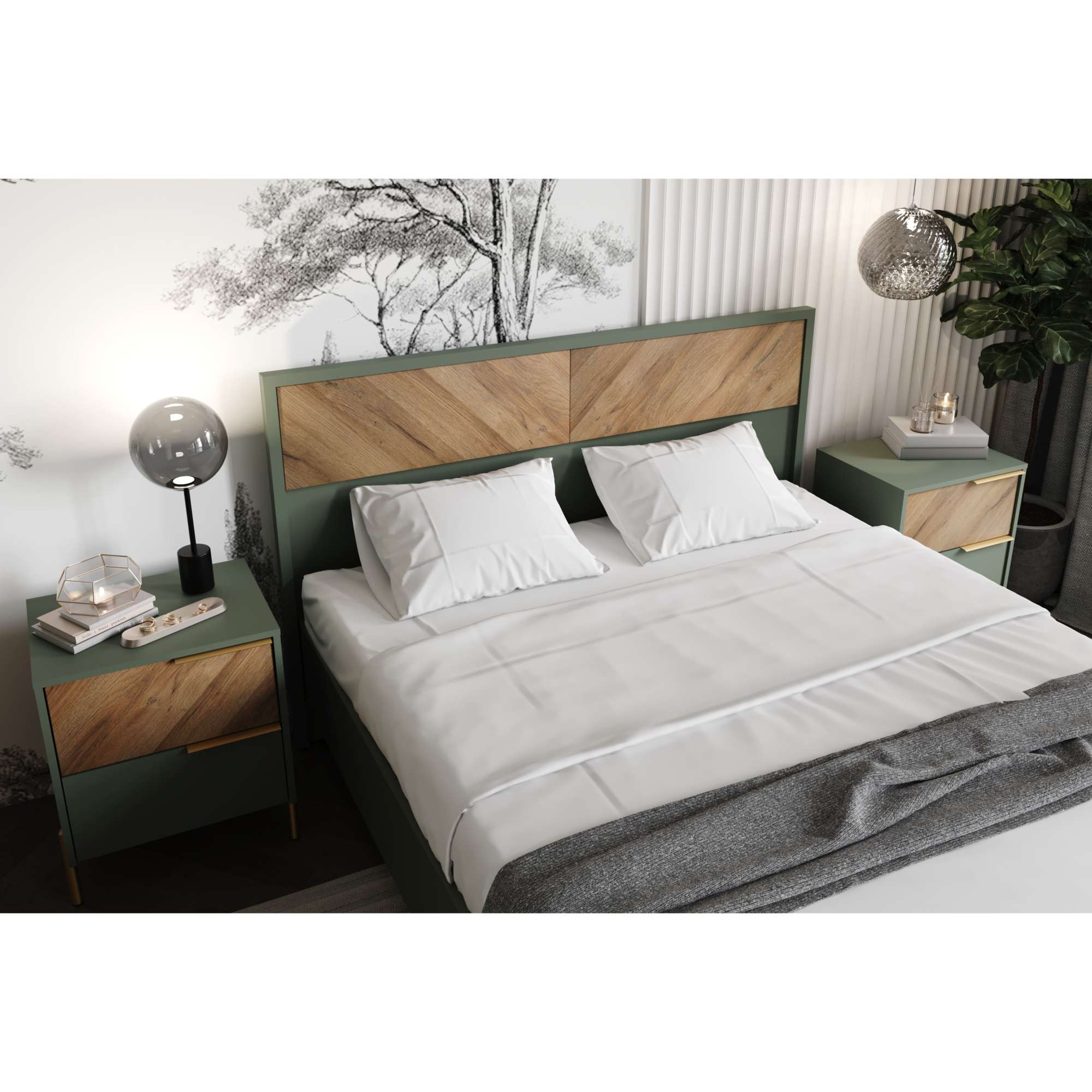 Спальня "SIENA", дымчатый зеленый + дуб вотан. Комплект №1