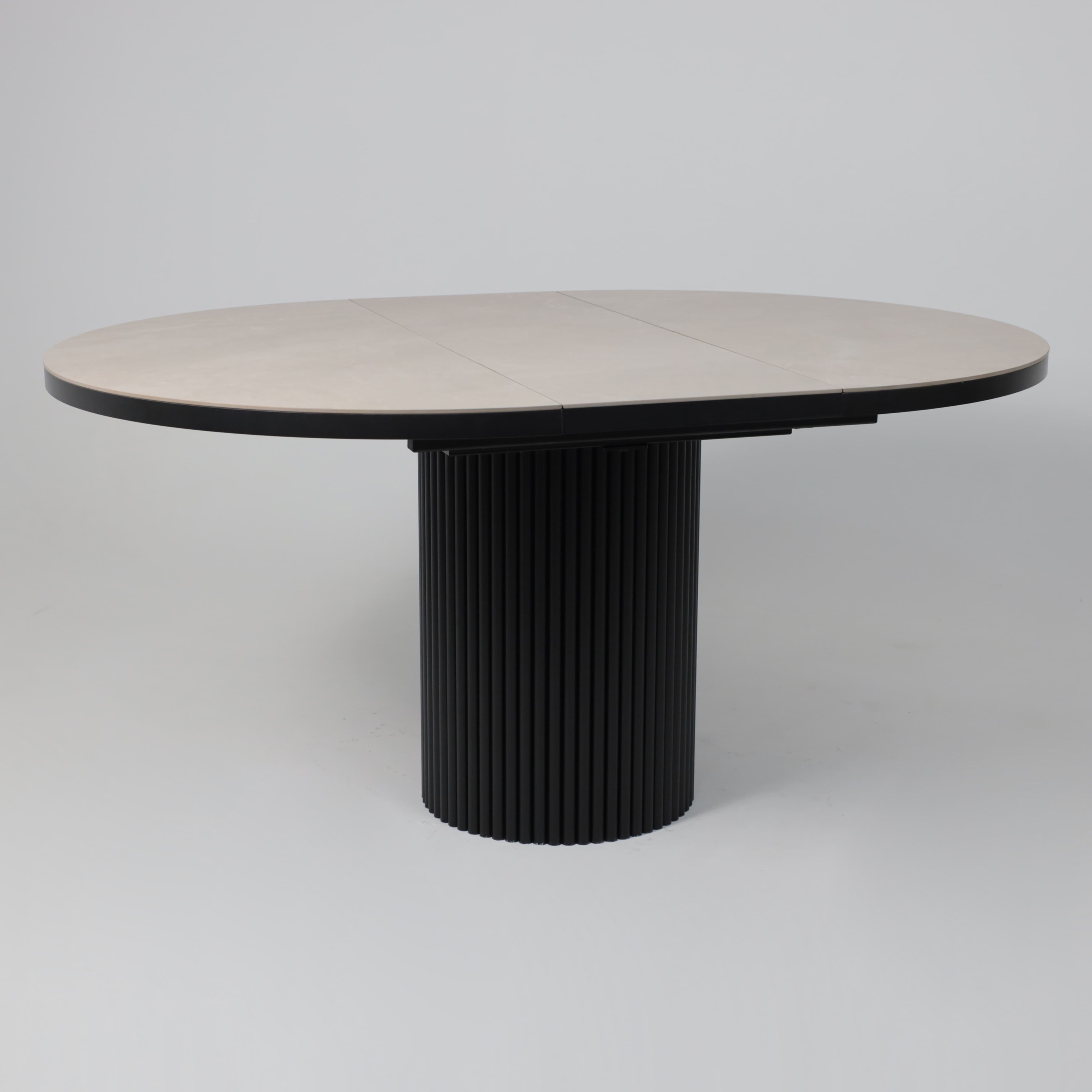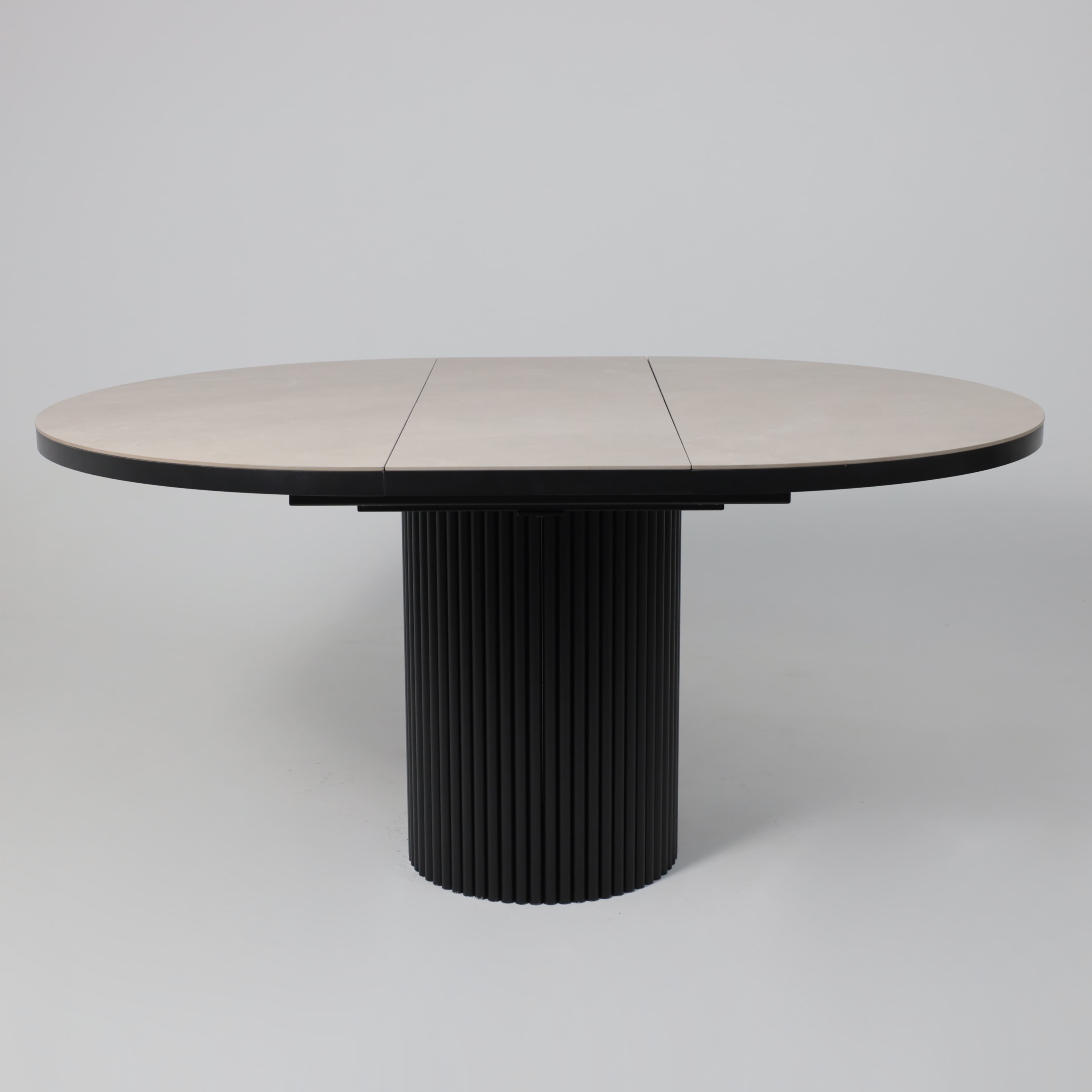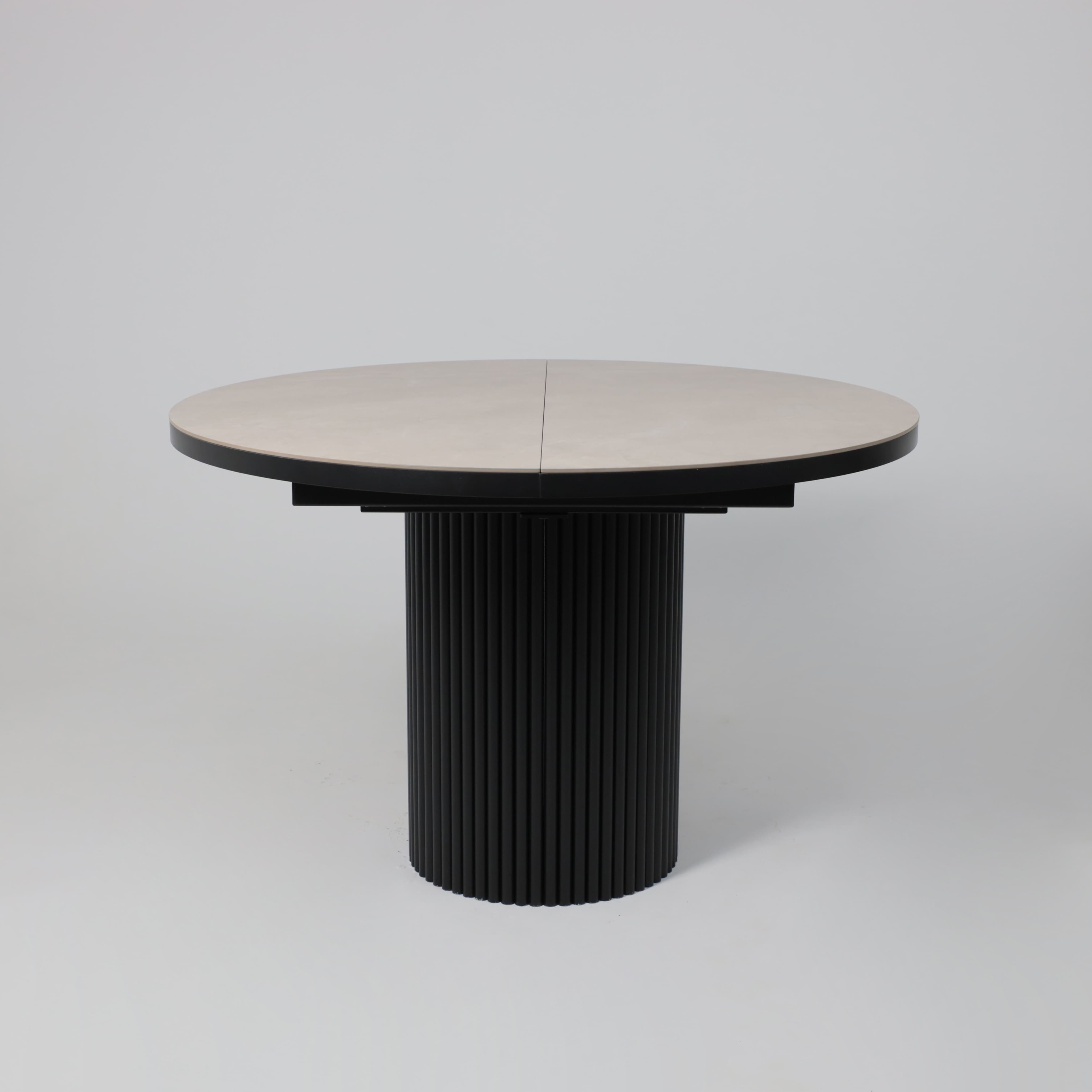 Стол ASKAR ROUND SLIDE-116, раздвижной круглый 116(156), BAYONA IVORY PREMIUM CER/Черный