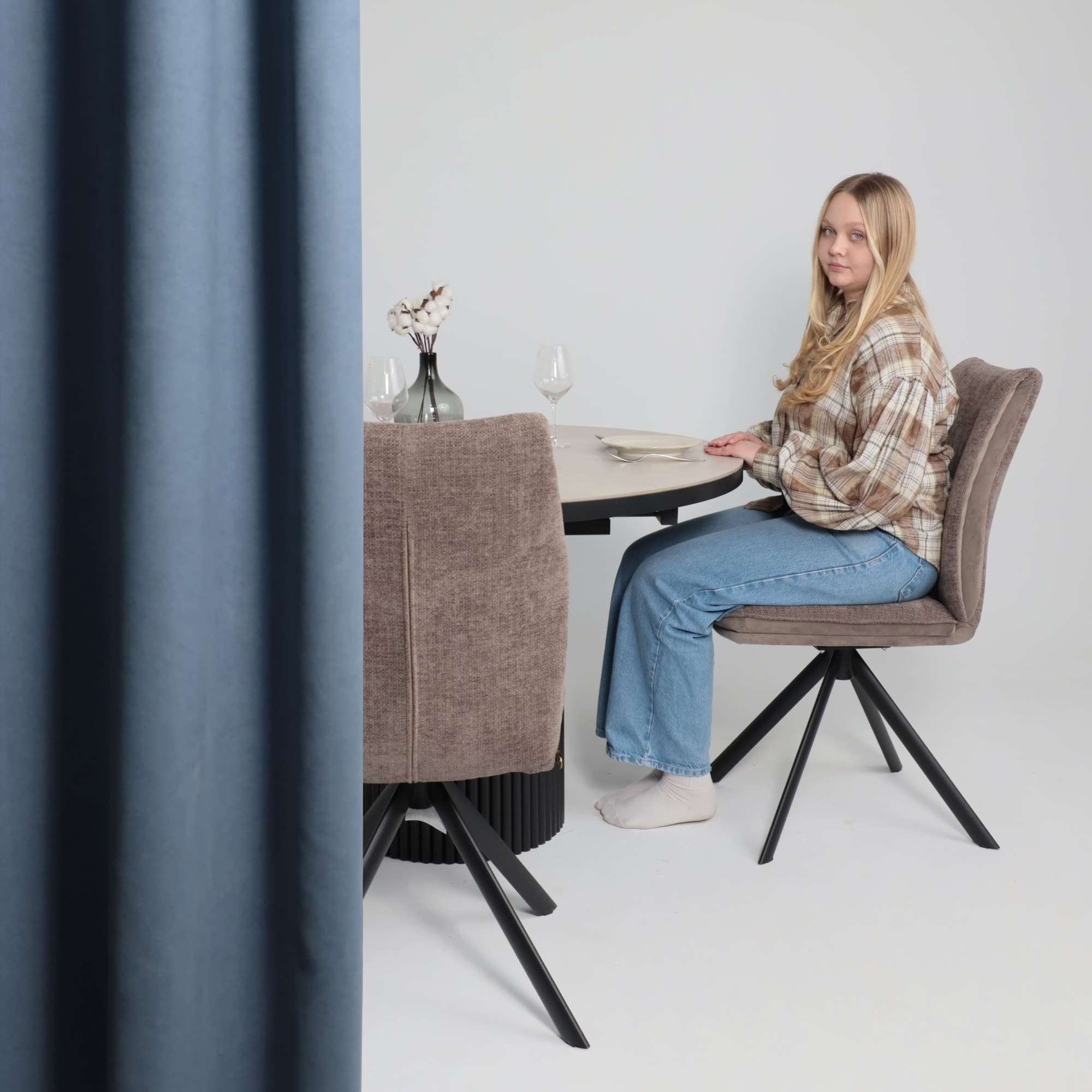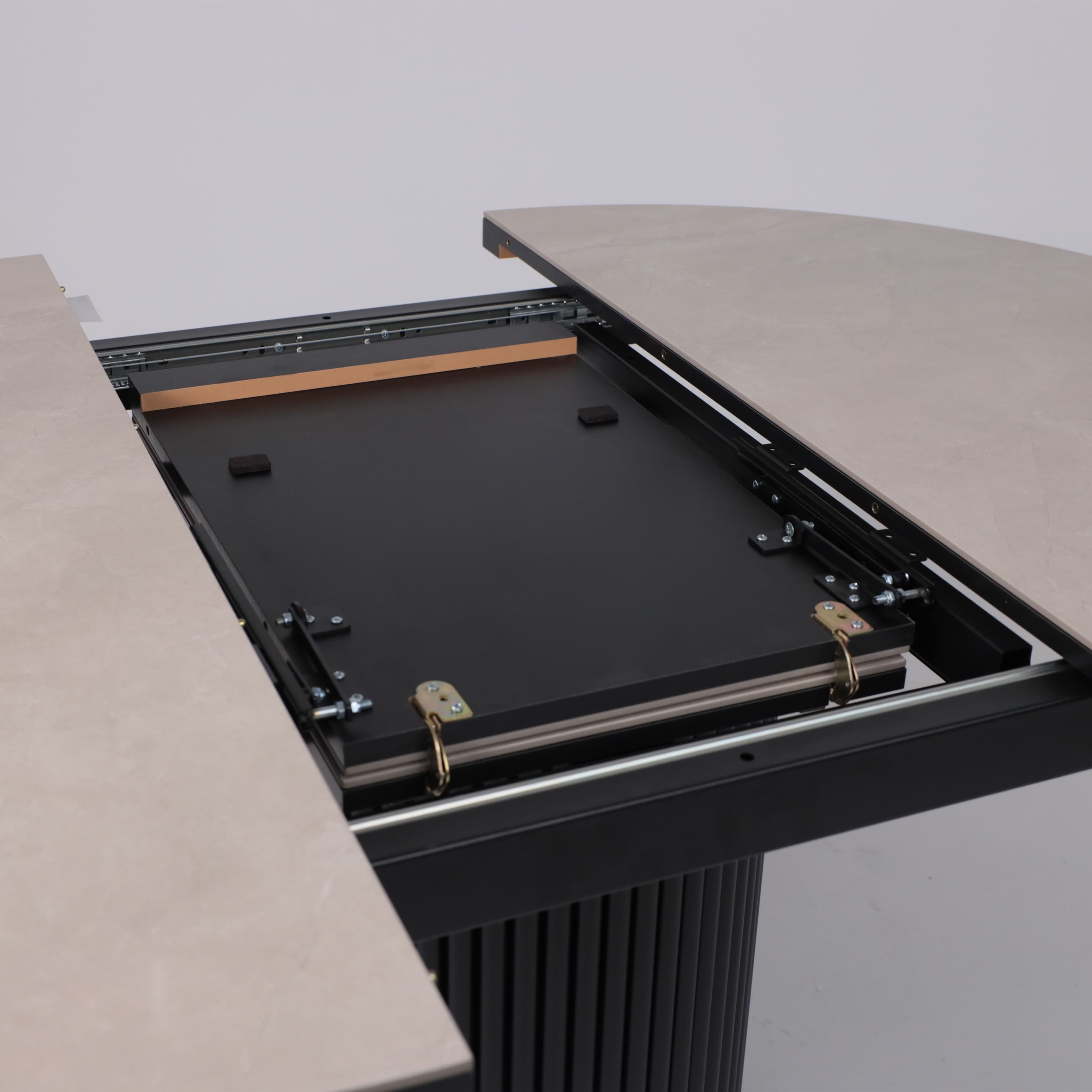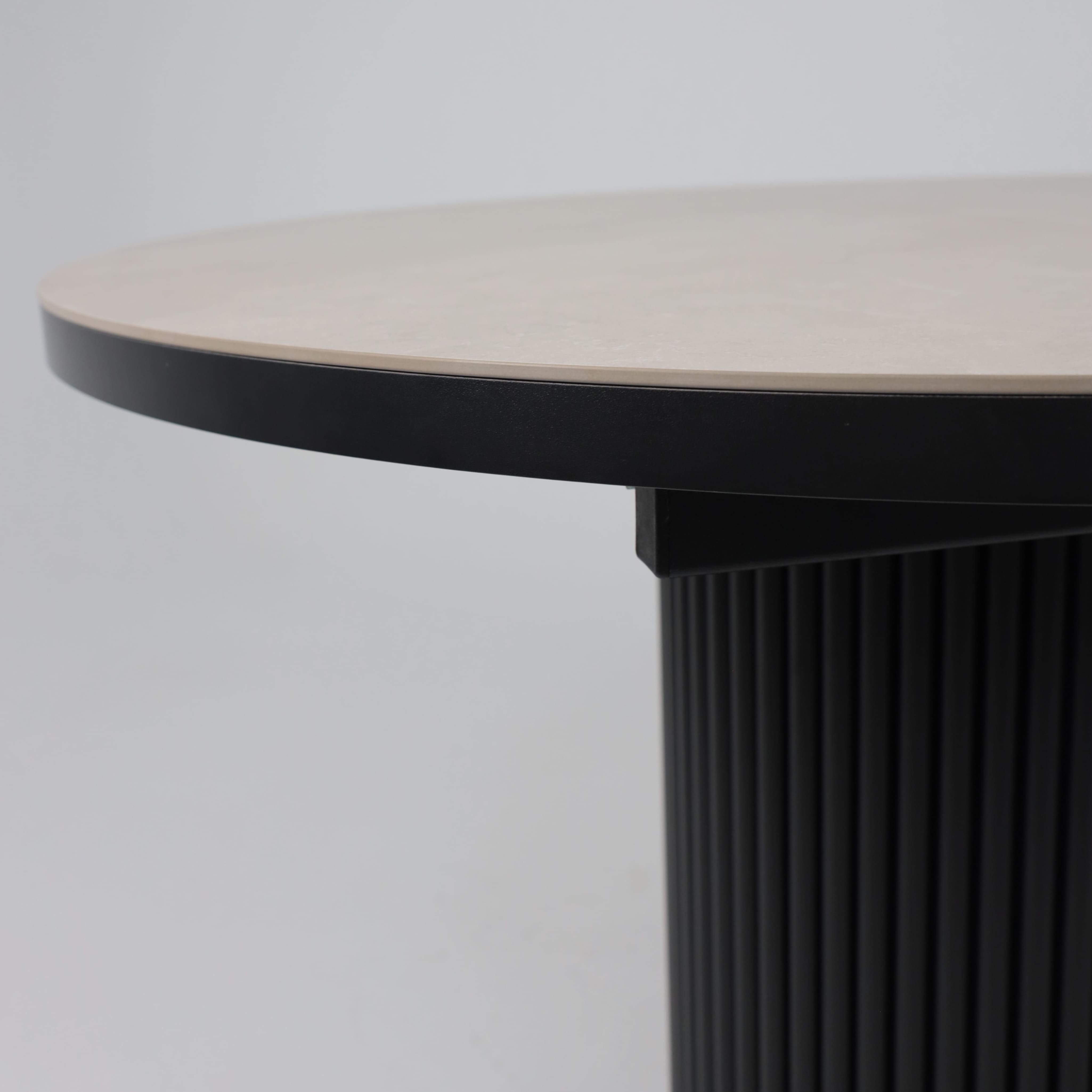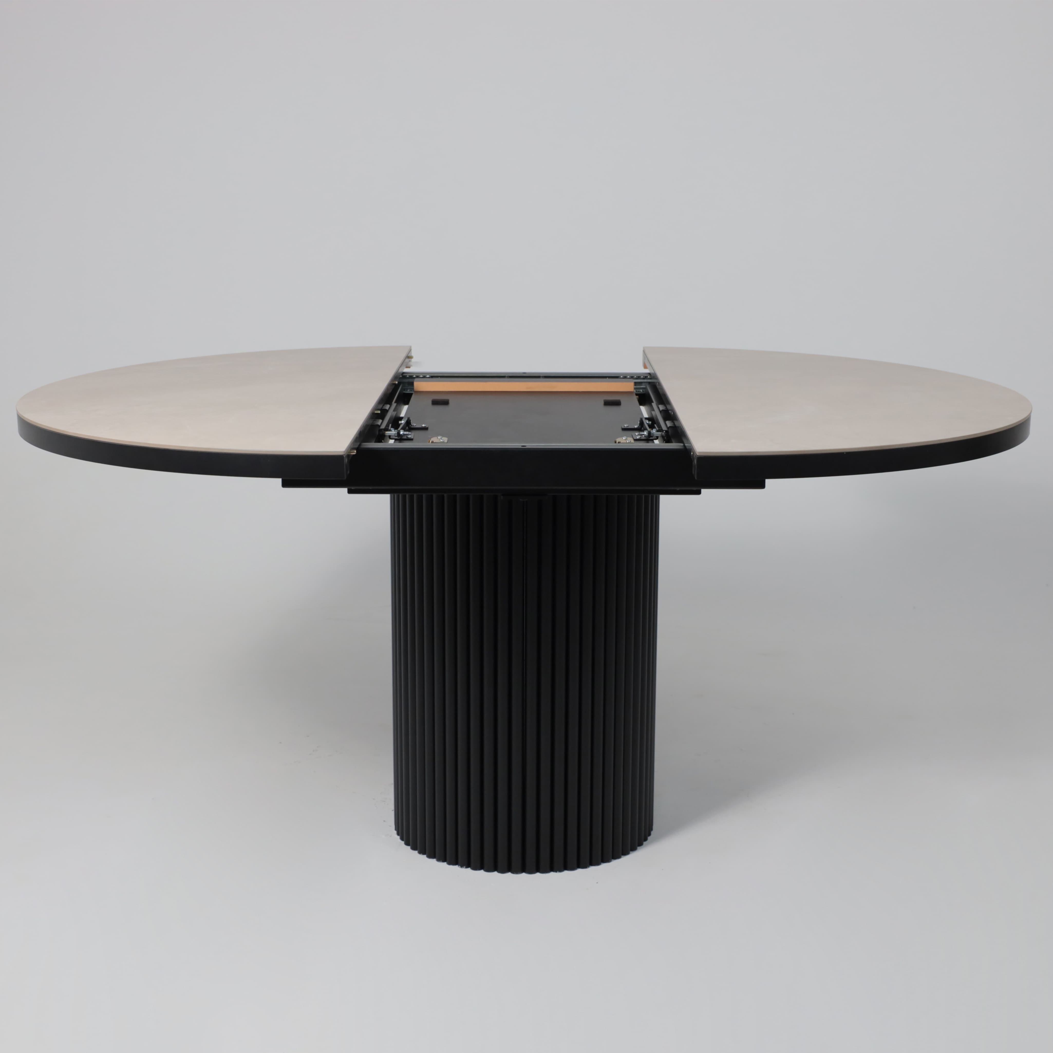 Стол ASKAR ROUND SLIDE-116, раздвижной круглый 116(156), BAYONA IVORY PREMIUM CER/Черный