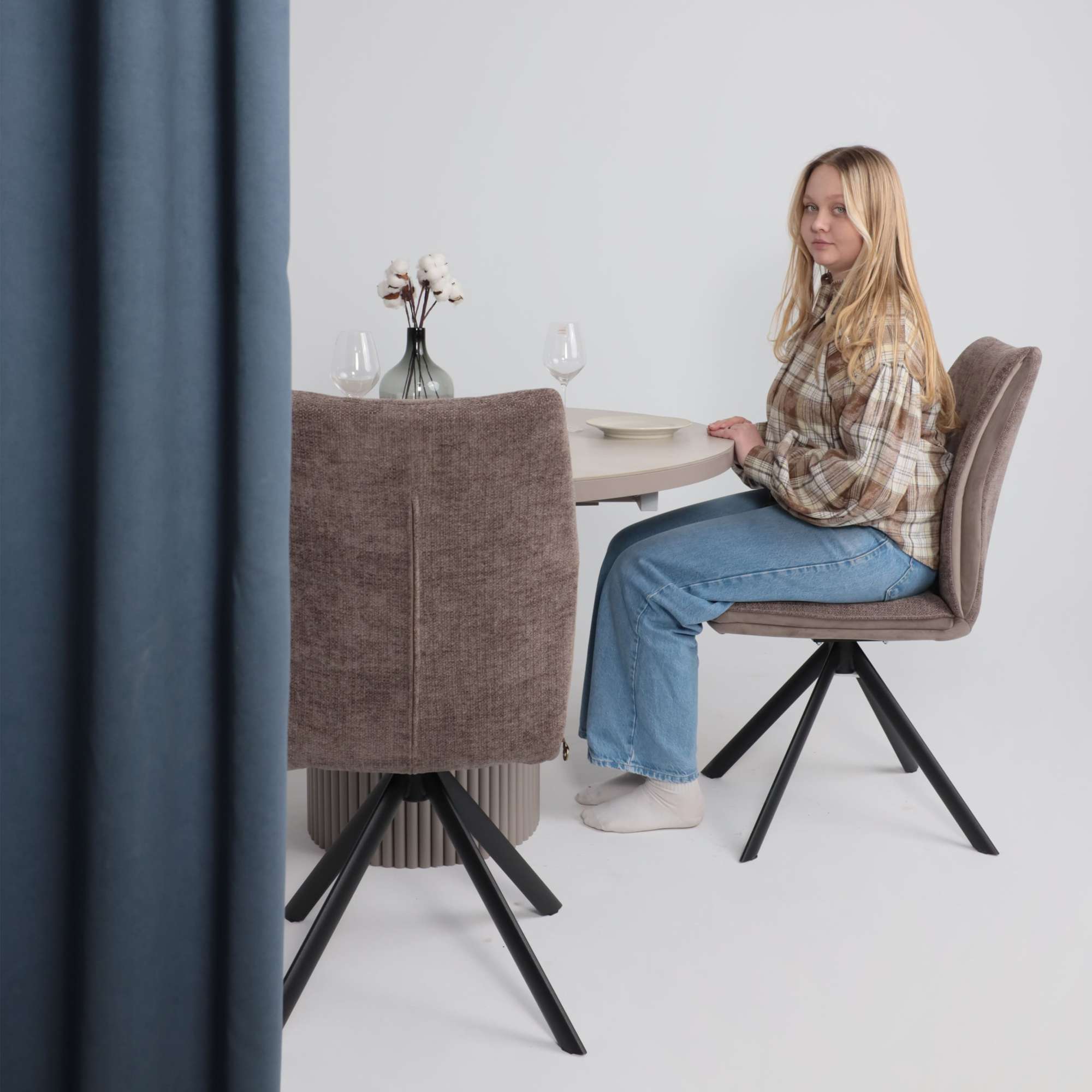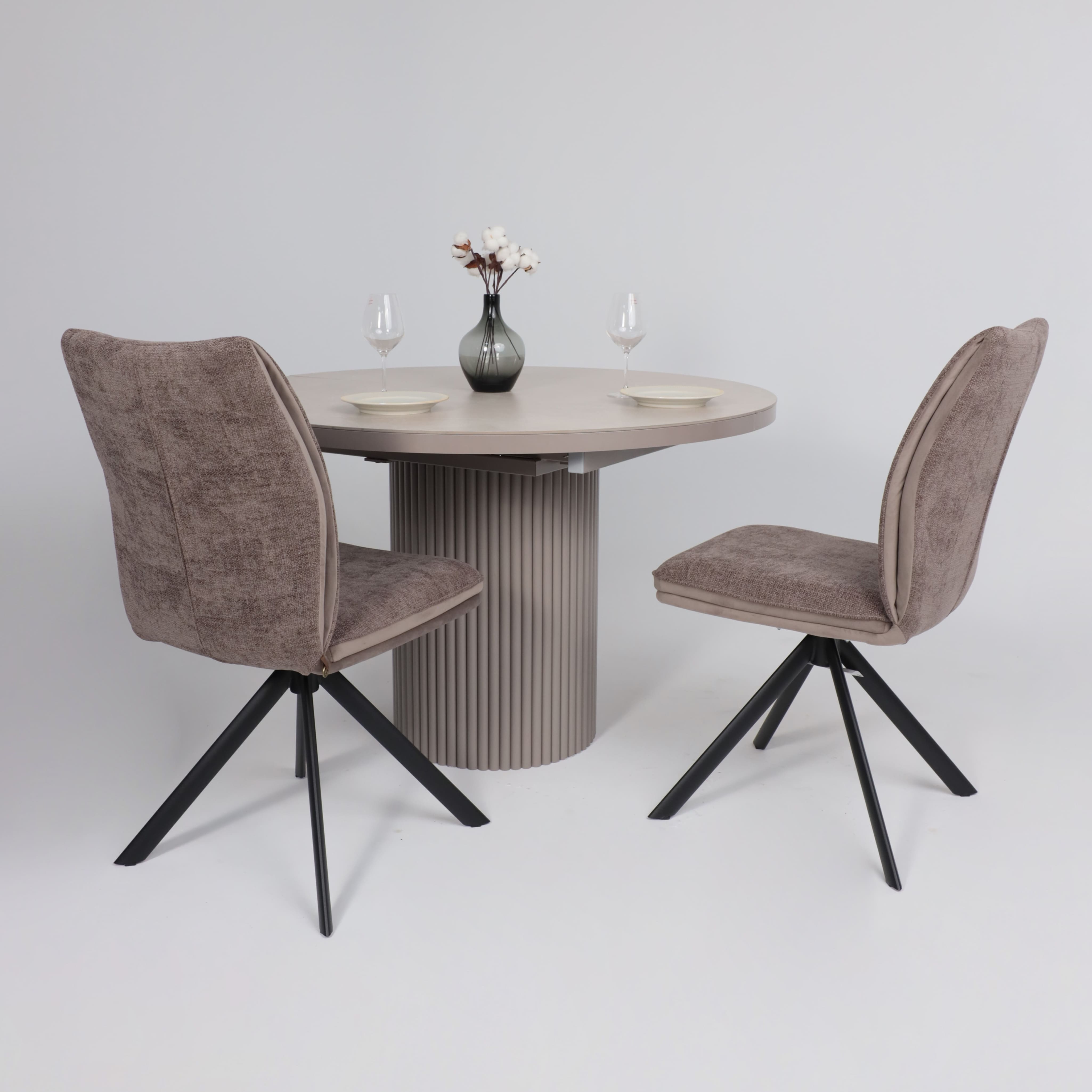 Стол ASKAR ROUND SLIDE-116, раздвижной круглый 116(156), BAYONA IVORY PREMIUM CER/Капучино