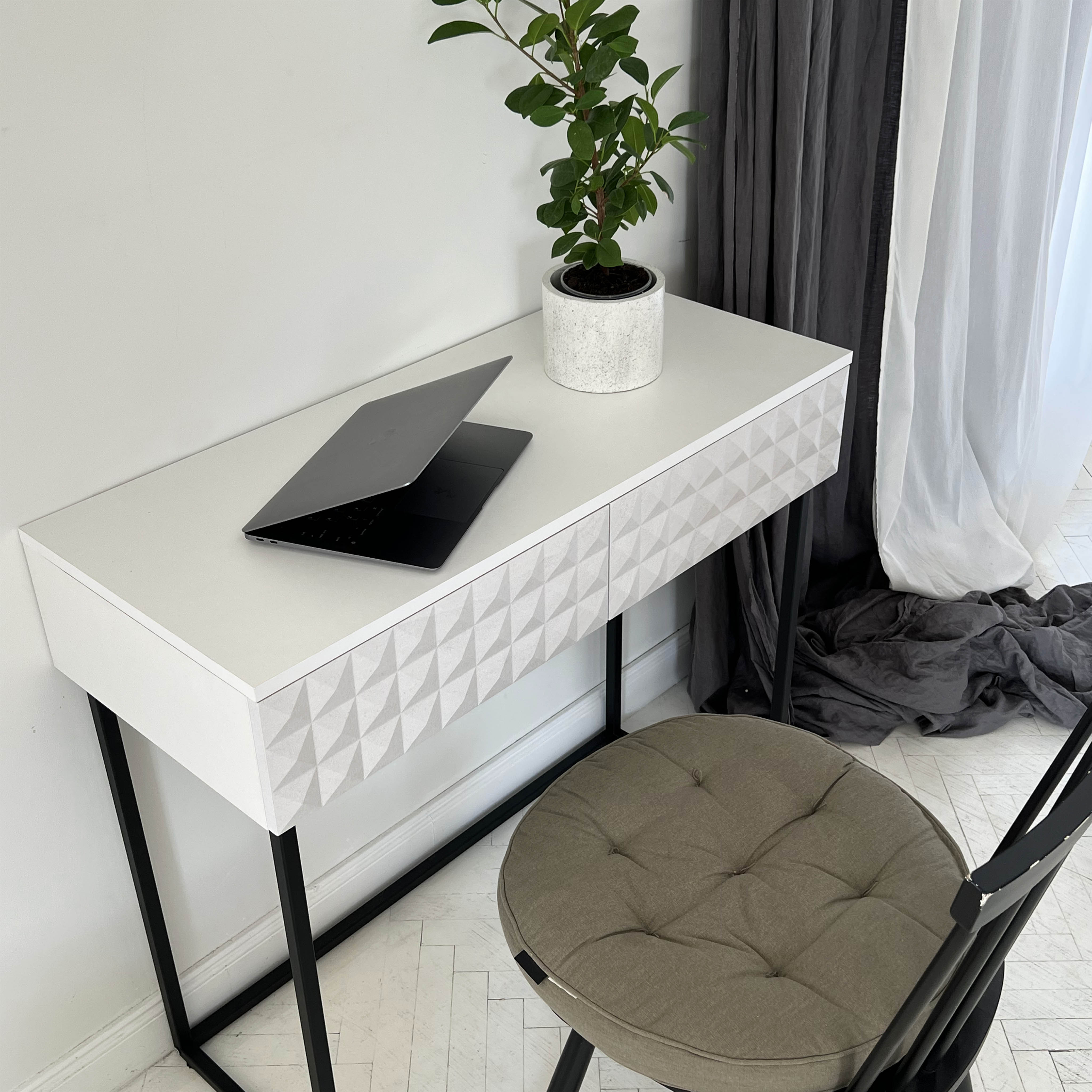 Стол-консоль SHTABE SIMPLE 7011 эко, Травертин-Белый-Черный