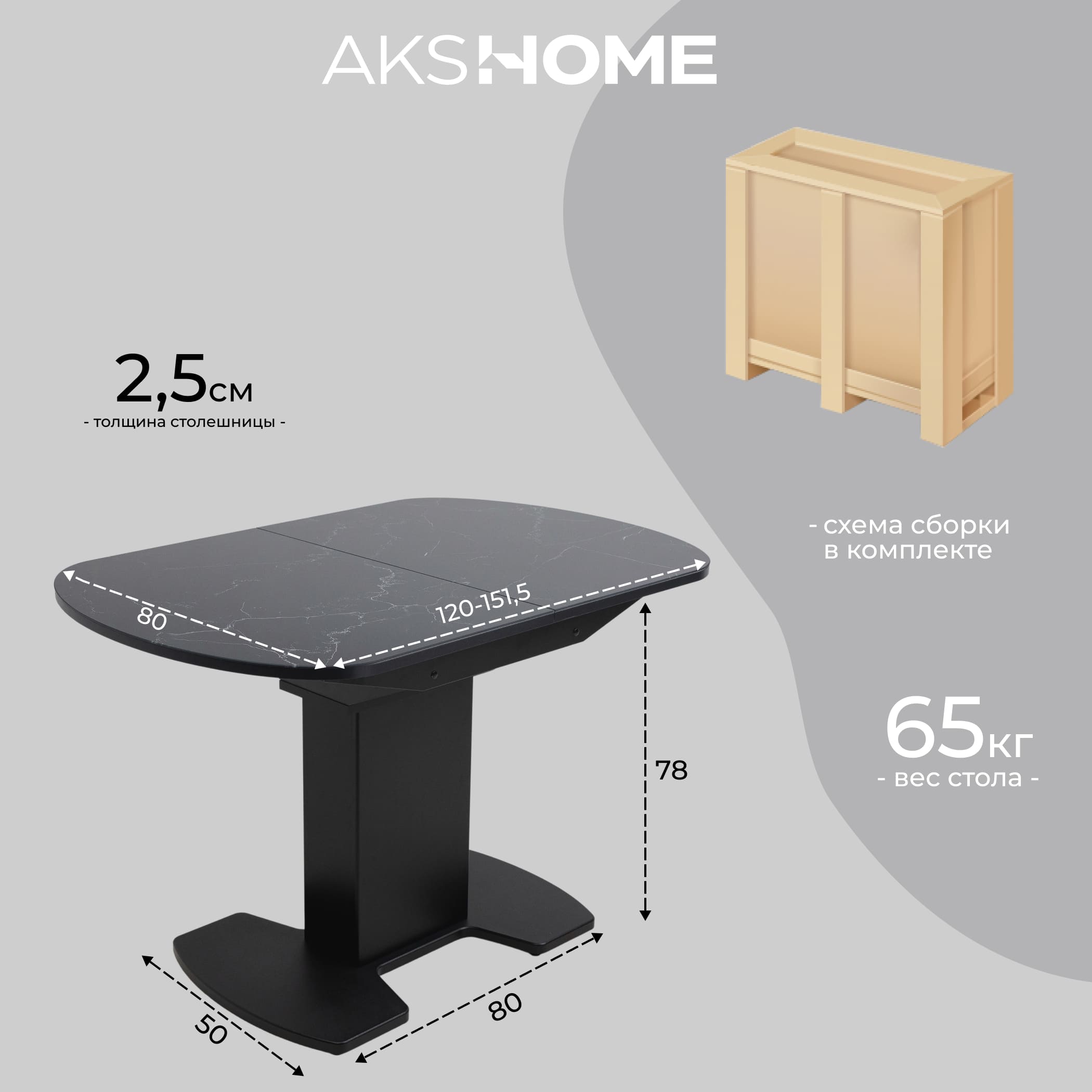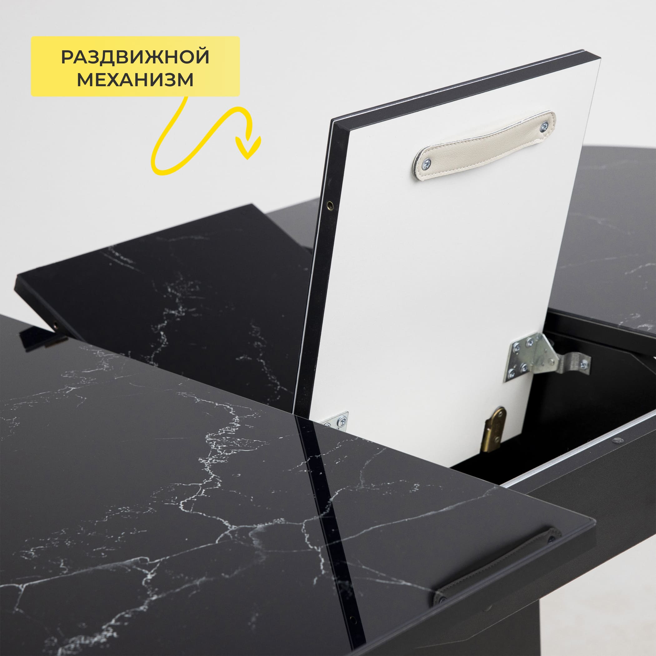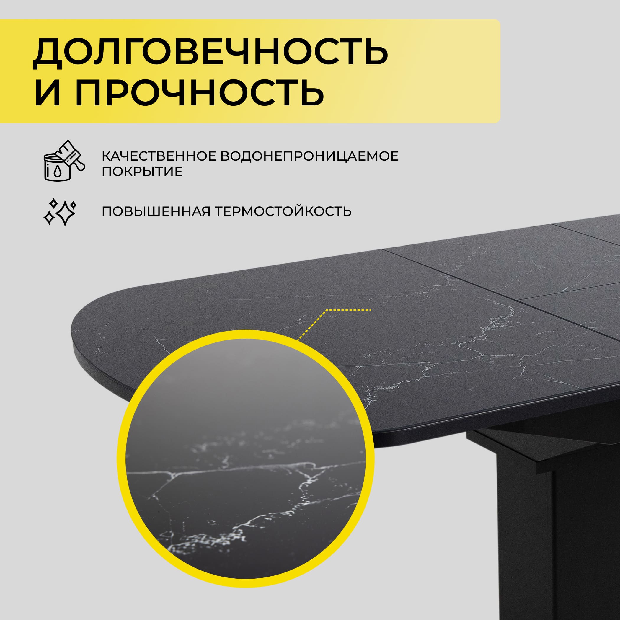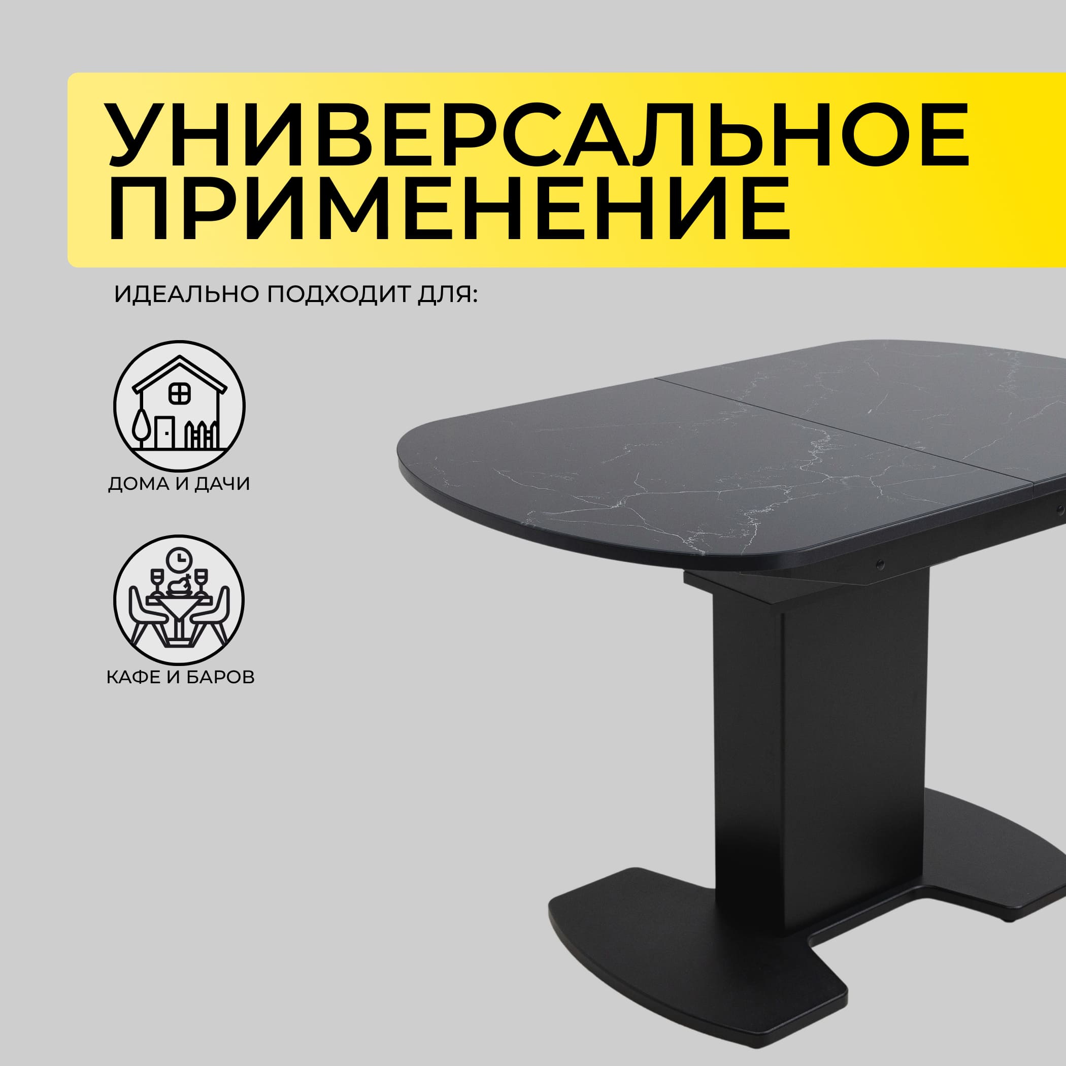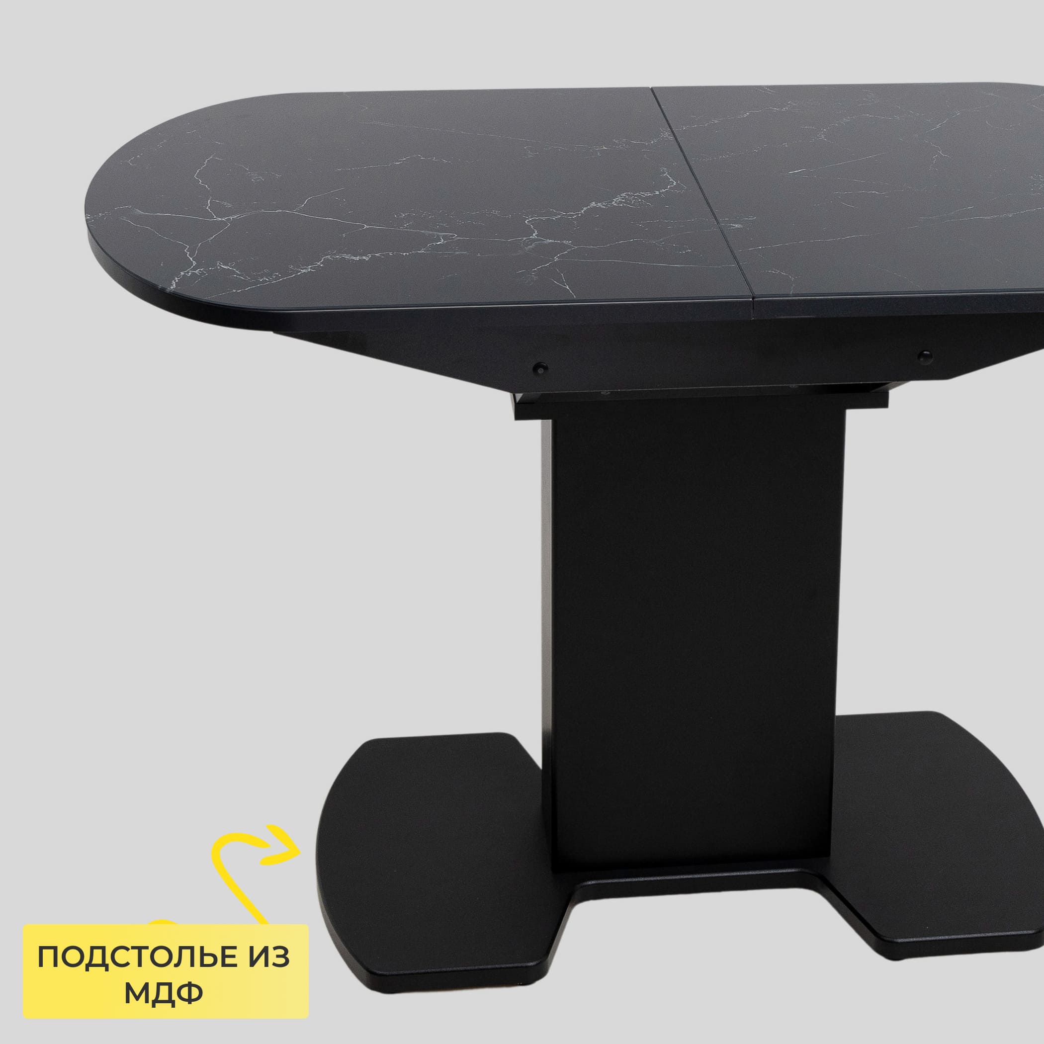 Стол КОРСИКА, фотопечать 1200(1515)*800, Мрамор черный 9/Черный матовый